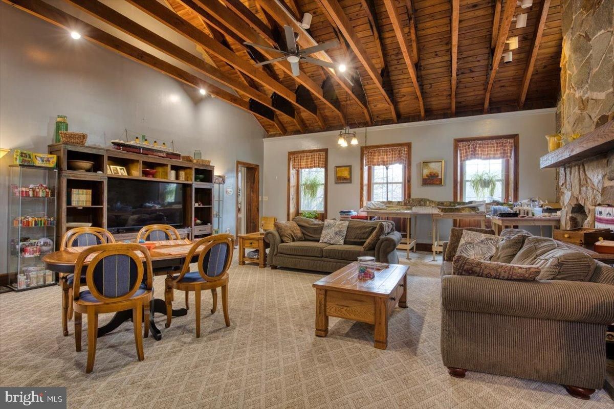 YOU CAN BE UNDER 55 to purchase this home. This is a home you need to see to appreciate. Old world charm and character that you just can't find in a new home. With a rich history dating back to 1840, this home seamlessly blends timeless elegance with modern comforts, creating a warm and inviting atmosphere that feels just like home. Step inside to discover a thoughtfully designed interior that boasts high-end features throughout. The heart of the home is the spacious kitchen, perfect for culinary enthusiasts, featuring an eat-in area that encourages casual dining and gatherings. The family room, AKA THE GREAT ROOM (estimate size 25 X 27) conveniently located off the kitchen, is adorned with exposed beams, adding character and charm to the space. This room has held many parties. With over 25 guests seated comfortably. Or imagine cozy evenings by the fireplace, where the flickering flames from one of the seven fireplaces create a serene ambiance. Retreat to the luxurious master suite, complete with a soaking tub in the bathroom, offering a perfect escape for relaxation. Each of the four bedrooms is generously sized, providing ample space for guests or hobbies. The home also features cedar closets, ensuring that your belongings are stored in style. The fully finished walkout basement adds an additional layer of versatility, perfect for entertaining or as a private retreat. There is also an old wine cellar if you chose to bring that back to life! Outside, the community amenities elevate your lifestyle to new heights. Enjoy leisurely afternoons by the community pool, or unwind in the hot tub after a workout in the fitness center. For those who enjoy staying active, the tennis courts offer a perfect venue for friendly matches. The indoor pool and sauna provide year-round relaxation and recreation options. With an expansive 0.36-acre lot and an asphalt driveway accommodating up to eight vehicles, this property offers both space and convenience. The driveway is shoveled and salted by the community. The association takes care of lawn maintenance, trash, and snow removal, allowing you to focus on enjoying your new home and the vibrant community around you. Experience the perfect blend of luxury, comfort, and community in this stunning residence at Riviera at Concord. Here, every day feels like a retreat, inviting you to embrace a lifestyle of ease and elegance.