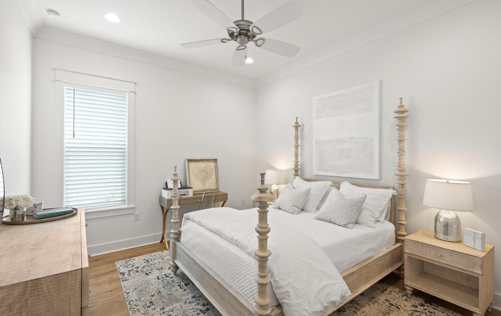 Located within the highly desired community of Watersound Origins and backed up to protected land, this beautiful expanded Bay Leaf floor plan offers 3 bedrooms, 3 full bathrooms, 2 2-car garage, and 2116 sq ft. This home features wood flooring throughout, 10' ceilings, crown molding, shiplap accent walls throughout, an open and bright living/dining layout with plenty of windows, a gourmet kitchen with beautiful quartz countertops and a stainless steel vent hood, a large screened-in back porch ideal for entertaining, and several other upgrades. The master bedroom offers privacy and luxury, featuring a walk-in closet and a spacious master bathroom. The master bath has gorgeous tiled floors, dual vanities, a walk-in shower with a rimless