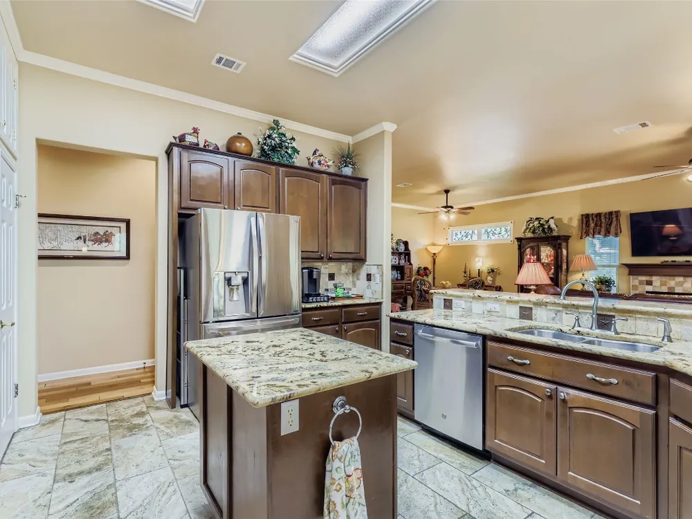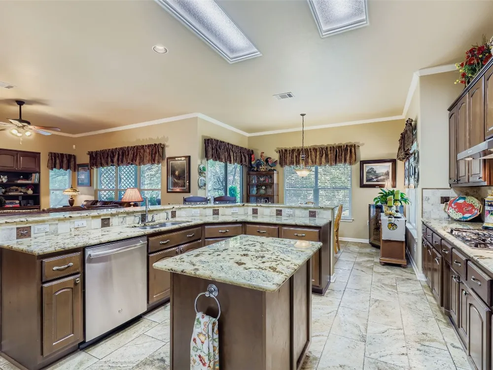 - Built-In Oven, Dishwasher, Exhaust Fan, Gas Cooktop, Disposal, Microwave, Water Softener Owned, Self Cleaning Oven, Stainless Steel Appliance(s)