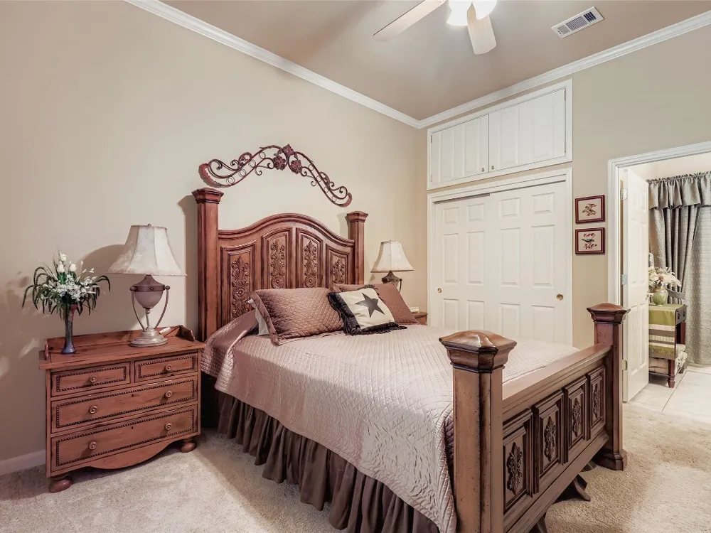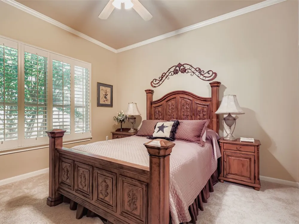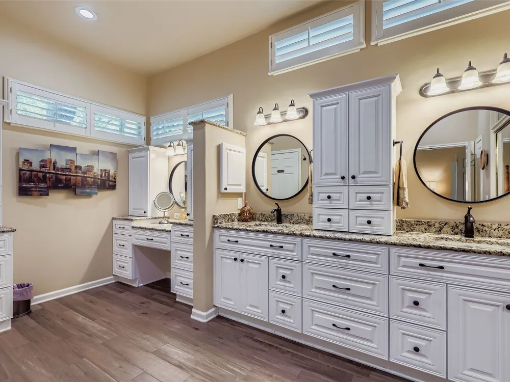 - Breakfast Bar, Built-in Features, Ceiling Fan(s), Double Vanity, Eat-in Kitchen, French Door(s)/Atrium Door(s), Granite Counters, High Ceilings, Multiple Living Areas, Main Level Primary, Multiple Primary Suites, Open Floorplan, Pantry, Storage, Walk-In Closet(s)