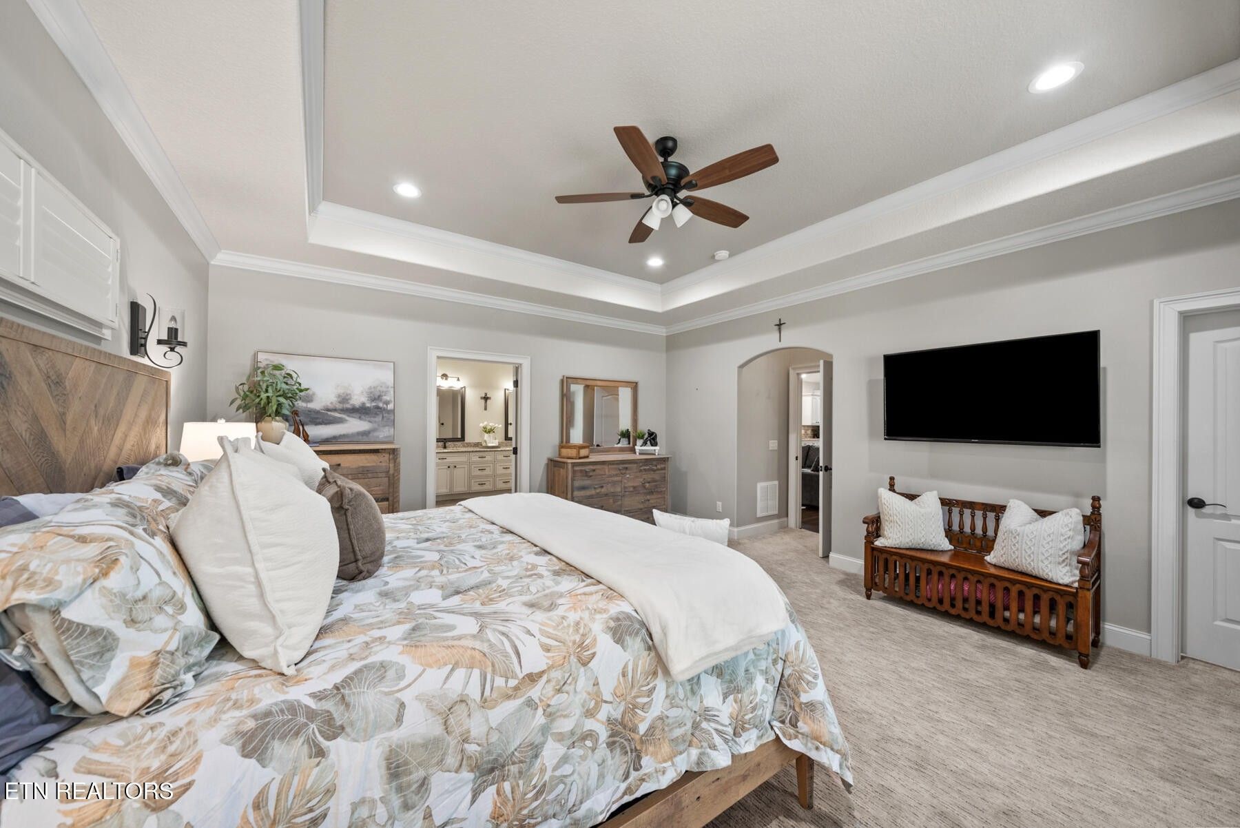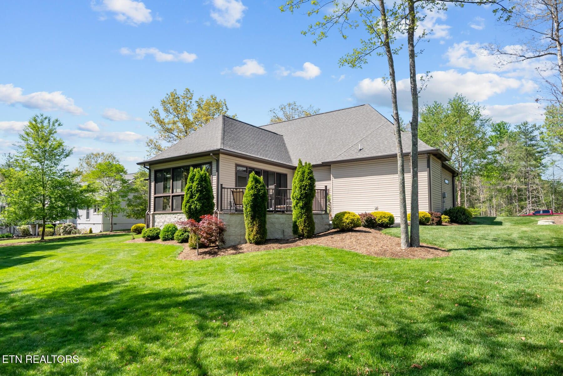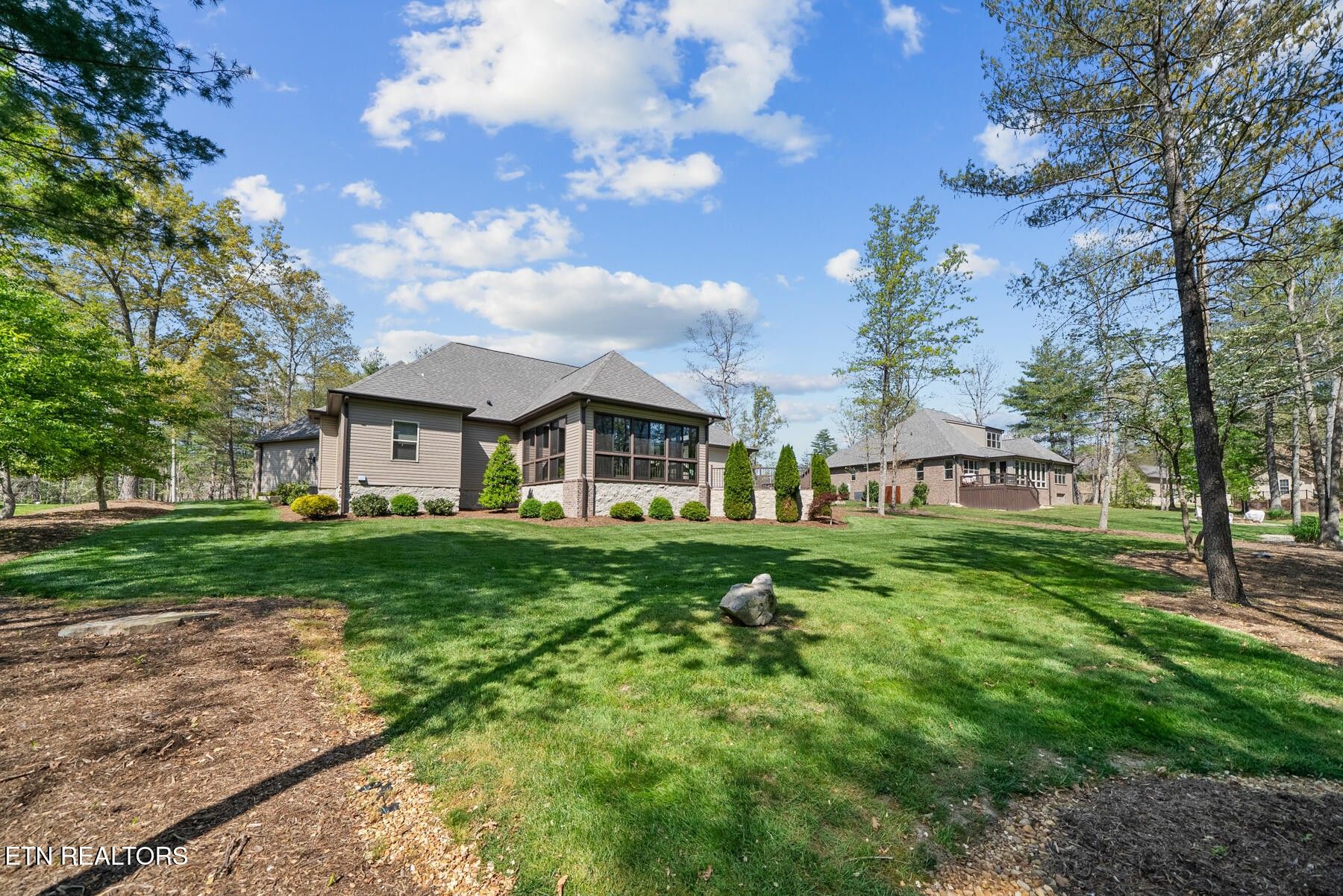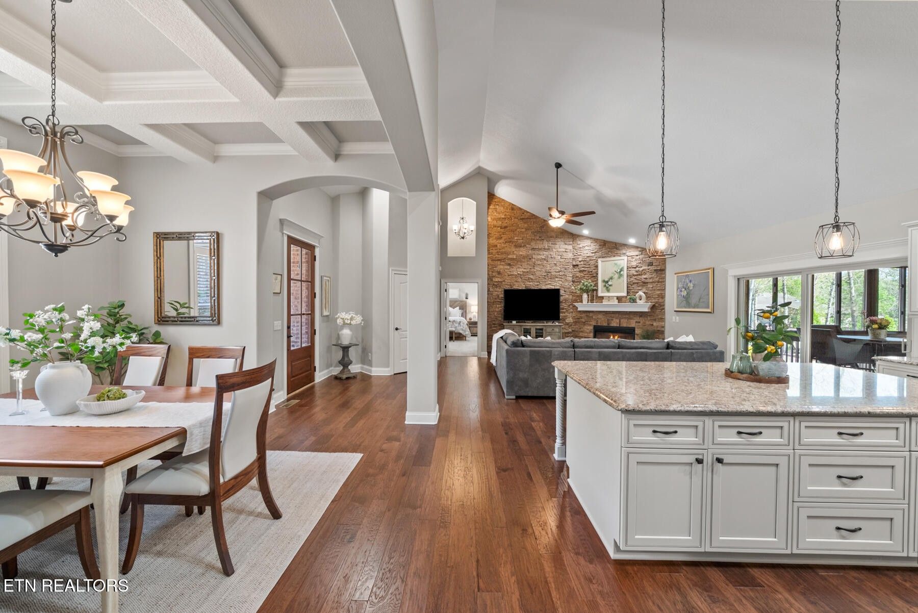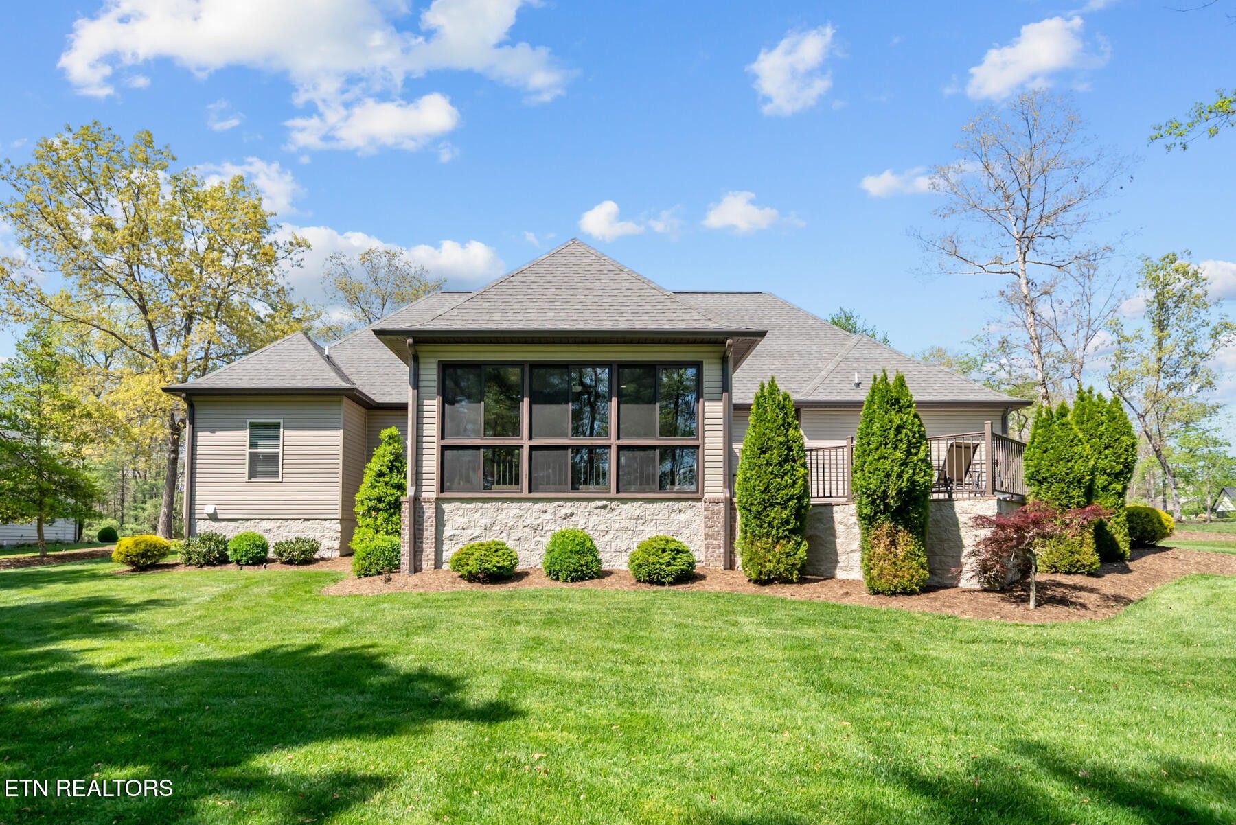 Welcome to this exceptional custom-built home located on the #4 tee of the Brae Golf Course in Fairfield Glade, nestled within one of the area's most prestigious neighborhoods. Built by one of the region's premier builders, this beautifully crafted 3-bedroom, 2-bath residence offers 2,275 square feet of thoughtfully designed living space on a spacious 0.68-acre lot. From the moment you enter, you'll appreciate the attention to detail and upscale finishes throughout. The formal dining area features stunning coffered ceilings, setting the tone for elegant entertaining. The open-concept living space is anchored by a striking stone fireplace with gas logs, creating a warm and inviting atmosphere. The kitchen is both functional and stylish, complete with ample cabinetry, granite countertops, and a large island perfect for gathering. The primary suite is a true retreat, highlighted by an oversized bathroom featuring a unique octagon walk-in shower, dual vanities, and generous storage. Additional bedrooms provide flexibility for guests, office space, or hobbies. Step outside to enjoy the serene back porch, designed for year-round relaxation with slider windows on both the top and bottom - perfect for taking in the peaceful surroundings and golf course views. This home is as practical as it is beautiful, with numerous upgrades and maintenance features: New HVAC system (electric heat & air), encapsulated crawlspace with humidifier and dehumidifier, 250-gallon buried propane tank servicing the fireplace, irrigation system in both front and back yards, gutter guards for low-maintenance living, service contract with Crossville Heating & Cooling, and termite contract with Lookout Pest Control. Complete with a 2-car garage and meticulously maintained grounds, this home offers the perfect blend of luxury, comfort, and peace of mind. Don't miss your opportunity to own a premier golf course property in Fairfield Glade - schedule your private showing today!