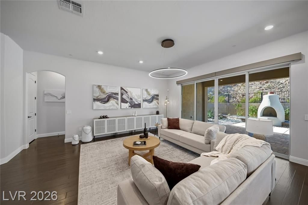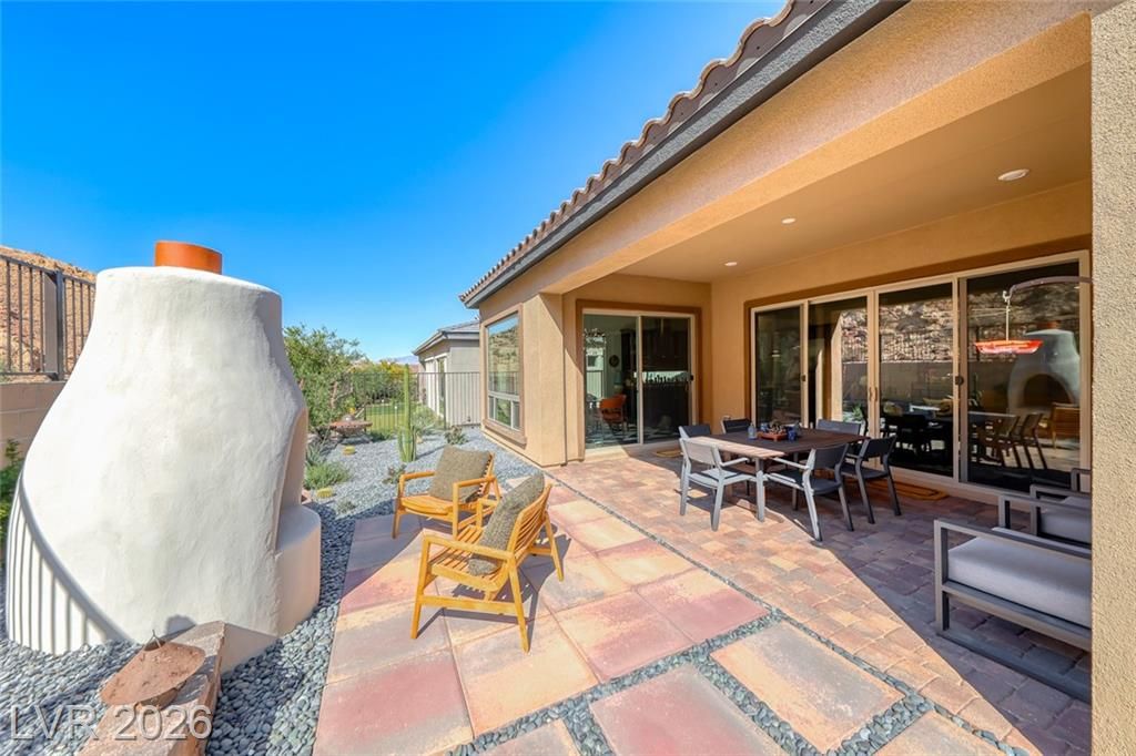 This breathtaking single-story home offers an unparalleled blend of elegance and tranquility. Step inside to discover beautifully upgraded engineered hardwood flooring that adds warmth and sophistication to the entire residence. The extended primary closet ensures ample storage for all your wardrobe essentials. Enjoy peace of mind and pristine water quality with the LifeSource whole house filtration system, a $8,000 upgrade that boosts both home value and comfort. Experience indoor-outdoor living at its finest with extended sliders in the great room, seamlessly connecting to the large covered patio.Outdoor leisure reaches new heights with the Kiva fireplace, ideal for cozy gatherings under the stars. What truly sets this property apart is its unique location against the magnificent mountainside, guaranteeing that you’ll never have neighbors behind you. The majesty of the mountains envelops you, creating a sense of pure serenity that must be experienced to be truly appreciated.