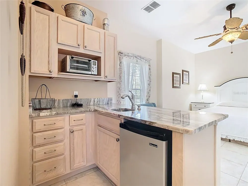 AMAZING, UPGRADED BOLERO model on a CONSERVATION lot in the Flora Vista subdivision of Solivita. ROOF new 2016. BOTH HVAC systems new 2019. Lanai extended, partially covered and screened 2015. Front COURTYARD screened 2011. CERAMIC TILE THROUGHOUT entire home. Kitchen features CAMBRIA QUARTZ Counters to include Island, 42" upper cabinets with CROWN MOLDING & GLASS doors, several lower cabinets have PULL OUT DRAWERS, newer appliances and RECESSED lights plus a SOLAR TUBE. REMODELED Primary Suite bathroom features upgraded cabinets, GRANITE counters, POCKET DOOR between the bedroom & bathroom, DUAL sinks, extra large WALK-IN shower with SEAMLESS GLASS and two walk in closets. 2nd bathroom has GRANITE counters, a tub with shower and closet with a POCKET DOOR. CASITA has FRENCH DOORS with built-in blinds new in 2021, QUARTZITE counter in the DINETTE area, GRANITE counter in the bathroom plus a tub with a shower and a full closet. Garage floor is painted with EPOXY. Exterior flower beds have LANDSCAPE CURBING 360 degrees around the house. Community Development District (CDD) DEBT is paid-off. **See the FULL LENGTH VIDEO on Tour Link 1.** ***Solivita is an active adult 55+ community located in Kissimmee, Florida. It is approximately 50 minutes from Disney World & the Orlando International Airport. Solivita has a total of 5,470 homes. Approximately 10,000 - 11,000 people live in Solivita during the winter while approximately 7,500 live in Solivita during the summer. Enjoy your active years in this piece of paradise. Solivita's amenities include: - a manicured SOFTBALL diamond & field - 36 holes of CHAMPIONSHIP GOLF that can be played by joining the Stonegate Golf Club or paying as you go - 2 STATE of the Art AMENITY centers with updated exercise equipment, yoga studio & meeting rooms - 3 restaurants - 14 HEATED POOLS - 17 PICKLEBALL courts - 9 TENNIS courts - 4 BOCCE BALL courts - 4 SHUFFLEBOARD courts - 3 HORSESHOE pits - a BILLIARDS room - miles of bike paths - 2 DOG PARKS (Small & Large Dogs) - Corn Hole - Tot Lot PLAYGROUND - COMMUNITY GARDEN - over 250 resident clubs. The HOA: - maintains the LANDSCAPING & IRRIGATION systems in the common areas as well as at individual homesites - maintains the roads throughout the community - PROVIDES SECURITY with gate guards and mobile patrols including the Polk County Sheriff - allows AUTOMATED GATE ACCESS for residents via license plate readers - provides residents with Fiber Optic Internet & TV service.***Poinciana Lakes Plaza is a MAJOR NEW SHOPPING CENTER that opened directly across from the Solivita Main Gate in Summer of 2024. It features Sprouts Grocery, TJ MAXX, Ross, Burlington, Rack Room Shoes, 5 Below, Ulta, Outback, First Watch, 5 Guys, Urgent Care, Dentist, TD Bank, Petco & Hair Cuttery PLUS MORE TO COME.***
