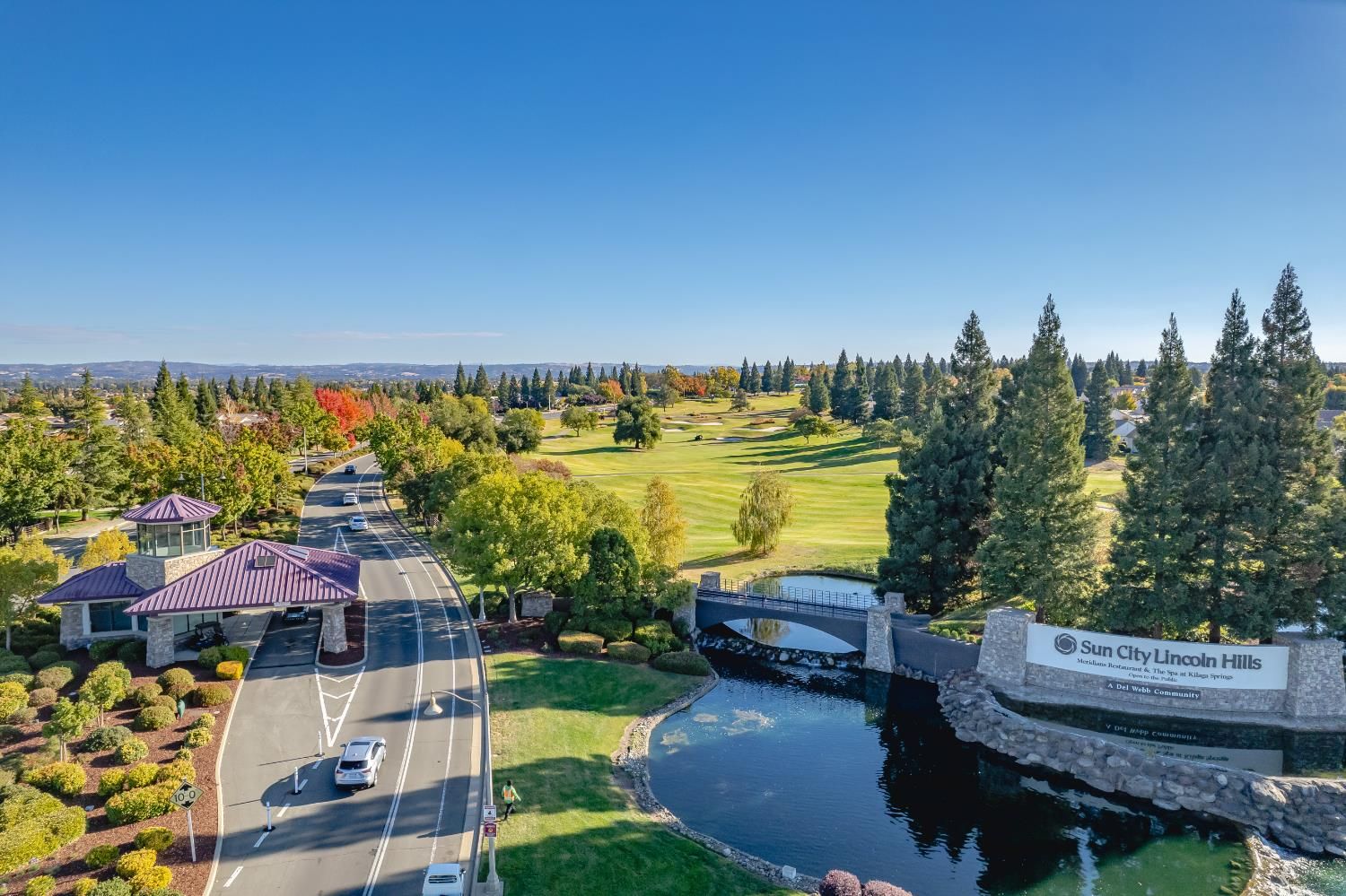 Welcome to this charming Millpond floorplan in the highly sought-after 55+ community of Sun City Lincoln Hills. Situated on a corner lot, this home offers an inviting open-concept great room filled with abundant natural light. Laminate flooring throughout the main living areas create a fresh, move-in-ready feel. Thoughtfully designed, the home feels larger than its square footage, featuring 2 spacious bedrooms and 2 full bathrooms. Step outside to a covered patio, perfect for relaxing while taking in the mature landscaping. The 2.5-car garage offers plenty of room a workshop or golf cart storage. Located just steps from a nearby neighborhood park, this home also grants access to an array of resort-style amenities, including pools and spa, tennis courts, a fitness center, and a vibrant calendar of activities. No Kitec plumbing. Experience the lifestylewelcome home to Sun City Lincoln Hills!