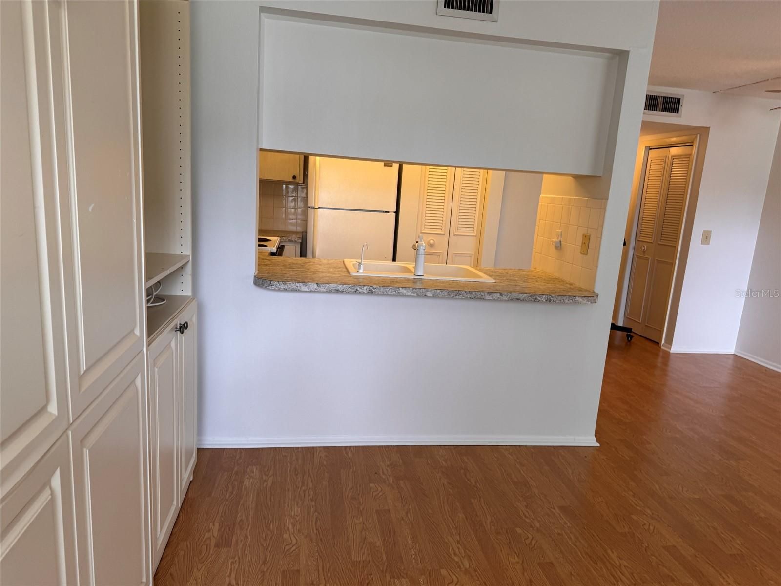 Charming Florida Condo in Active Community | Tennis, Shuffleboard & More! Welcome to this bright and well-maintained condo nestled within a beautifully landscaped, amenity-rich community in the heart of Florida. Featuring warm laminate wood flooring throughout, this spacious unit offers an open and airy feel with plenty of natural light streaming through large windows dressed with classic vertical blinds. The open-concept living area flows seamlessly into a pass-through kitchen, complete with ample cabinetry, laminate countertops, a double basin sink, electric range, and full-size refrigerator — everything you need in a functional and comfortable space. A built-in Murphy bed with flanking shelving and cabinetry in the main living area adds incredible versatility, perfect for hosting guests or maximizing your square footage. The generously sized bedroom features a large closet and pendant lighting, while the full bathroom offers a tub/shower combo with sliding glass doors, updated vanity with granite-style countertop, tile flooring, and accessibility grab bars for added peace of mind. Additional highlights include a Honeywell thermostat, central air and heat, and a brand new electrical panel with dedicated circuits for range, A/C, heat, and water heater. RESORT-STYLE LIVING IN AN UNBEATABLE LOCATION: Step outside and enjoy resort-style living with access to a sparkling heated pool just across the parking lot, tennis courts, shuffleboard courts with covered seating, pickleball on weekends, and a fitness center — all set within lush, manicured grounds framed by a classic white balustrade wall and tropical landscaping. The clubhouse offers a library (which was actually started by the previous owner of this unit), billiards, card room and hosts a vibrant calendar of social events. With the clubhouse's kitchen you may schedule events such as weddings or other gatherings. The HOA fee ($327.96/month) covers cable, internet, water, sewer, trash, exterior maintenance and grounds, making for truly effortless Florida living. And the location couldn't be better — walk to the Winn-Dixie shopping center, with a public golf course next door and a hospital and shopping right across the street. You're in the heart of Tarpon Springs, just minutes from beautiful beaches, restaurants, the famous Sponge Docks, the Pinellas Trail, public transportation and the Jolly Trolley stops. Whether you're seeking a seasonal retreat, a year-round residence, or a savvy investment property, this move-in ready condo checks every box — don't miss your chance to own a slice of the Florida lifestyle!