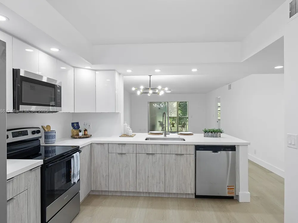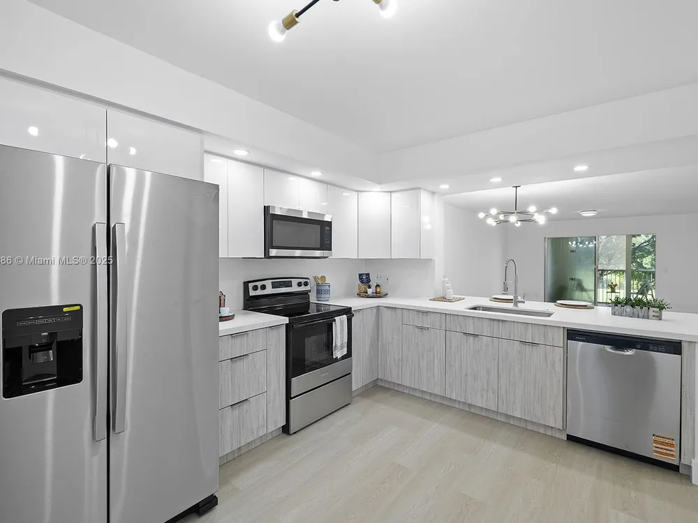 Welcome to this beautifully updated 2/2 unit w/a serene golf view that greets you as you enter the front door. oasts a contemporary kitchen with sleek, ceiling-high cabinets, quartz countertops, and brand-new appliances. Enjoy the beauty of brand-new vinyl flooring, freshly painted interiors, and elegant, bathrooms. Breathtaking views. Enjoy the convenience of an in-unit washer and dryer. The HOA is $512/month plus CVP $266/month, and includes water, cable, internet, and access to endless amenities, including a million-dollar clubhouse. Located in Buckingham East I at Century Village, one of Pembroke Pines most desirable 55+active adult communities—minutes from The Shops at Pembroke Gardens and major highways. Parking #31N