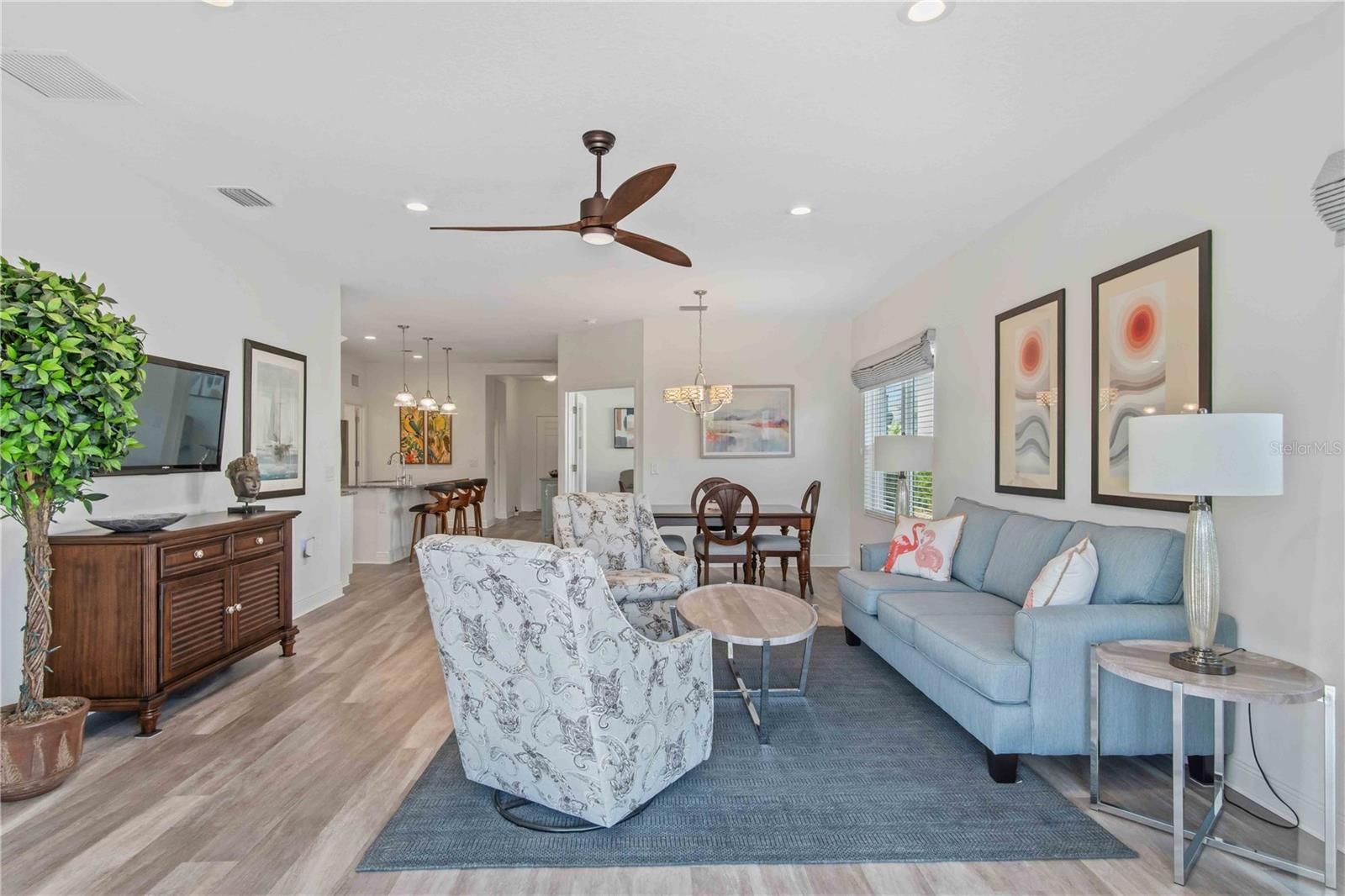 Welcome to your piece of paradise in the highly sought after gated community of Grand Palm. This BETTER THAN NEW home has countless upgrades not included on other units including high end ceiling fans, upscale window treatments, upgraded pendant lighting, a retractable screen entry door, epoxy flooring in the garage, work bench, garage storage shelving, and a retractable lanai awning. Owner-occupied, meticulously maintained, and well cared for! From the moment you walk in you will be greeted by the open layout and privacy thanks to no neighbors behind you! The dining and living room are spacious and the kitchen features a GAS range, granite countertops, solid wood cabinets, a water-filtration system, and stainless-steel appliances. There is an oversized laundry room just off the kitchen and more than enough storage throughout the home. The master suite has two walk-in closets, an en-suite bath with his & her sinks, and a large walk-in shower. The second and third bedrooms are also well-sized and there is even office that could be utilized as a 4th bedroom! You will likely spend much of your time spent relaxing in your oversized pavered lanai or enjoying the countless HOA communities such as the community pool or clubhouse just around the corner! Located just minutes from Wellen Park, the Atlanta Braves Stadium, Downtown Wellen, Gulf beaches, shopping, and fine dining….this area offers everything you could ever want! Ask your agent for the fully interactive 3D tour and prepare to fall in love.