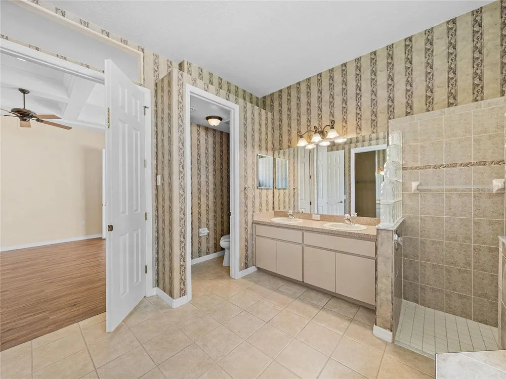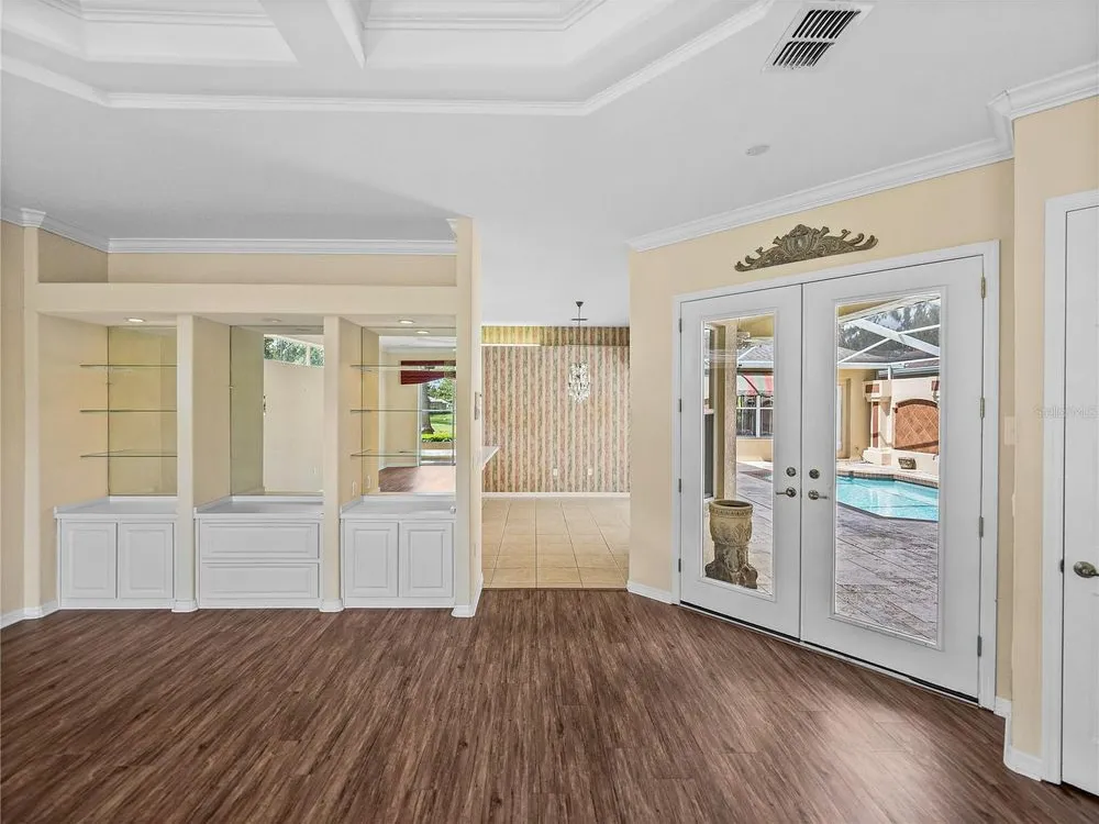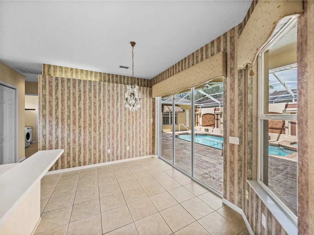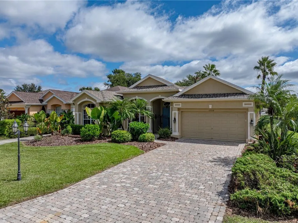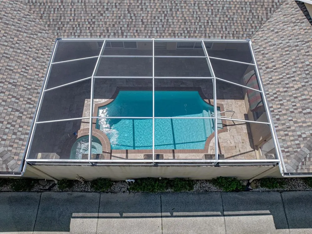 Tropical beauty and resort-style living come together in this Lake Jovita cabana home, with a new Roof, AC, and water heater, all perfectly set on a 1/4-acre lot with sweeping golf and pond views. Known and loved for its unique layout, this residence wraps around a sparkling heated pool and spa, creating a private courtyard retreat you’ll never want to leave. Arrive to lush landscaping, a paver driveway, and a gated front entryway that sets the tone for the serene oasis beyond. Through double doors, the travertine-tiled courtyard opens to both the 2 bedroom, 2 bath main home and the 1 bedroom, 1 bath guest cabana, offering an ideal setup for visitors, multigenerational living, or a private home office. Inside the main home, thoughtful design details include coffered ceilings, crown molding, built-in shelving, a split-bedroom layout, and quadruple sliding doors that seamlessly extend the living space to the screened porch and present stunning views of Lake Jovita’s 13th South Tee Box. Prepare your everyday meals with ease- this eat-in kitchen is nicely equipped and has plenty of dining space! It features Corian countertops, breakfast bar seating, an eat-in dinette with pool views, stainless steel appliances, and an oversized walk-in pantry. The primary suite is privately tucked away, offering direct pool access, a generous walk-in closet, and a spacious ensuite with dual sinks, a soaking tub, walk-in shower, and water closet. The guest bedroom is across the home positioned near the second full bath with pool access and the laundry room. Outdoors, the screened porch and travertine grilling patio provide plenty of space to relax and entertain while enjoying beautiful Florida sunsets and uninterrupted golf course and pond views. A tranquil paradise set within the gates of the desirable gated Lake Jovita community offering high speed Blue Stream internet, a playground, pickleball court, basketball court, dog park, and walking trails. Optional amenity packages are available at the Lake Jovita Golf and Country Club including access to two 18-hole champion golf courses, a restaurant, swimming pool, tennis courts, and more! Don’t miss the chance to experience cabana living in one of Tampa Bay’s premier golf course communities, schedule your private showing today!