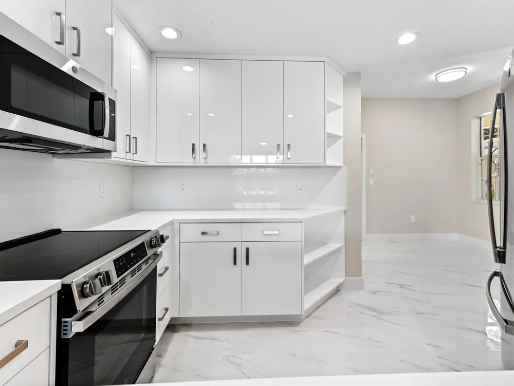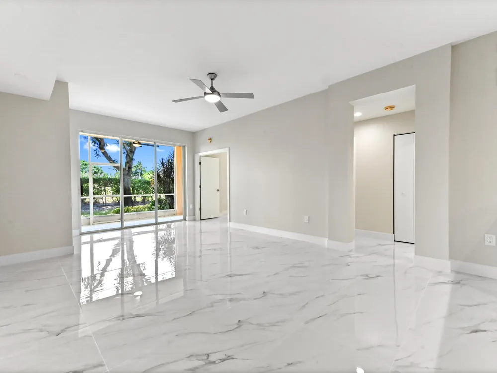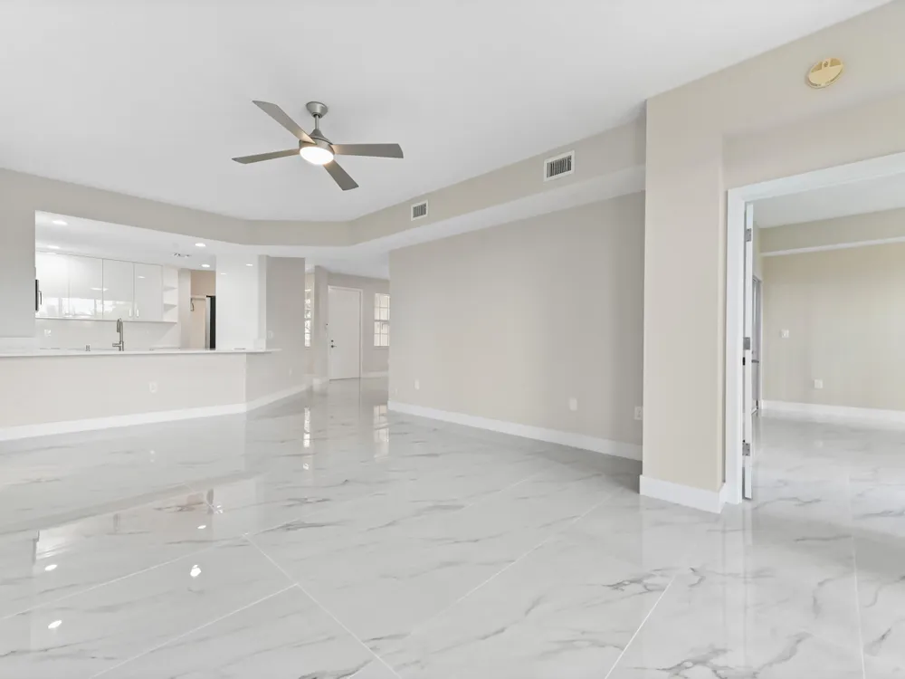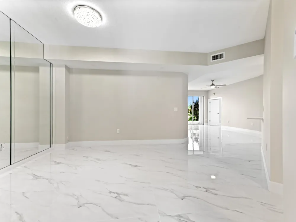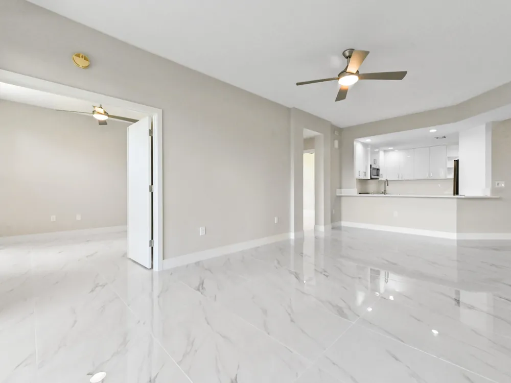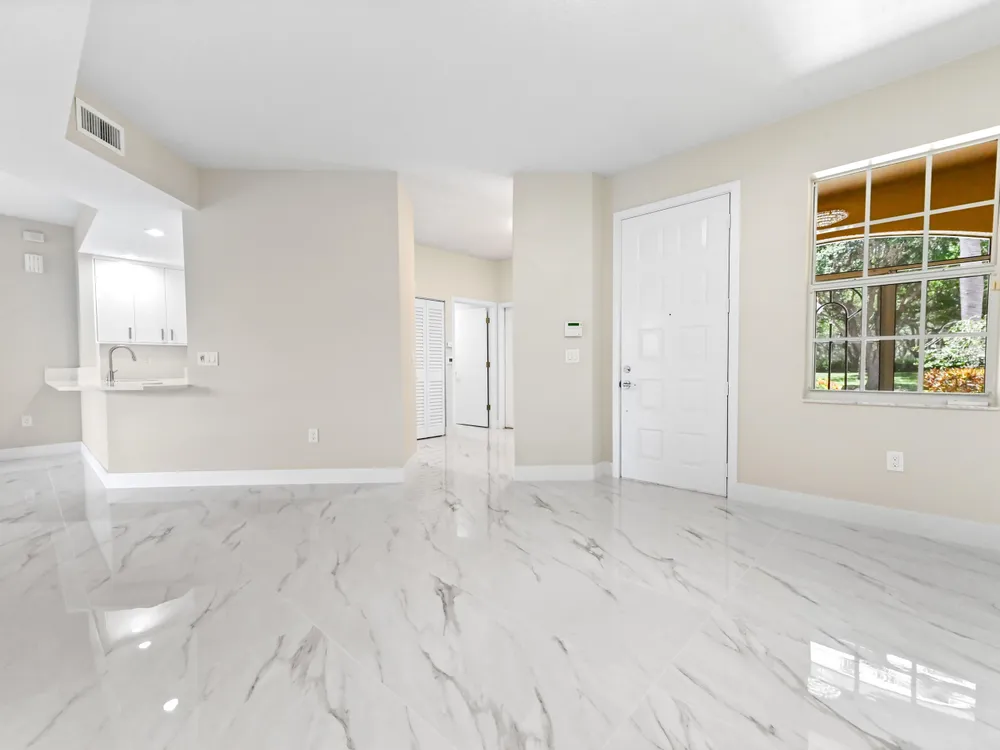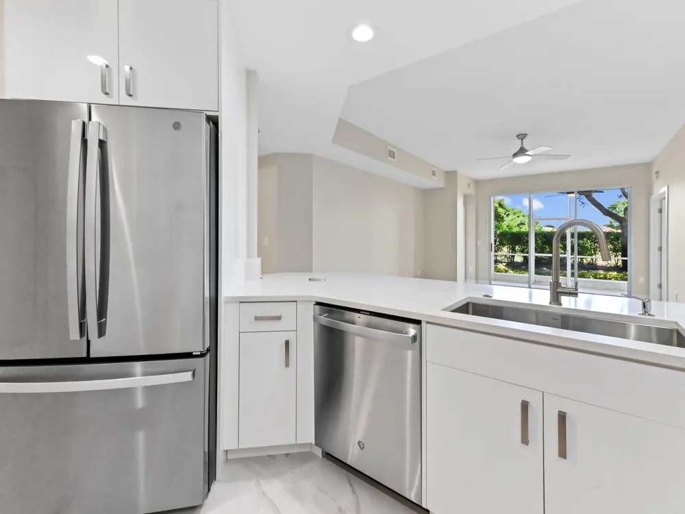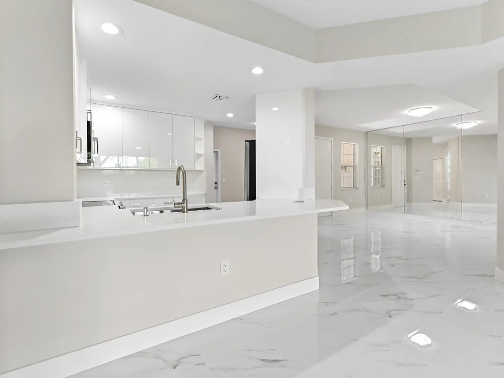 Introducing a sophisticatedly updated residence at 12510 Crystal Pointe Dr #102, located in the vibrant heart of Boynton Beach, Florida. This stunning ground-floor unit elevates the standard of modern living, boasting a complete top-to-bottom renovation with luxurious finishes and state-of-the-art features. Step inside to discover a bright, open living space graced with porcelain tile flooring throughout, echoing the elegance of natural stone and infusing the home with an air of refined opulence. The living area seamlessly connects to the well-appointed kitchen and dining space, offering a versatile layout perfect for both tranquil living and entertaining.