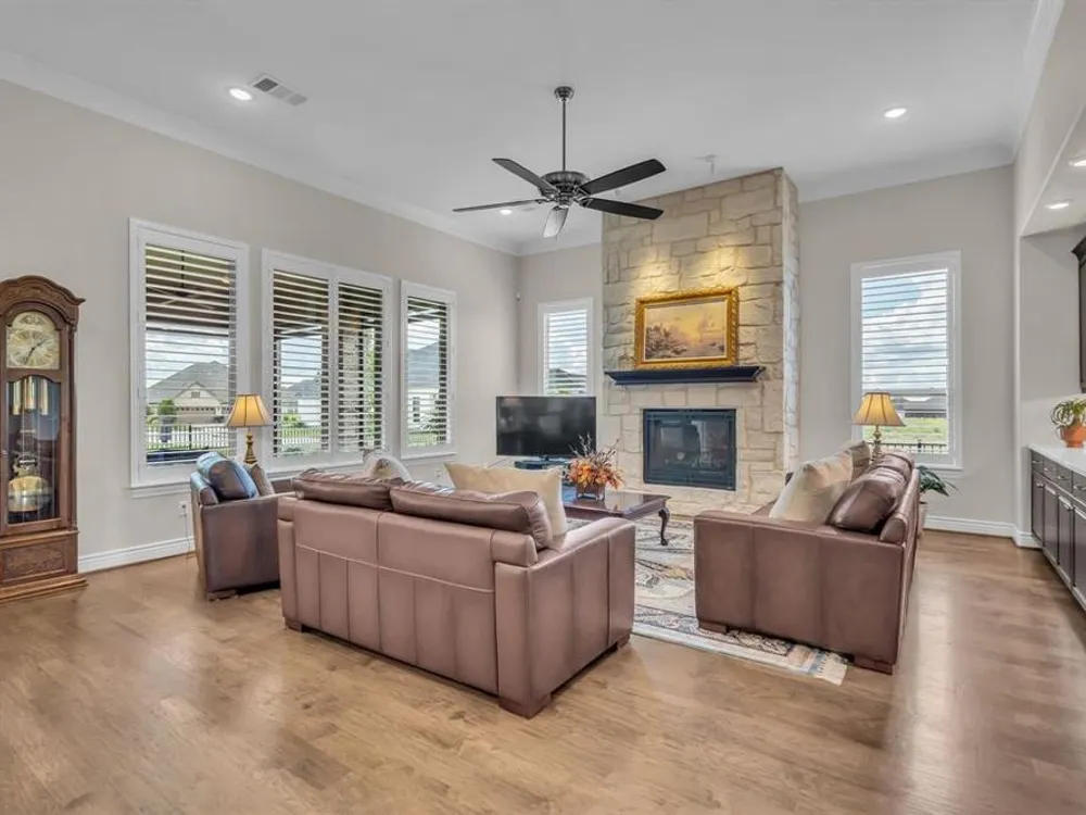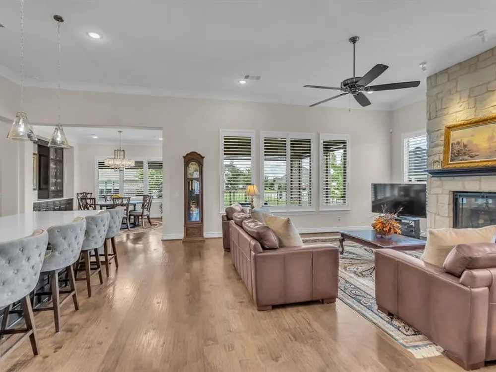 Welcome to this stunning Avalon home on a beautiful corner lot in the highly sought-after community of Robson Ranch, boasting upgrades galore! Step inside to discover custom features throughout, including upper and lower cabinetry, elegant lighting, and glass accents in the dining area. A striking stone fireplace, solid wood floors, and plantation shutters add warmth and sophistication. The outdoor spaces are just as impressive, with an extended front and back patio, motorized screens, and beautifully designed landscaping that enhances curb appeal. A whole-home generator system adds comfort and peace of mind. The large Flex room- office is a bonus. This home has been thoughtfully upgraded both before and after closing, making it truly one-of-a-kind. This house has SO MUCH STORAGE THROUGOUT. Don’t miss the chance to see this exceptional property in person! This amazing 55+community offer so many amenities there is something for everyone. Pickleball, tennis, pool, golf, bocce, restaurant, numerous clubs and much more. Robson Ranch boasts with a wealth of amenities including a Clubhouse, Golf, Tennis, Pickleball, Fitness Center, Creative Arts, Dog Parks, Pool, Baseball field and many clubs to join and much more.