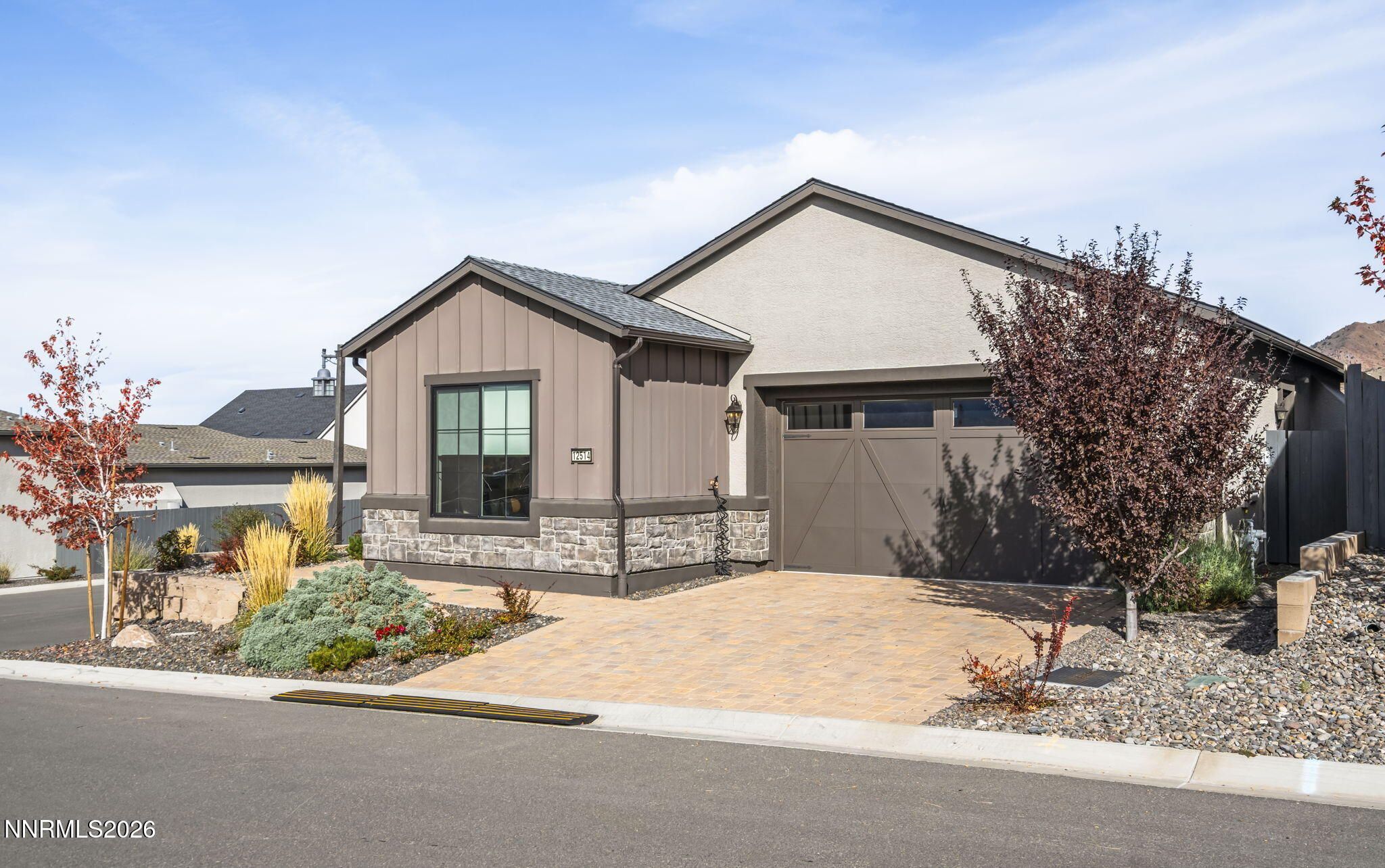 Built in 2022, this upgraded home blends comfort and simplicity in a gated 55+ Reno community. Quality finishes are featured throughout, including premium cabinetry, countertops, flooring, tile, carpet, lighting, and appliances. The corner-lot setting offers an open floor plan with a cozy fireplace, along with a den or large office facing the clubhouse. Low-maintenance landscaping completes the home for easy, everyday living. Relax with a lock-and-leave lifestyle and enjoy a clubhouse with pools, spa, fitness center, pickleball and bocce courts, walking paths, and social activities. Close to shopping, dining, healthcare, and outdoor recreation—designed for comfort, convenience, and connection.