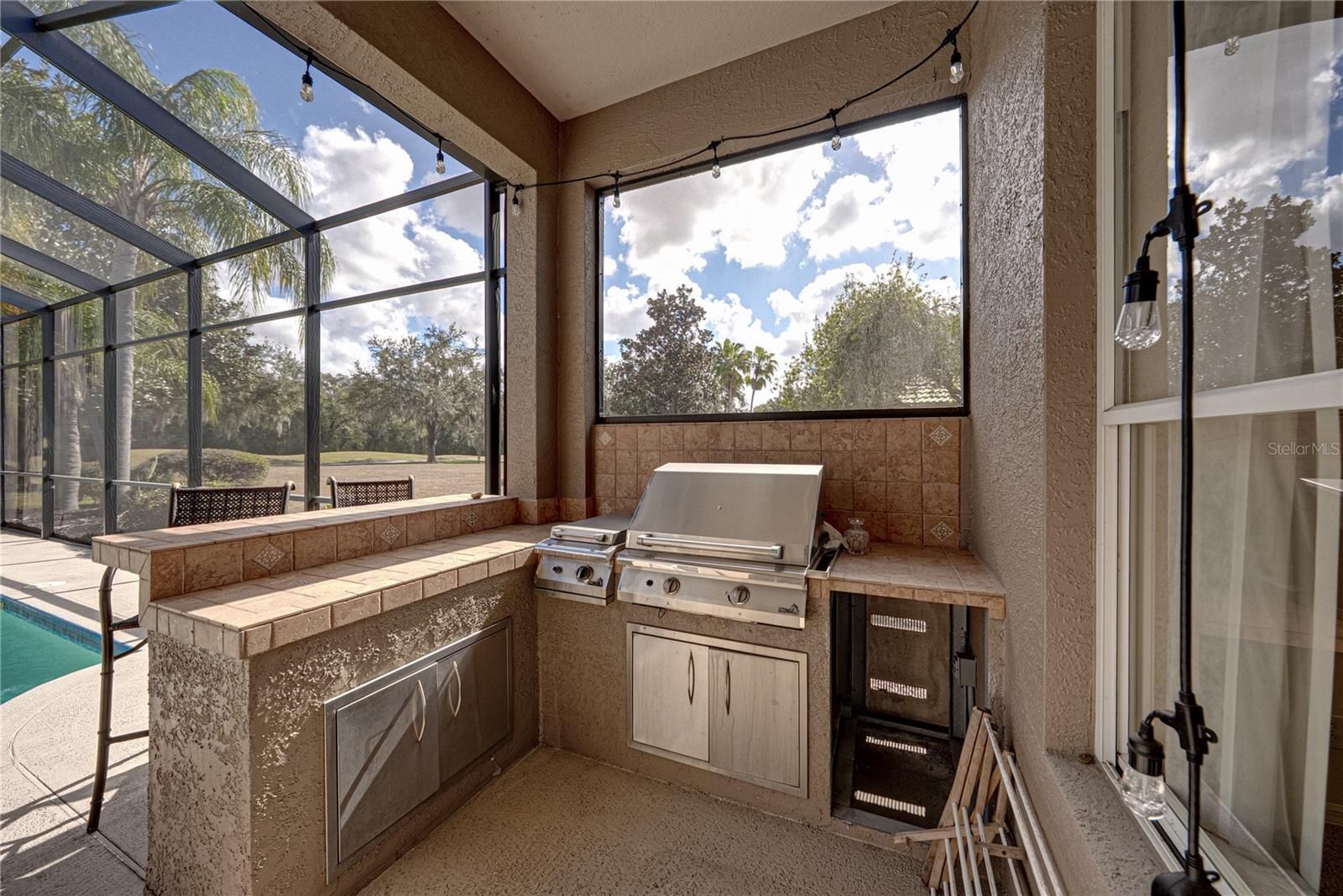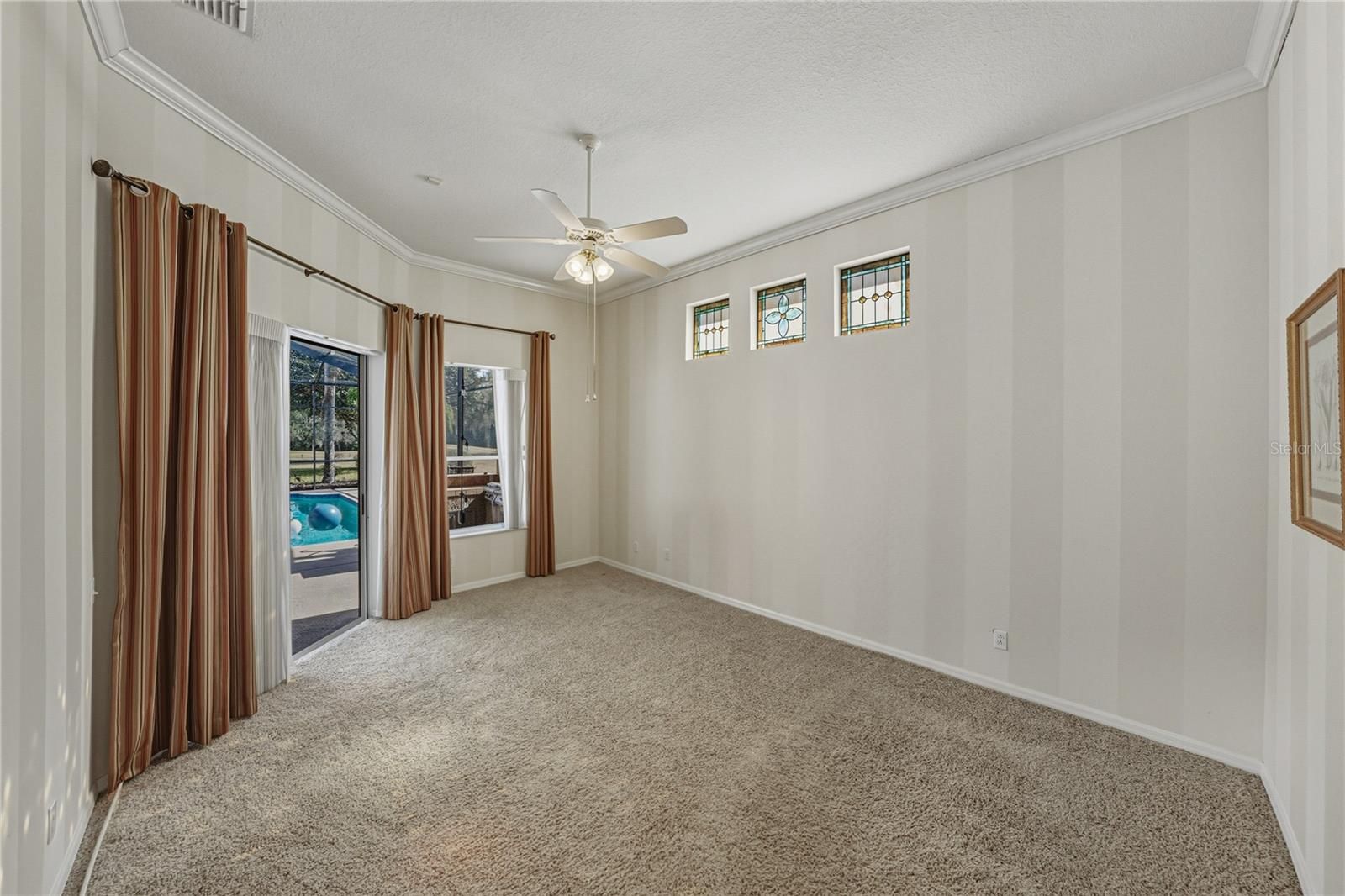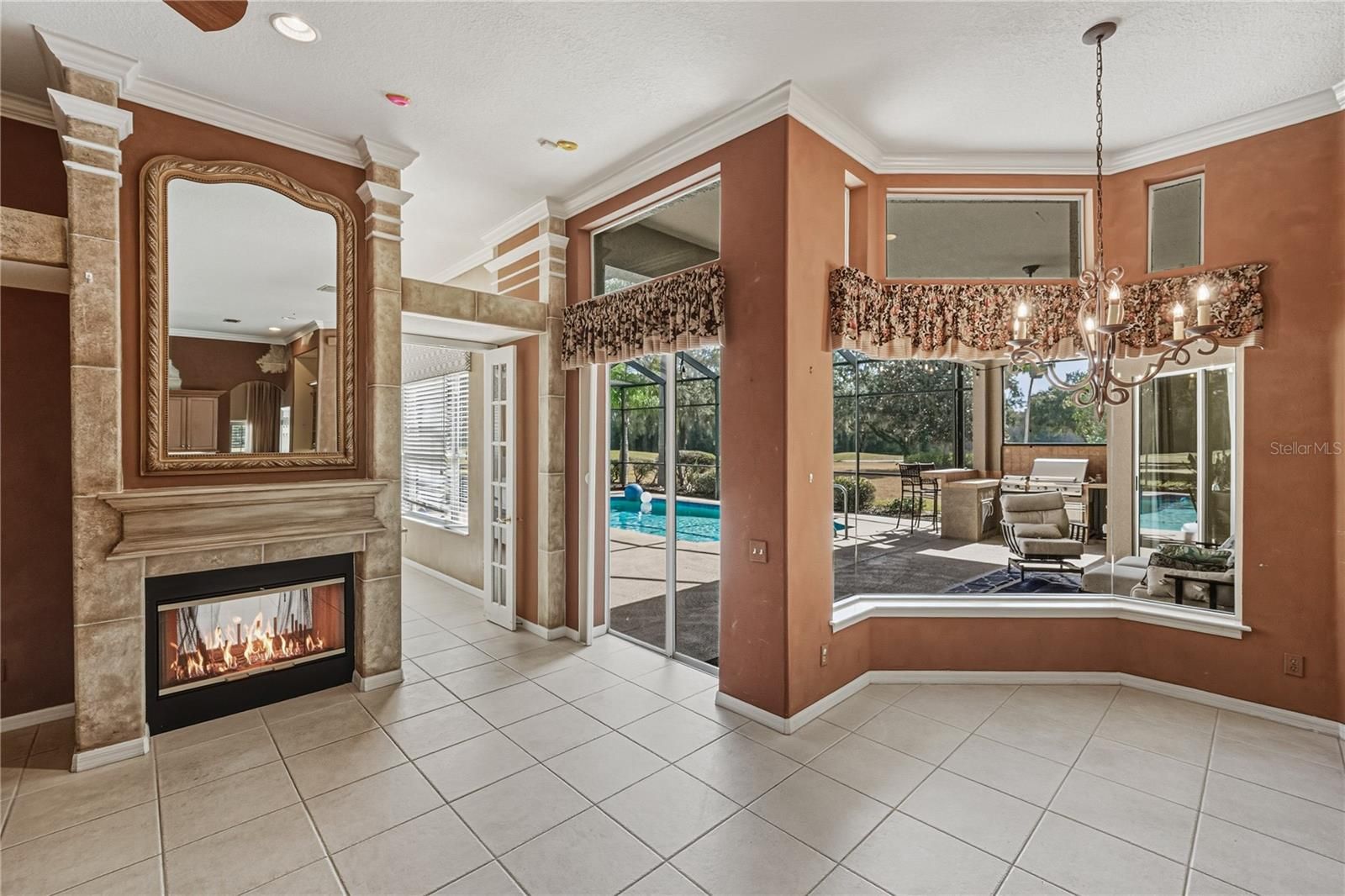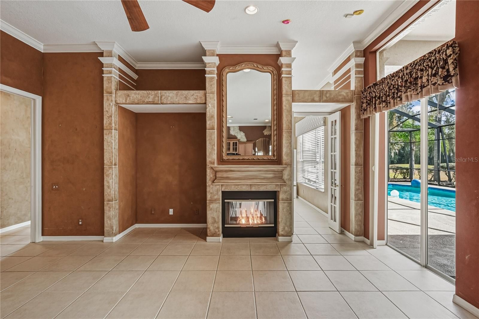 Within the gates of amenity-rich Lake Jovita, this ideally located home offers a rare opportunity to update and tailor a property with an excellent layout and prime golf course views. The residence features 3 bedrooms, 3 baths, a 2025 roof, a bonus room, a sparkling pool, and a 2-car garage paired with a dedicated golf-car garage, all thoughtfully placed along the community’s main drive overlooking the fairways. Tropical landscaping, a paver drive, and a generous covered entryway set a welcoming first impression. Inside, a flexible floor plan unfolds with multiple living areas, a split bedroom layout, and architectural touches that include crown molding, plantation shutters, and soaring, ornate ceilings. The expansive formal living room is filled with natural light and opens to the lanai through sliding glass doors, and it flows effortlessly into the dedicated formal dining room or onward to the kitchen. The kitchen truly serves as the heart of the home, offering wide open spaces ideal for everyday living and entertaining. A central island with breakfast bar seating anchors the room, while pantry storage, a passthrough to the living room with decorative cabinetry, and a cozy dinette with a large picture window overlooking the pool add even more character, function, and charm. Overlooking it all is the generous family room, designed for gatherings with slider access to the lanai, an entertainment center nook, and a striking double sided fireplace shared with the versatile bonus room beyond. The bonus room enjoys its own pool views, sits conveniently near a full bathroom, and provides flexibility as a guest retreat, home office, or potential fourth bedroom. Privately tucked near the front of the home, the primary suite is a peaceful escape with plush carpeting, direct pool access, two walk-in closets, and an expansive spa-like ensuite featuring dual vanities, a glass-enclosed walk-in shower, a separate soaking tub, and a water closet. On the opposite side of the home, bedrooms two and three offer comfortable accommodations with ceiling fans, built-in closets, and easy access to the third full bathroom with a tub and shower combo positioned between them. Outdoors, the lanai becomes a true highlight, overlooking the golf course and surrounding the sparkling pool. A covered area with a built-in grill and bar creates easy alfresco dining, while ample deck space invites lounging, sun-soaking, and relaxed Florida living. Beyond the property,  Residents of Lake Jovita enjoy access to a playground, park, pickleball court, and walking trails. Optional membership packages at the Lake Jovita Golf and Country Club include access to 2 18- hole world-class golf courses, a Jr. Olympic size swimming pool, a restaurant, a clubhouse, a fitness center, a pro shop, and more. I invite you to schedule your private tour and experience this exceptional Lake Jovita opportunity for yourself!