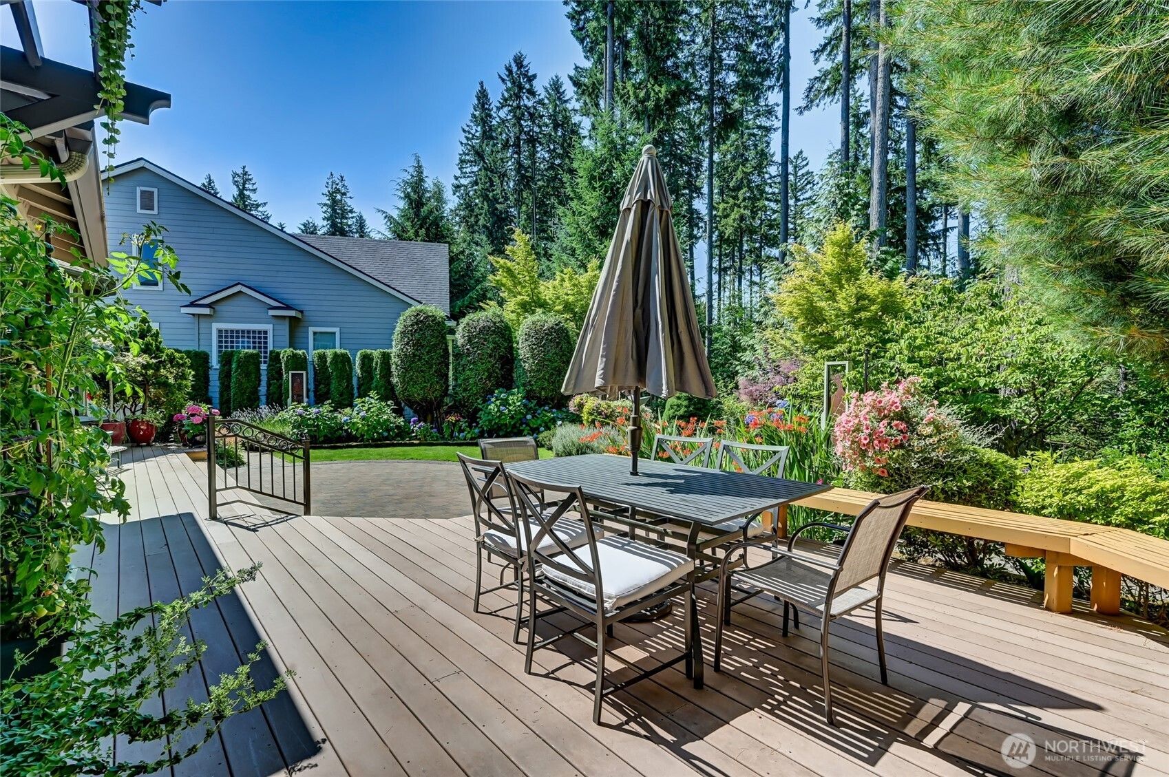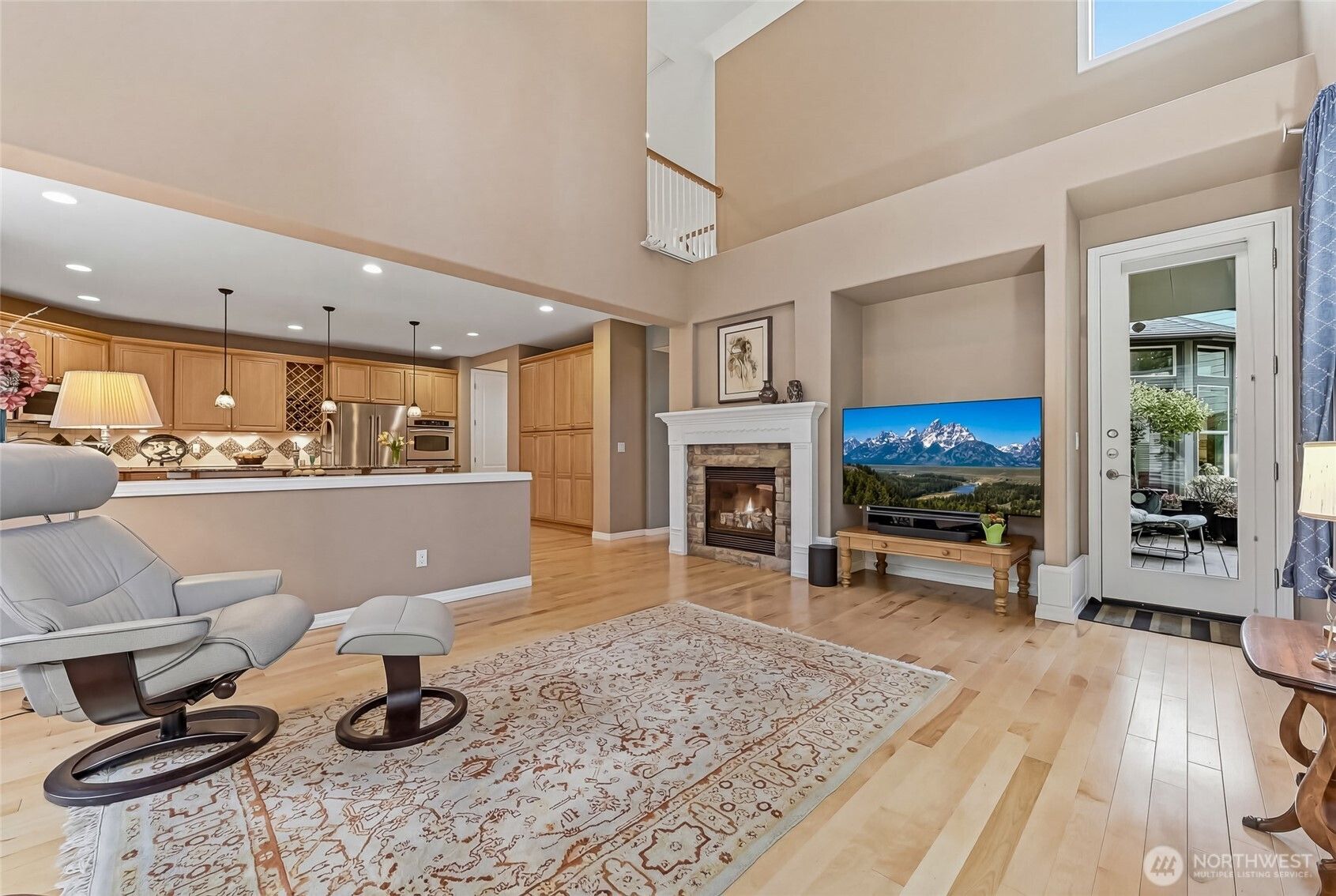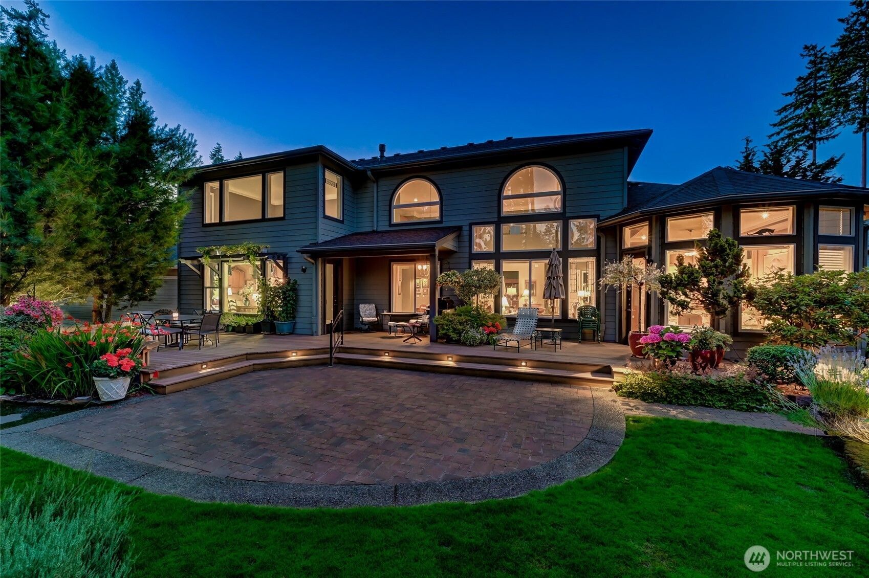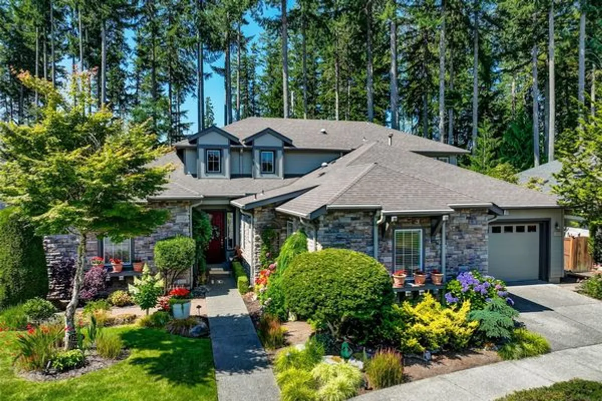 About 3,150 sq.ft., this Maryhill home has a fantastic mix of formal and informal spaces on a level arboretum-like lot backing to a greenbelt. Be greeted by vaulted ceilings, cathedral-like windows, and warm hardwood floors that run through the main floor. The 21-ft. ceilings and walls of windows continue into the family room, bringing inside the lush garden and evergreens beyond. The kitchen has an abundance of cabinets with pull-out shelves, a pantry wall, lots of prep space and an eating space. The huge main-floor primary bedroom has an equally big bathroom that includes two vanities, a steam shower, soaking tub and walk-around closet. The oversized second primary bedroom on the main floor is also en-suite with a walk-in closet. This room is plumbed and could be converted to a studio apt. The large office and laundry room complete the main floor. The upstairs third bedroom has a walk-in closet and adjacent full bath. A loft area on this floor has a built-in workspace. The large deck with built-in benches, only steps above a brick patio, is surrounded by exquisite gardens filled with beautiful perennials and specimen plantings, extensive outdoor lighting and a backyard drip irrigation system. It is a short, mostly level stroll to the Cascade Clubhouse, Trilogy’s social hub. Recently re-roofed. New furnace and air conditioner. Exterior painted 2024. Level 2 EV charger.