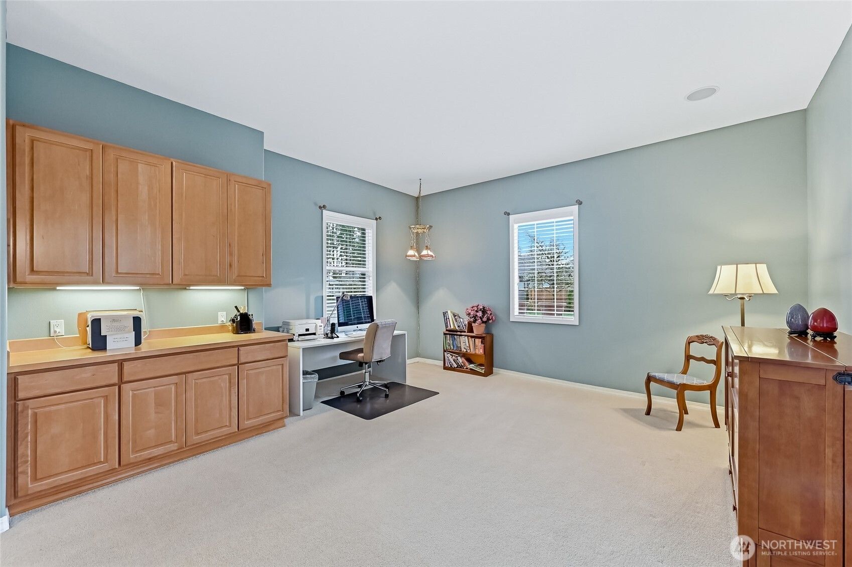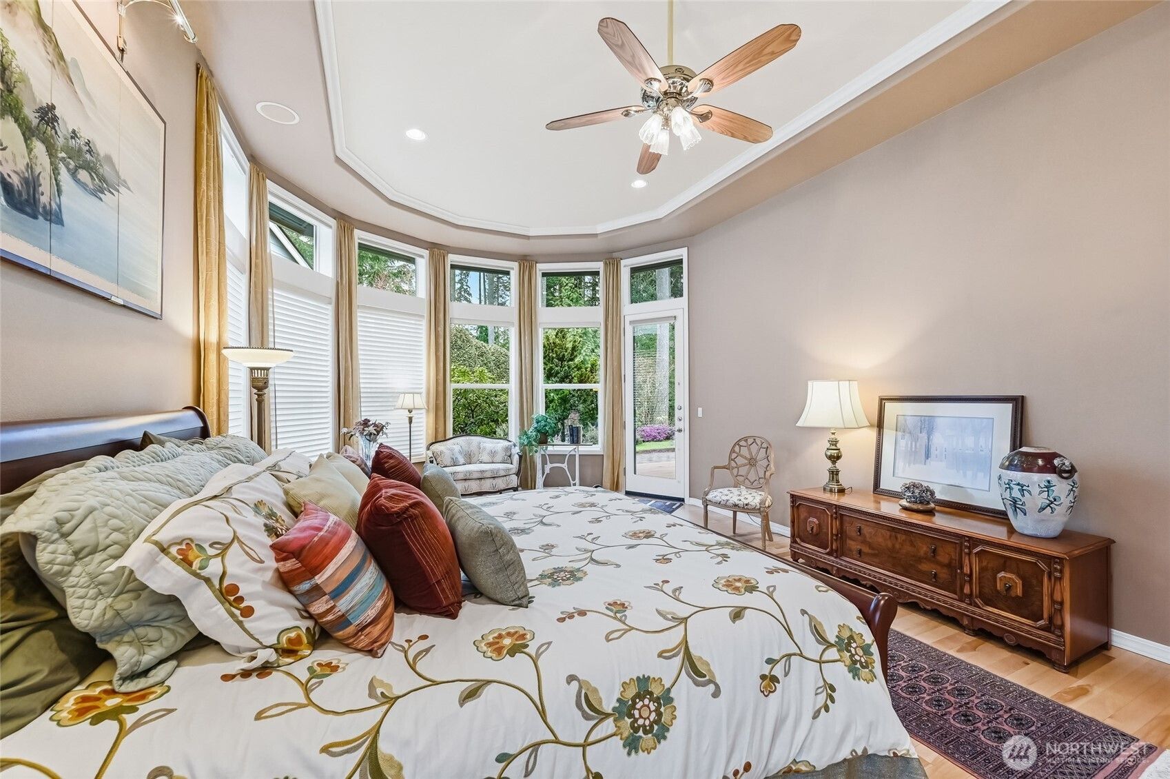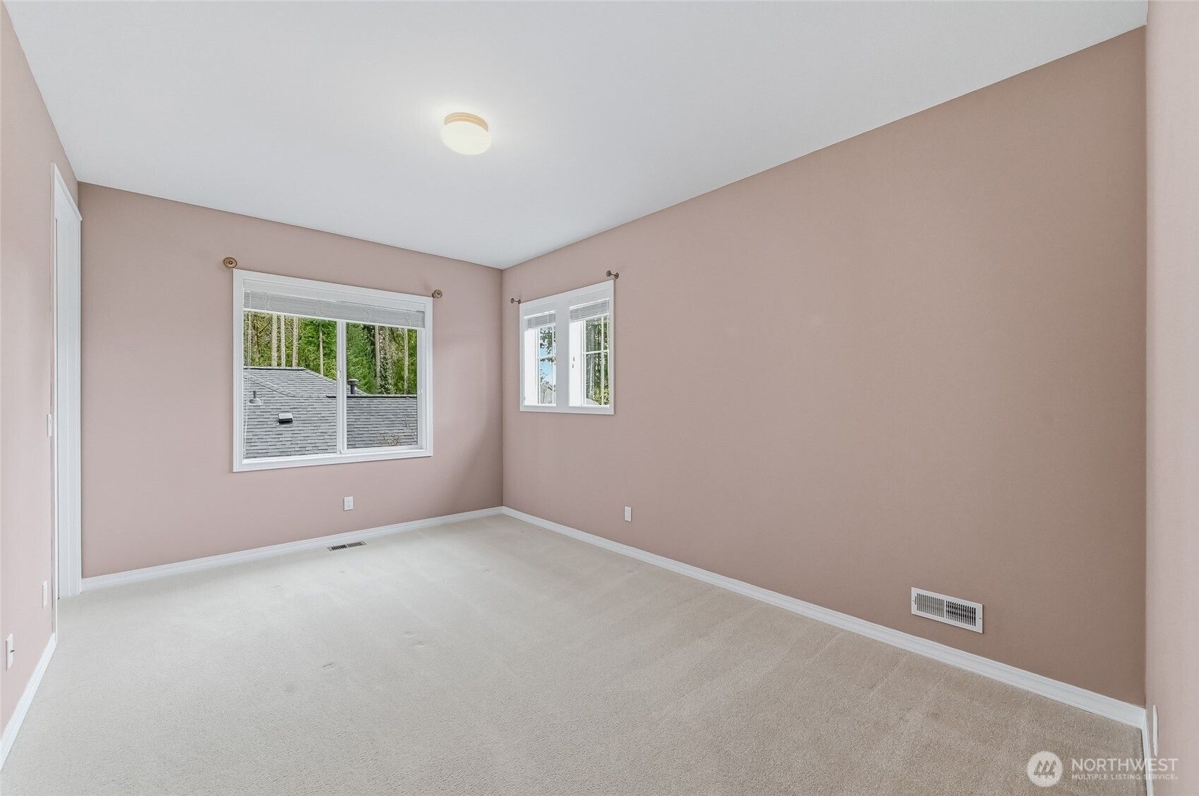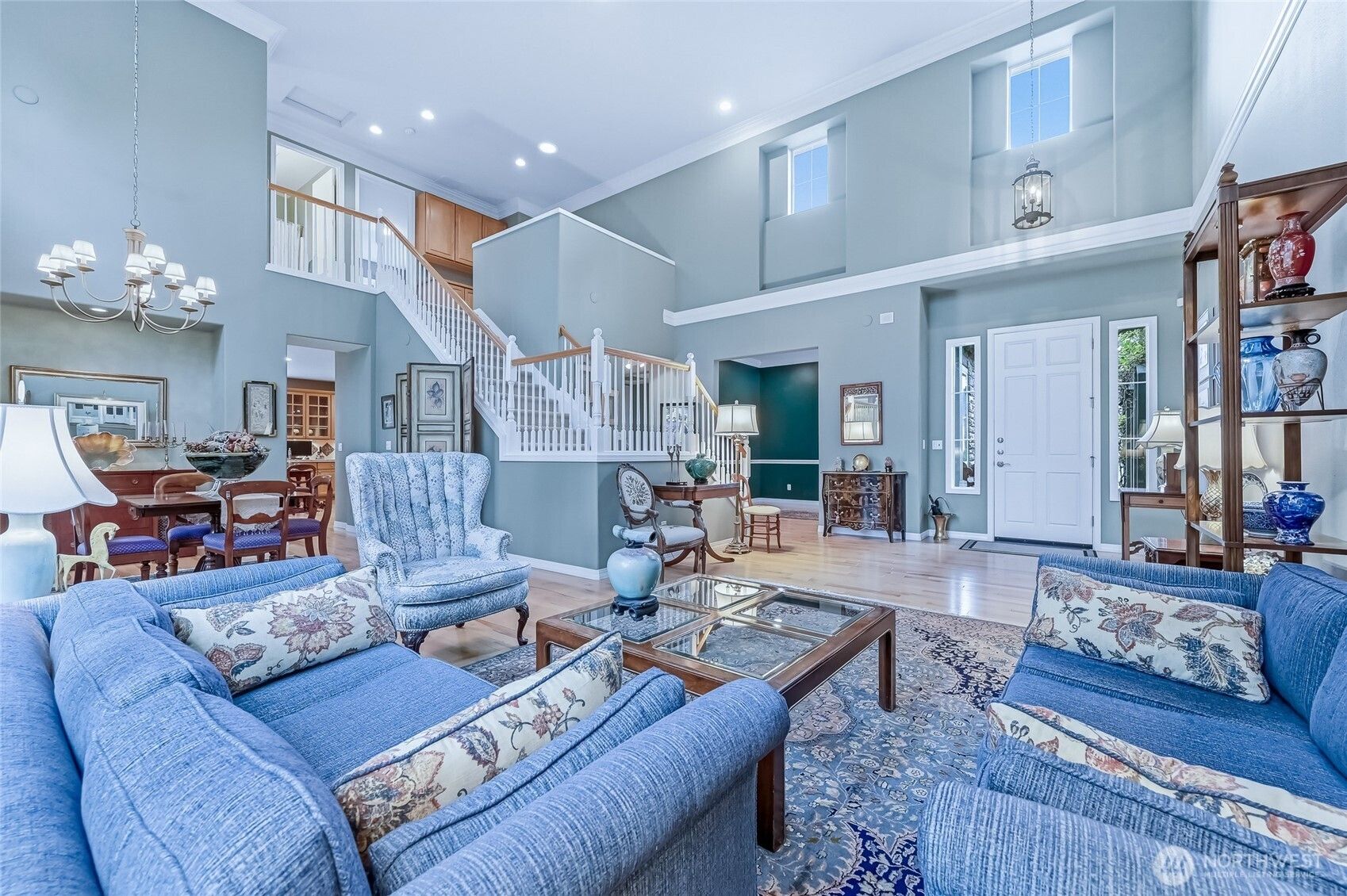 About 3,150 sq.ft., this Maryhill home has a fantastic mix of formal and informal spaces on a level arboretum-like lot backing to a greenbelt. Be greeted by vaulted ceilings, cathedral-like windows, and warm hardwood floors that run through the main floor. The 21-ft. ceilings and walls of windows continue into the family room, bringing inside the lush garden and evergreens beyond. The kitchen has an abundance of cabinets with pull-out shelves, a pantry wall, lots of prep space and an eating space. The huge main-floor primary bedroom has an equally big bathroom that includes two vanities, a steam shower, soaking tub and walk-around closet. The oversized second primary bedroom on the main floor is also en-suite with a walk-in closet. This room is plumbed and could be converted to a studio apt. The large office and laundry room complete the main floor. The upstairs third bedroom has a walk-in closet and adjacent full bath. A loft area on this floor has a built-in workspace. The large deck with built-in benches, only steps above a brick patio, is surrounded by exquisite gardens filled with beautiful perennials and specimen plantings, extensive outdoor lighting and a backyard drip irrigation system. It is a short, mostly level stroll to the Cascade Clubhouse, Trilogy’s social hub. Recently re-roofed. New furnace and air conditioner. Exterior painted 2024. Level 2 EV charger.