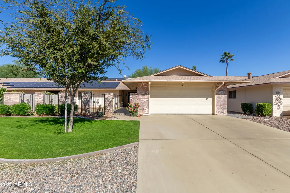 This stunning Gemini Twin model offers 2 bedrooms and 2 beautifully updated bathrooms, nestled in the heart of Sun City West. With 1,790 sq. ft. of thoughtfully remodeled living space, this home is truly a retreat. Enjoy exceptional curb appeal with lush green grass, tasteful desert landscaping, exterior pavers, and a private courtyard. Major upgrades include a newer roof, new AC unit, solar system, energy-efficient windows, new hot water heater, added attic insulation, purified water system, new washer and dryer—providing both comfort and efficiency. Step through the brand-new double iron entry doors and you'll be greeted by flat ceilings, fresh neutral paint, upgraded lighting and ceiling fans, plantation shutters, and stylish new flooring with updated baseboards throughout. The living room features a cozy fireplace, custom entertainment center, and skylights that fill the space with natural light, creating a warm and inviting atmosphere. The chef's kitchen is a showstopper with a cooktop island, large vent hood, modern cabinetry, gorgeous countertops, stainless steel appliances, new kitchen faucet, and sleek contemporary lighting. Both bedrooms are spacious with walk-in closets, while both bathrooms have been tastefully remodeled with extended walk-in showers, updated vanities and countertops, and modern fixtures. This move-in ready home combines timeless design, top-quality upgrades, and an unbeatable locationa perfect place to enjoy the best of Sun City West living!