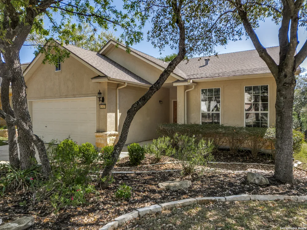 Welcome to resort-style living in this beautiful 3-bedroom, 2-bath home on a beautiful greenbelt with a private study, perfectly nestled in the sought-after 55+community in the master planned subdivision of Del Webb's Hill Country Retreat. Enjoy an open-concept island kitchen and a spacious family room with a cozy stone fireplace, all overlooking a serene greenbelt with lush natural landscaping. In addition, the generous primary suite overlooks the gorgeous, wooded views of the greenbelt with space for a sitting area. Whether you are hosting friends or enjoying time with family, the outdoor deck and expansive backyard offer the perfect setting to take in the beauty of the natural surroundings. From your beautiful outdoor space, step right out to the scenic walking trail which leads you on a short stroll to the community's incredible resort clubhouse, featuring indoor and outdoor pools, tennis and pickleball courts, a fully equipped weight room, library and so much more. There have been many upgrades since 2020 including a new roof in 2020, wood shutters placed in the family room, dining room and entry hall, leaf filter system for the gutters, AWS water softener and AWS water filters for the kitchen and refrigerator. This home offers the perfect blend of comfort, privacy and active adult living!