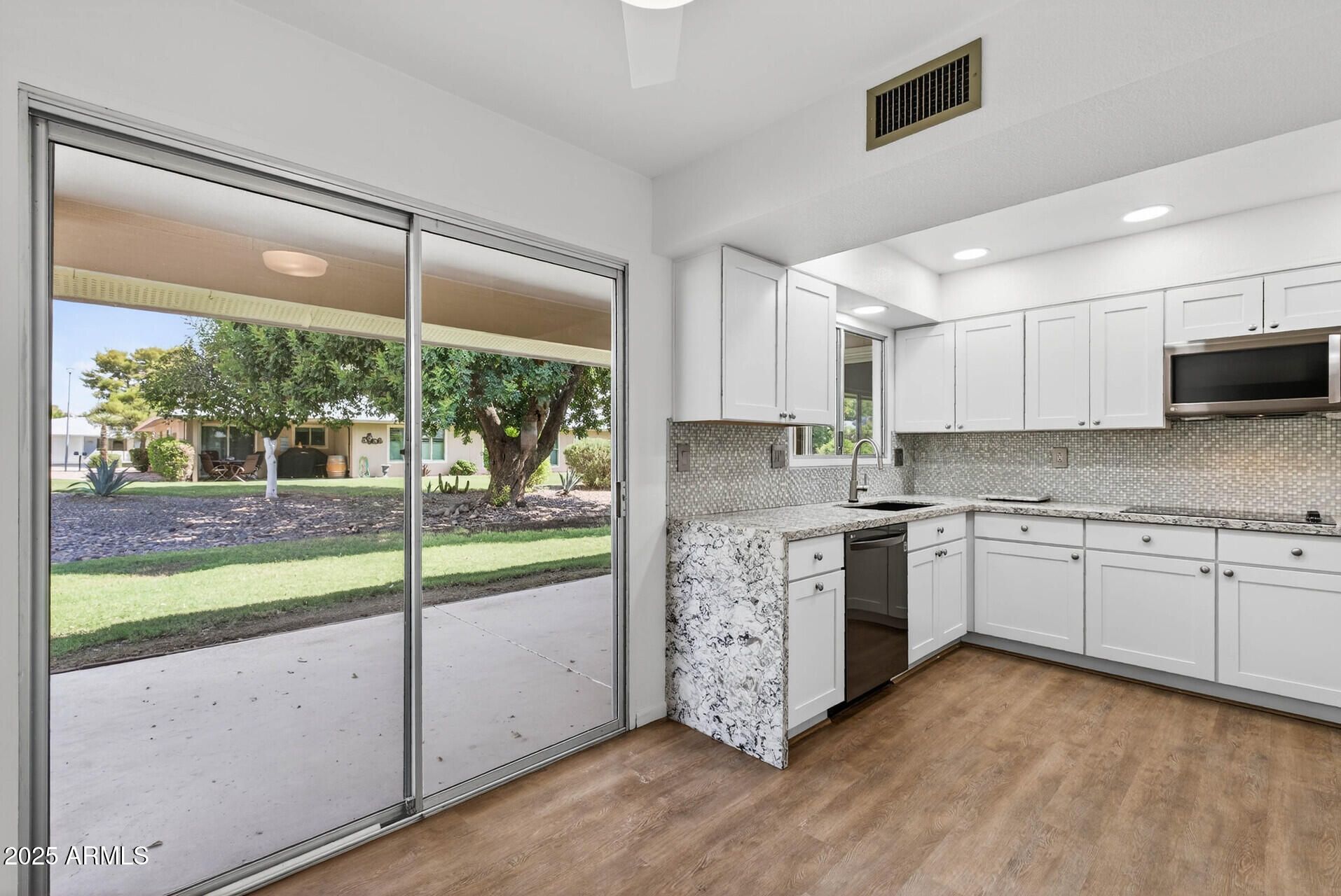 Welcome to your new home in the desirable 55+ community of Sun City West. This updated Gemini Twin offers 2 bedrooms, 2 bathrooms, and a spacious 2-car garage with built-in cabinets for extra storage. Enjoy modern touches throughout, including no popcorn ceilings, and the added benefit of paid-in-full solar panels for energy efficiency. A newer air conditioning unit, installed in 2025, provides peace of mind and comfort year-round. This property is also rentable, making it a versatile investment. Ideally located near golf, bowling, tennis, pickleball, fitness centers, shopping, restaurants, hospitals & clinics—this home offers both convenience and an active lifestyle. Own this home and enjoy all the amenities Sun City West has to offer!
