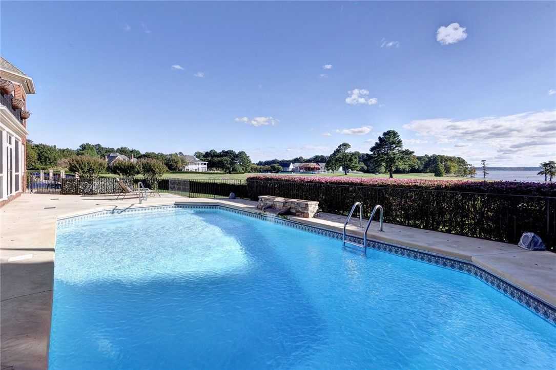 Privately situated at the end of Two Rivers Point, this exceptional custom home is surrounded by the confluence of the James and Chickahominy Rivers and bordered by a 15 acre protected nature preserve where bald eagles and ospreys soar. Designed to capture sweeping river and golf views of the 18th fairway and green, this residence blends elegance, comfort, and privacy. Enjoy outdoor living on the screened porch or in the saltwater pool with a full bath opening directly to the pool deck. The open floor plan is ideal for entertaining, featuring a gourmet kitchen with cherry cabinetry, granite countertops, a large center island, and dual walk-in pantries. A wet bar and butler’s pantry connect the kitchen to the formal dining room. Luxurious primary suites on both levels are complemented by a media room, library with a fireplace, bonus/billiard room with a kitchenette, and wine cellar. Dual laundry rooms, a walk-up attic, a three-car garage, and a partial walk-in crawl space add convenience. Close to the Two Rivers Country Club, which is currently undergoing a nearly $14 million renovation, with completion anticipated in spring 2026.