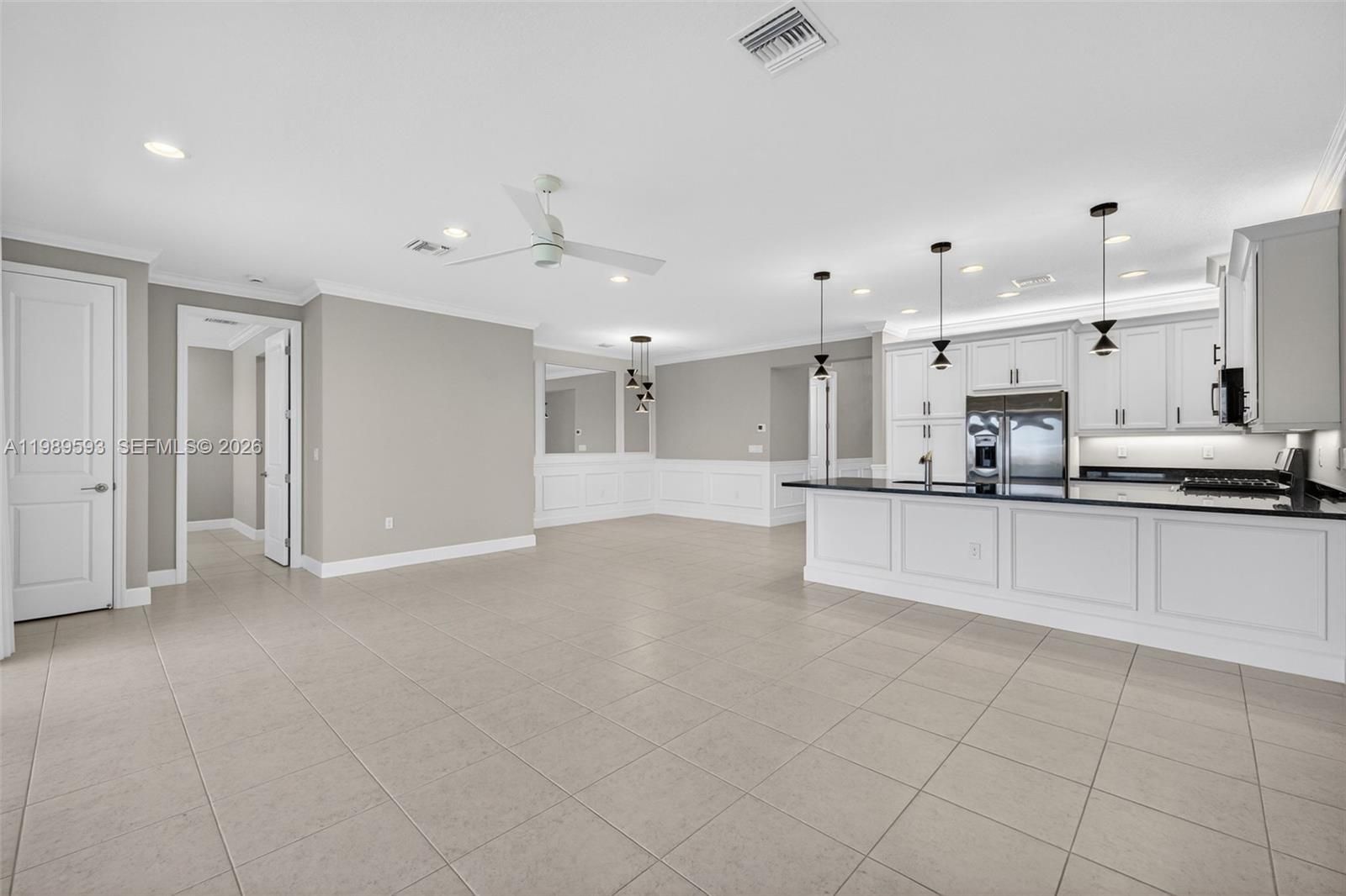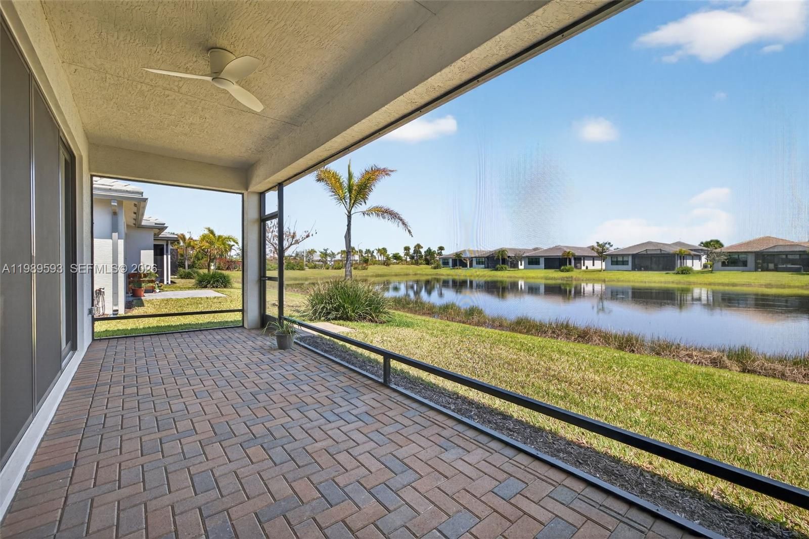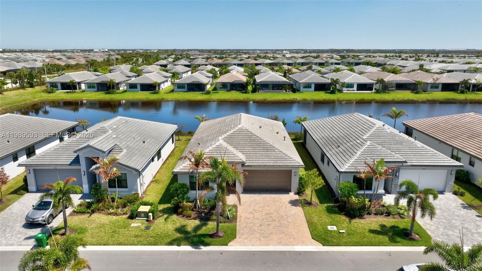 Beautiful Sandpiper Model is– Lakefront Living at Its Finest! Wake up to breathtaking sunrises and serene lake views in this stunning home located in the highly sought-after Valencia Walk community. Showcasing over $60,000 in premium upgrades, this residence perfectly blends luxury, comfort, and thoughtful design. Step inside to discover elegant tile flooring throughout, complemented by plantation shutters, designer draperies and Stunning lighting that elevate every space. The open-concept layout is enhanced by pocket doors, crown molding, and custom decorative trim, creating a refined yet inviting atmosphere. The home features an expanded walkway and driveway for added curb appeal, along with a custom built-in pantry that offers both style and functionality. A versatile den with a built-in unit provides the perfect setting for a home office, library, or media room. This move-in-ready home allows you to immediately enjoy the exceptional lifestyle offered at Riverland, including resort-style pools, state-of-the-art fitness centers, vibrant social clubs, and picturesque walking trails. Experience luxury living with every detail already in place—your Florida dream home awaits.