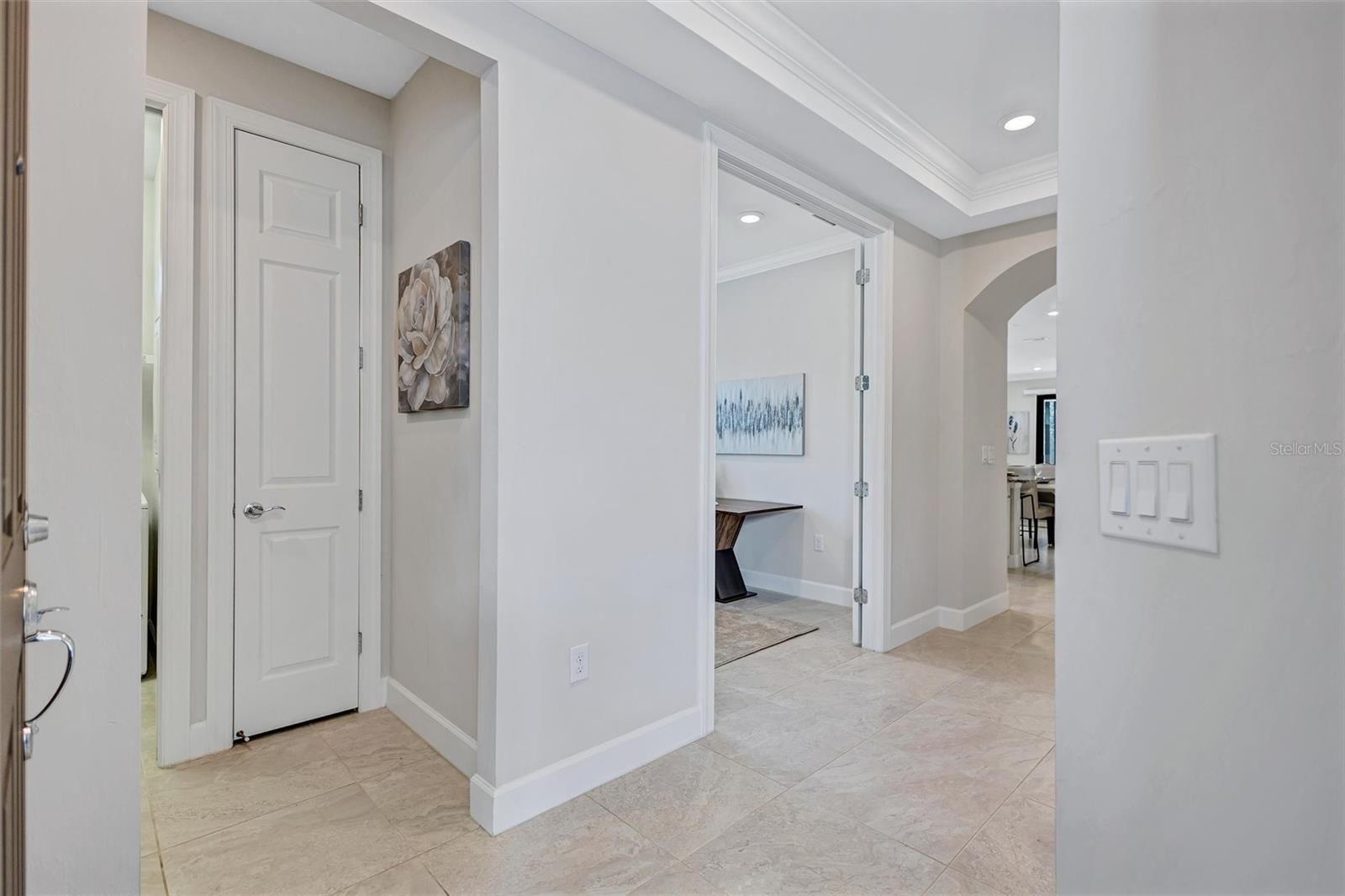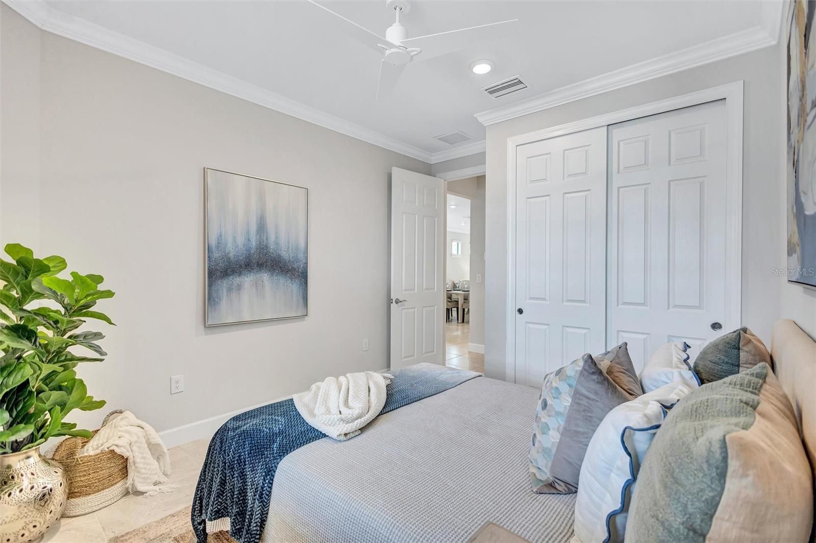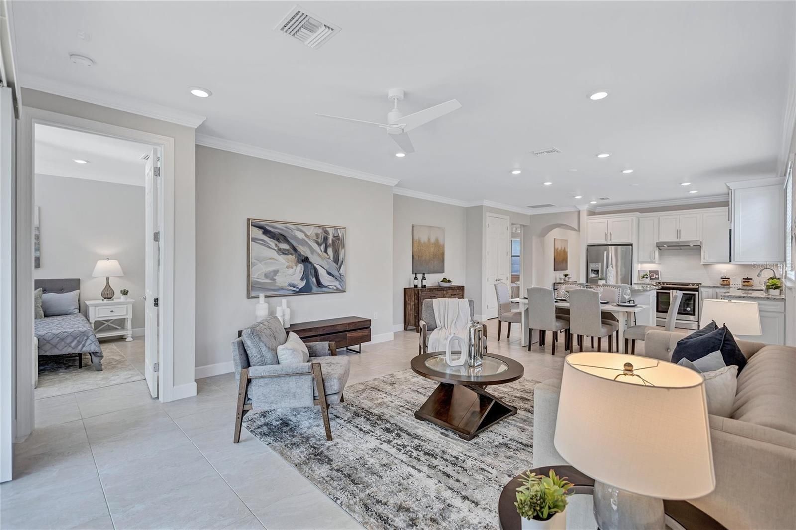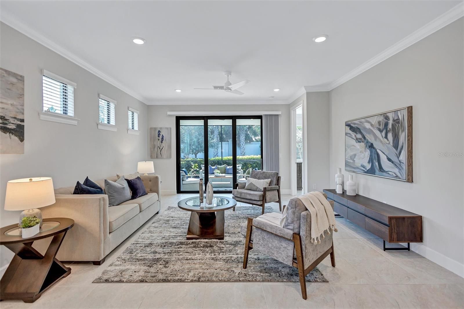 Finally – the one you have been waiting for! This stunning 2021 Cressida model offers Impact Windows & Doors, extensive upgrades inside & out, and an exceptional end-of-the-cul-de-sac location that provides rare privacy. Designed to live like a single-family home, it features a 24-ft Courtyard entry & an impressive 29-ft extended covered lanai overlooking a tranquil, natural Florida backdrop. This open, light-filled floor plan features 9-ft ceilings, 8-ft interior doors, & abundant windows only an end-unit can provide. Easy-care porcelain tile & crown molding throughout complement the coastal-inspired, light-toned finishes. At the heart of the home, the Chef’s kitchen delights with a natural gas 5-burner range, 42-inch solid-wood cabinetry with soft-close drawers & pull outs, granite countertops, upgraded stainless appliances, under-cabinet lighting, a large pantry, and an island with extra storage & breakfast bar seating – perfect for everyday living or entertaining. The gracious living area flows seamlessly through stacking sliders to the extended, pavered, covered and screened lanai for your private outdoor retreat. The luxurious primary Ensuite is a true oasis, offering comfort-height granite counters, double undermount sinks, upgraded fixtures, and enlarged walk-in shower, separate linen storage and oversized walk-in closet & a private water closet. A versatile flex room allows you to personalize the space to your lifestyle, while the separate laundry room and mud-room entry from the 2-car garage add thoughtful convenience. Located in a maintenance-free, gated community, you’ll enjoy Resort-Style Amenities including a Clubhouse, Barefoot Bar, heated Pool & Spa, fitness center, pickleball, tennis, bocce ball, fire pit, fishing pier & an on-site Property Manager. Furry family members are welcome too, with a 2-sided dog park for both large & small pups. All of this with easy access to Downtown Sarasota’s cultural attractions, charming Downtown Venice, world-famous beaches and the 20+ mile Legacy Trail. Don’t miss the opportunity to see this unique, move-in-ready home!