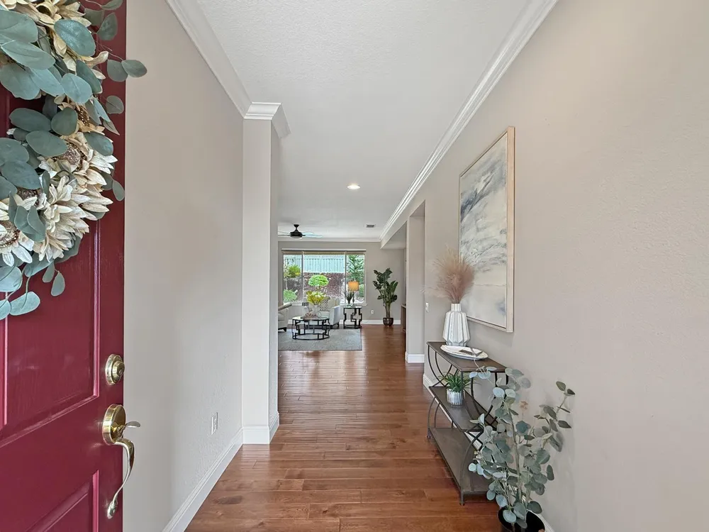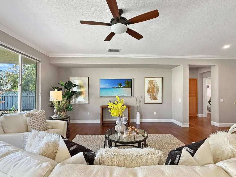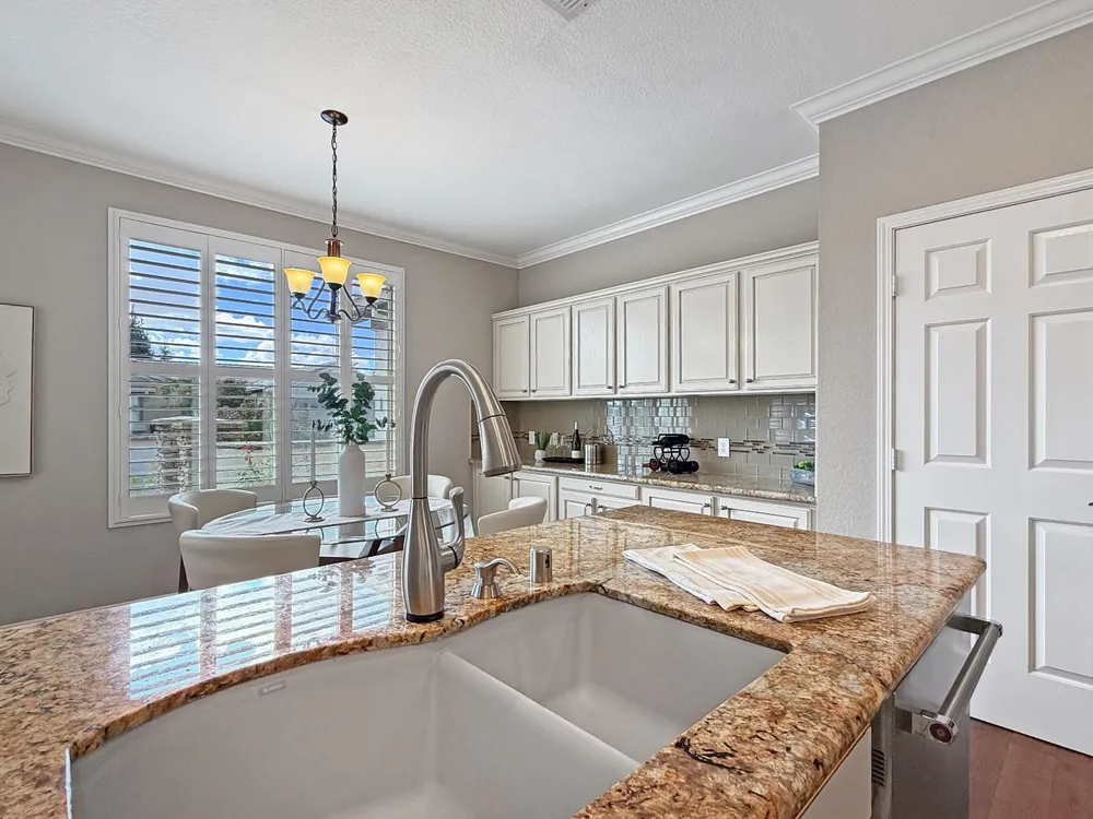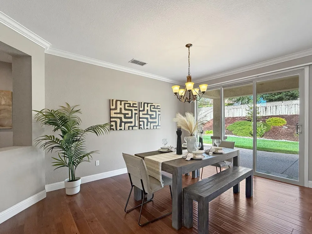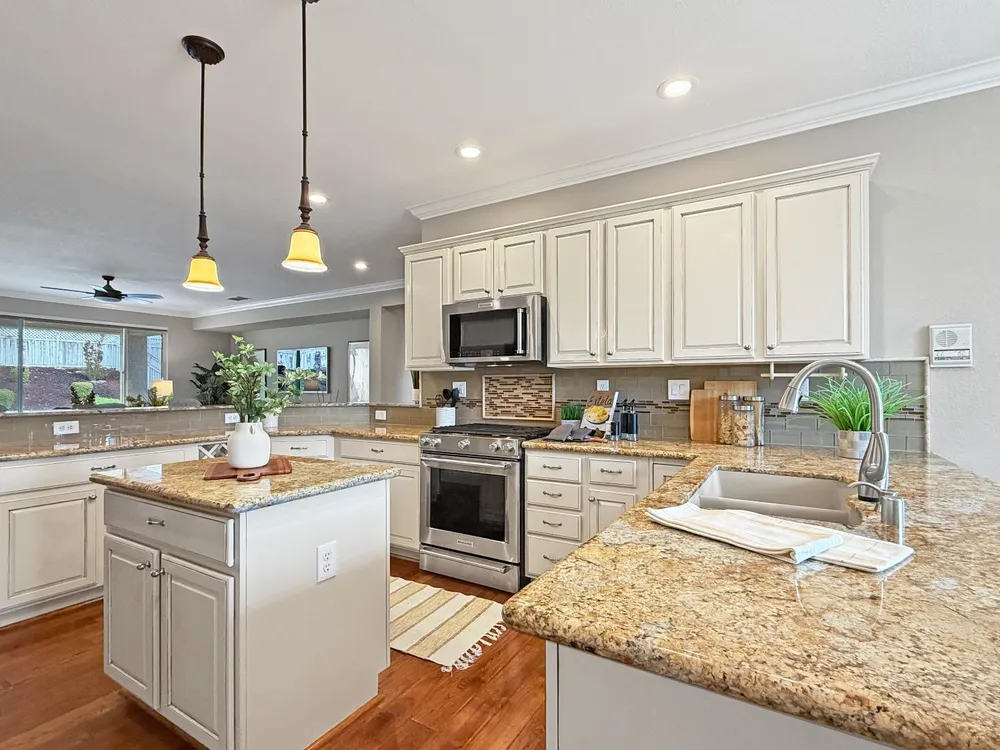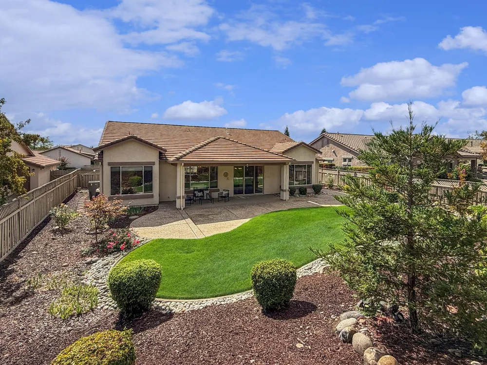 Welcome to this beautifully maintained Annadel model in the highly desirable Sun City Lincoln Hills community. This home features a large gated front patio, perfect for enjoying your morning coffee or greeting guests. Inside, you'll find 3 bedrooms and 2 baths with engineered hardwood flooring throughout, crown molding, and shutters adding timeless charm. The remodeled kitchen shines with granite countertops, KitchenAid appliances, a composite sink, subway tile backsplash, and LED lighting. The spacious primary suite offers a box window that fills the room with natural light, while one guest bedroom also includes a charming box window. Additional updates include a newer HVAC system and water heater. Step outside to the generous private backyard ideal for relaxing or entertaining just moments from the Sports Pavilion and Orchard Creek Lodge. Enjoy the resort-style amenities of Sun City Lincoln Hills, including golf courses, pools, fitness centers, restaurants, and over 80 clubs designed for an active, vibrant lifestyle.