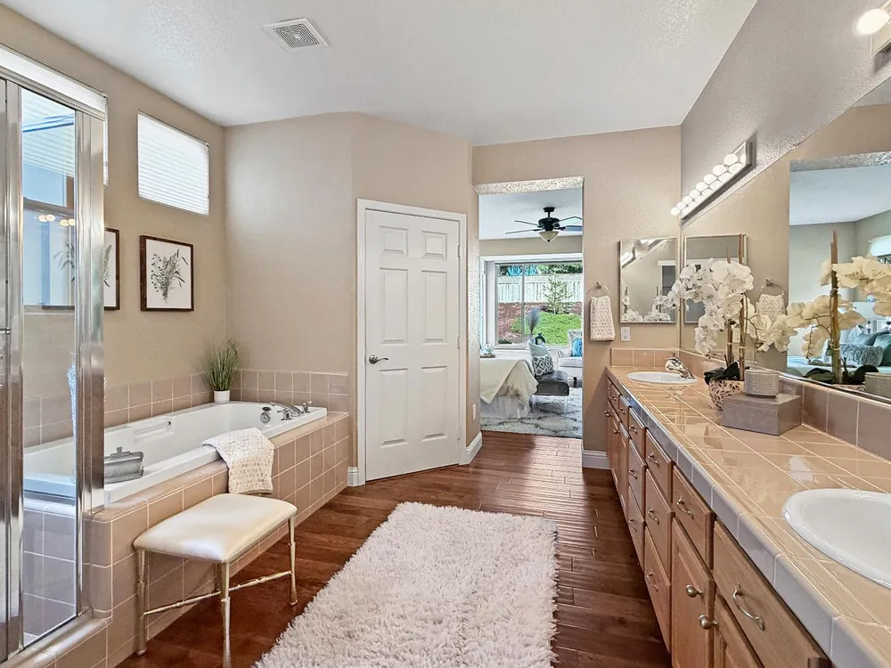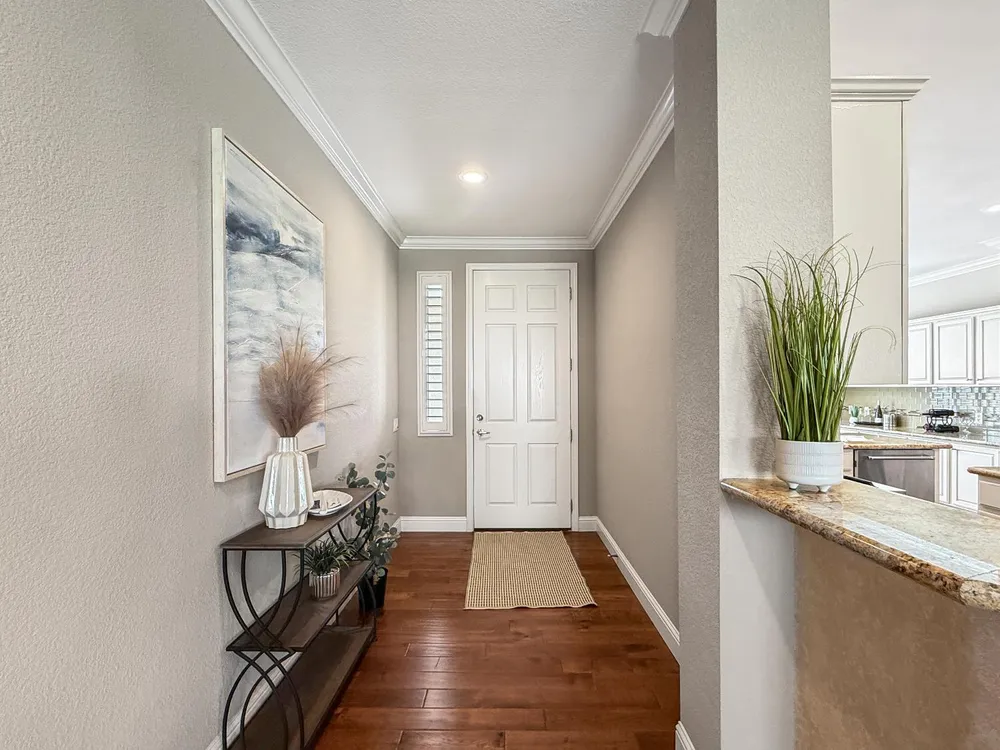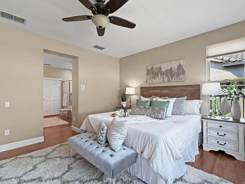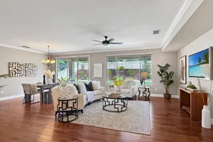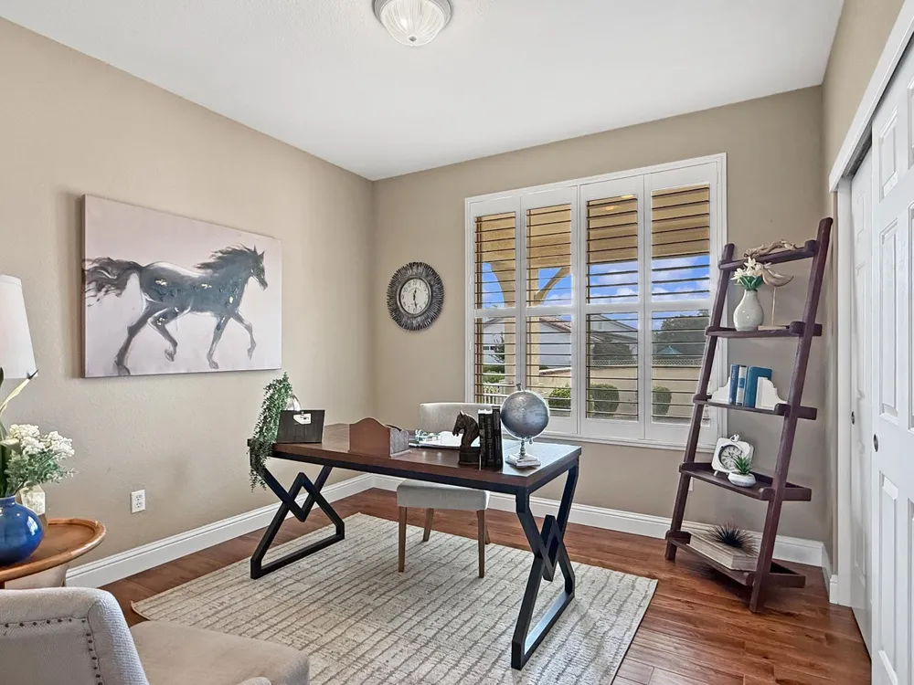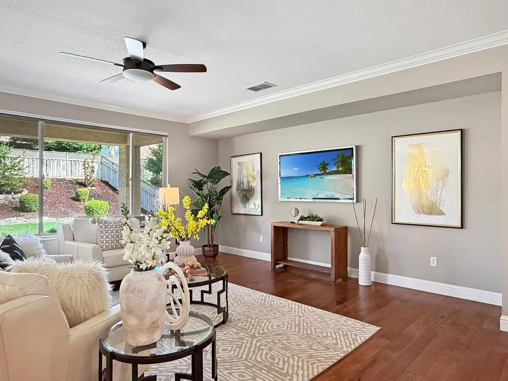 Welcome to this beautifully maintained Annadel model in the highly desirable Sun City Lincoln Hills community. This home features a large gated front patio, perfect for enjoying your morning coffee or greeting guests. Inside, you'll find 3 bedrooms and 2 baths with engineered hardwood flooring throughout, crown molding, and shutters adding timeless charm. The remodeled kitchen shines with granite countertops, KitchenAid appliances, a composite sink, subway tile backsplash, and LED lighting. The spacious primary suite offers a box window that fills the room with natural light, while one guest bedroom also includes a charming box window. Additional updates include a newer HVAC system and water heater. Step outside to the generous private backyard ideal for relaxing or entertaining just moments from the Sports Pavilion and Orchard Creek Lodge. Enjoy the resort-style amenities of Sun City Lincoln Hills, including golf courses, pools, fitness centers, restaurants, and over 80 clubs designed for an active, vibrant lifestyle.