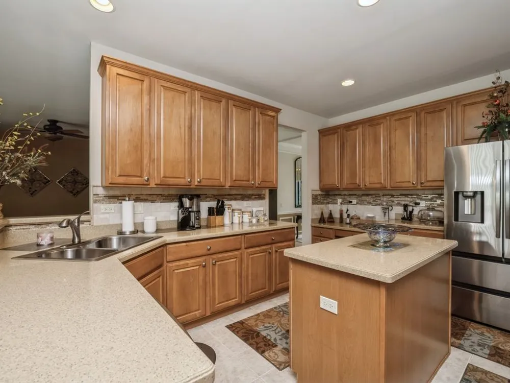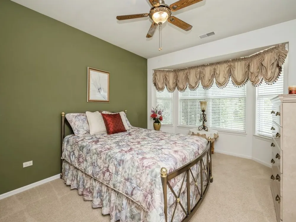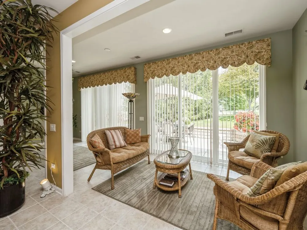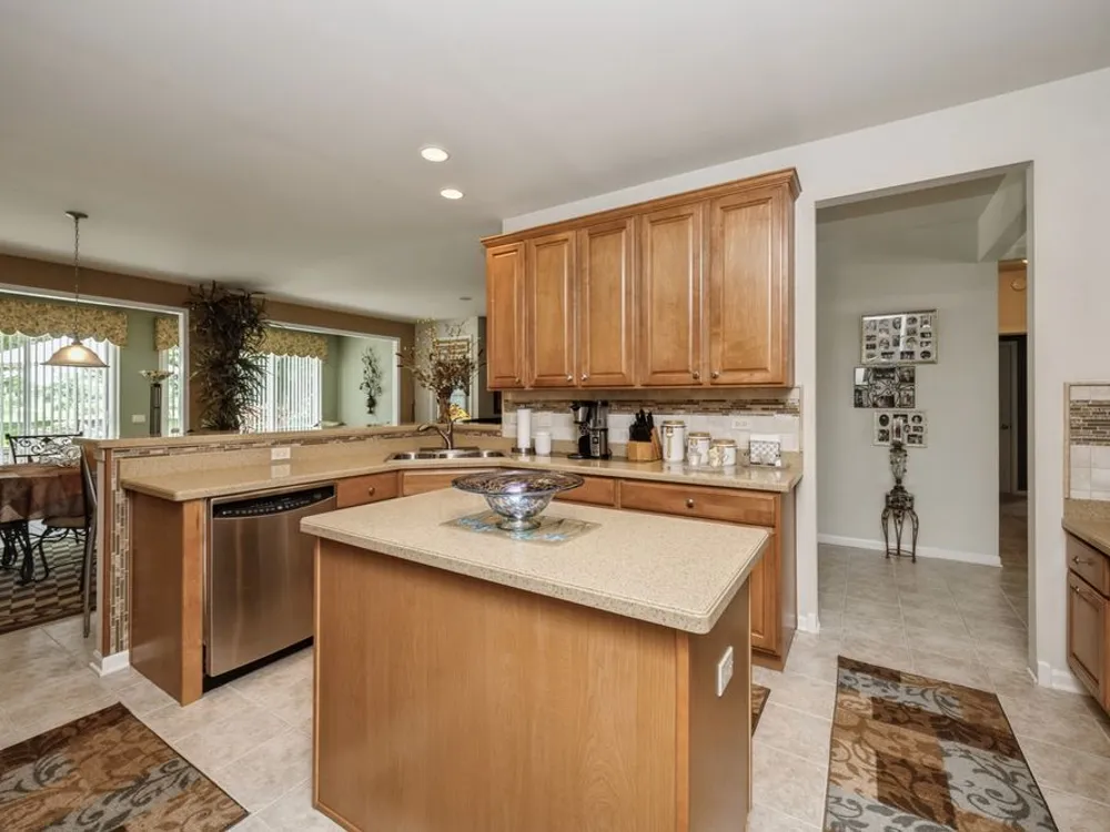 Welcome to this stunning Buckingham II model in the desirable Wildflower Estates neighborhood of Del Webb's Sun City Huntley! Pride of ownership is evident the moment you arrive at this meticulously maintained home, which features an extended brick paver walkway and professional landscaping. The open-concept floor plan is perfect for entertaining. The gourmet kitchen is a chef's dream, featuring GE Profile appliances, a spacious snack bar, and a large eating area. Filled with natural light, the beautiful garden room offers a peaceful retreat. The home offers three bedrooms and three full baths. The primary bedroom is a true sanctuary with a large bay window and a luxurious en-suite bathroom. Enjoy the privacy of having no neighbors directly behind you and take in the lovely views of the Whisper Creek Golf Course. The extended three-car garage provides plenty of space for vehicles and storage. Additional features include a fire suppression system and an in-ground lawn irrigation system. Located close to Prairie Lodge, this home offers easy access to the community's incredible amenities. Sun City Huntley is an active adult (55+) community with something for everyone, including a golf course, three pools, two fitness centers, and courts for pickleball, tennis, and bocce ball. You'll also find a wood shop, walking trails, a nature park, numerous clubs, and more. With shopping, restaurants like Jameson's Charhouse, and interstate access just a short drive away, this home provides the perfect blend of luxury, comfort, and convenience.