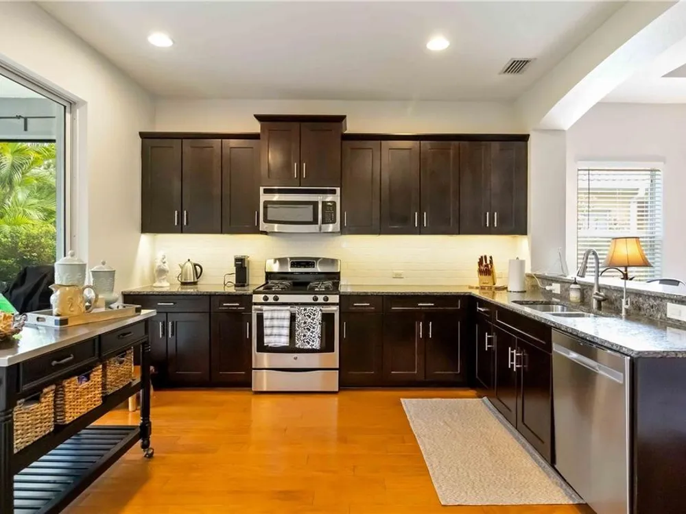 - Open Floorplan, Solid Surface Counters, Solid-Wood Cabinets, Thermostat