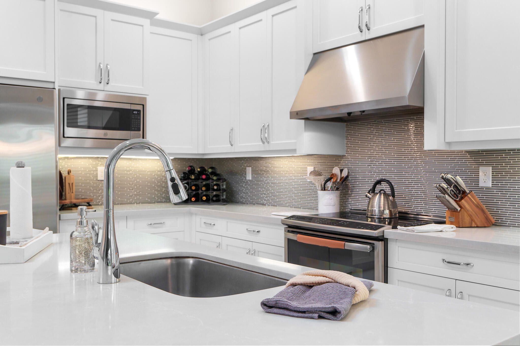 - Electric Water Heater, Cooktop, Dryer, Disposal, Dishwasher, Electric Range, Ice Maker, Microwave, Refrigerator, Vented Exhaust Fan, Water Heater, Washer, Electric Cooktop, Range, Freezer