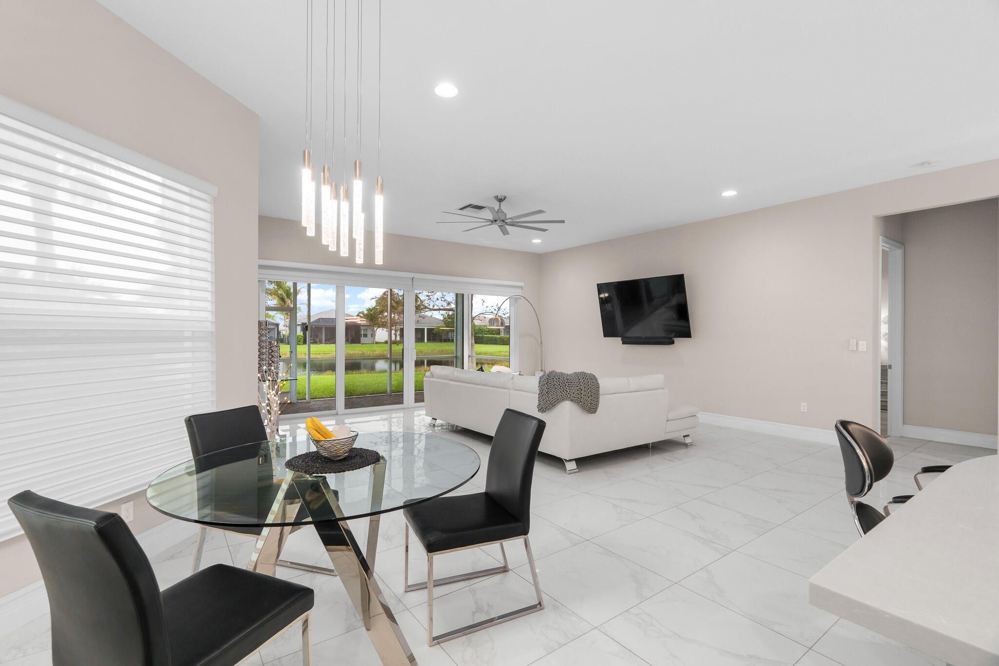 Beautiful Atlantica model in mint, model-like condition! This carpet-free home features a bright neutral white and gray interior with elegant white/gray-vein porcelain tile. Laminate planks in the bedrooms and den. The versatile den can serve as an office or additional bedroom. Every closet includes custom built-ins for maximum storage and organization. Enjoy stunning western sunset views and the peace of mind of all impact glass. The kitchen offers a breakfast area, breakfast bar, upgraded pantry built-ins, and pullouts, upgraded cabinetry throughout the kitchen and bathrooms. Brand-new designer lighting fixtures add a modern touch. Resort-style amenities include tennis, pickle ball, pool, fitness center, and a full-service café/bar with an on-site social director. Includes garage fridge , Cameras, EV Charger in garage. See Capitol Contribution