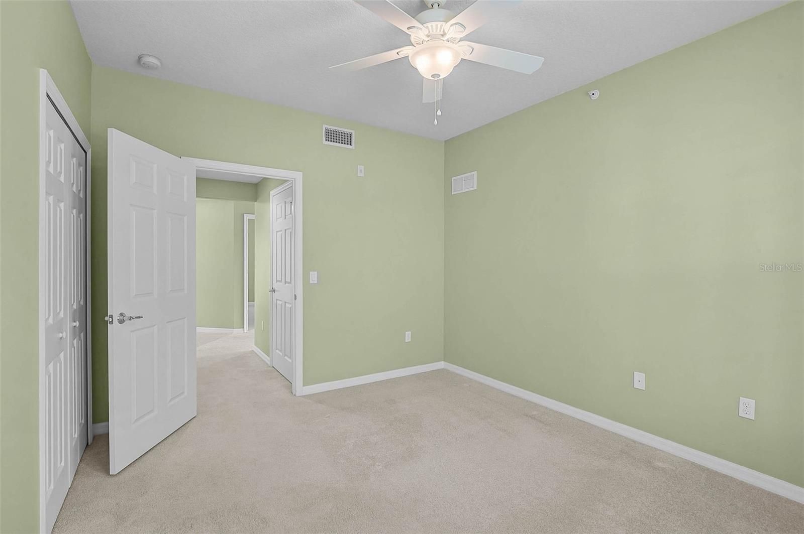 - Ceiling Fan(s), Eat-in Kitchen, Open Floorplan, Main Level Primary, Split Bedrooms, Stone Counters, Thermostat, Walk-In Closet(s), Window Treatments
