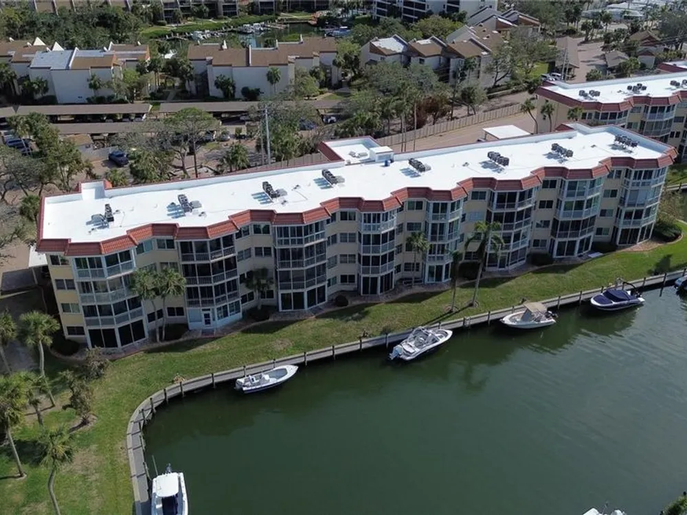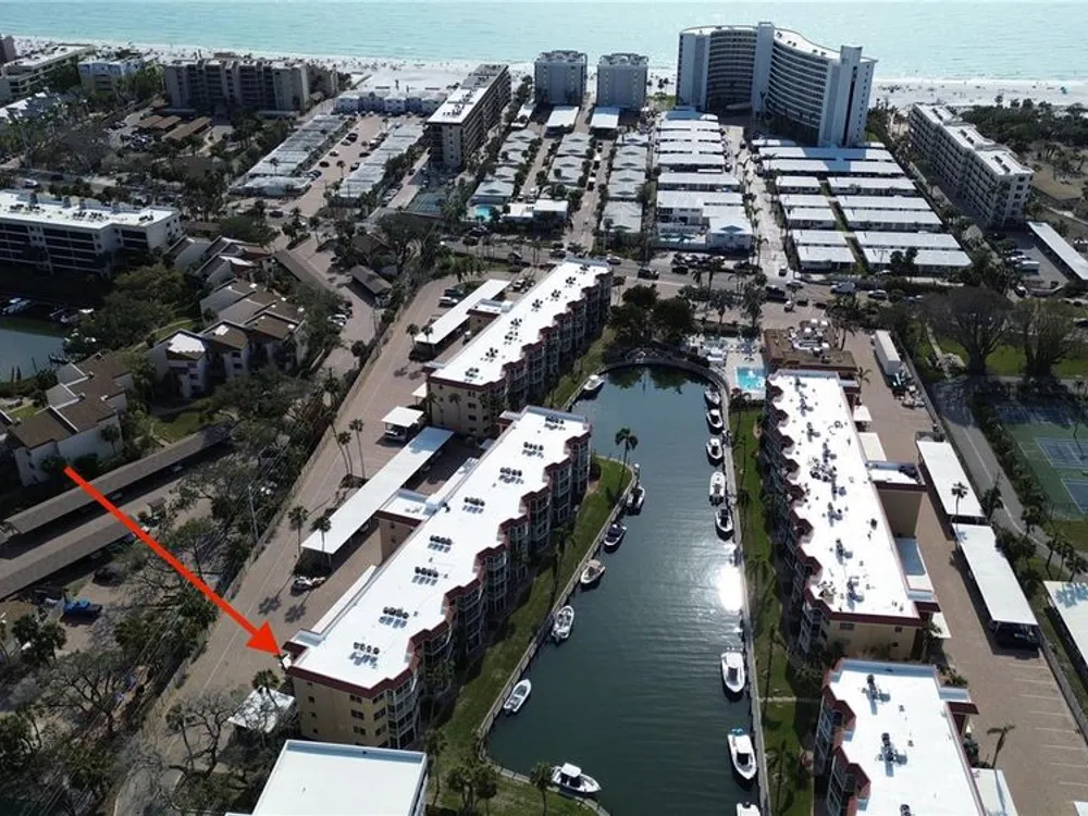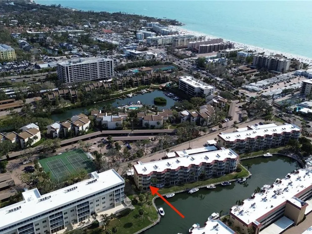 This appealing corner residence located on the second level in the Albacore Building inside SIESTA HARBOR offers the convenience of a walk-up or elevator access. This home boasts a large covered balcony showcasing stunning canal views and beautiful landscaping. Community docks are available on a first come first serve basis; accommodating boats up to 30 ft. Deep water canal with direct access to the Intracoastal. Boating is not complicated when you can dock behind your residence! Natural light pours into the combined dining and living area from the numerous extra windows being a corner unit. The active clubhouse and vibrant over 55 community add to the appeal of Siesta Harbor. Residents enjoy a heated pool, outdoor spa, indoor sauna, fitness room, shuffleboard court, renovated clubhouse featuring a full kitchen, and outdoor barbeque area. Residents also have a dock/fishing pier on site. Residents also enjoy private beach access directly across the street! This home features tile and luxury plank flooring throughout and comes turn-key, fully furnished. Just bring your bathing suit and start enjoying the island lifestyle. Additionally, you have the option to rent it out on a monthly basis when not in use. HOA fees cover the building exterior, cable, escrow reserves fund, fidelity bond, flood insurance, ground maintenance, recreational facilities, trash removal and water/sewer.