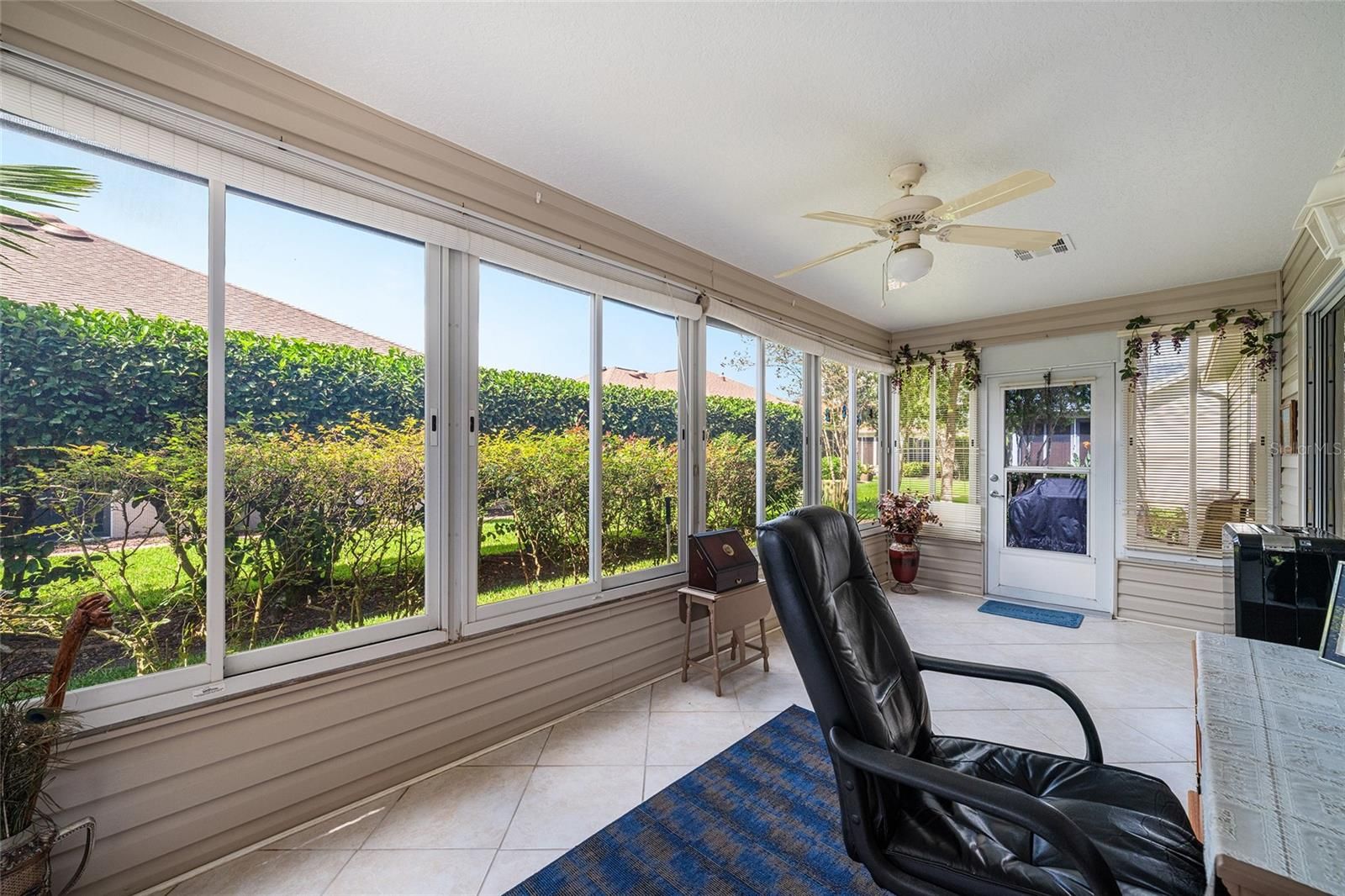 Discover this well maintained home in the highly desirable Village of Glenbrook. Located just minutes from Polo Fields, GLENVIEW Championship Golf Course, recreation, shopping (NEW COSTCO) and dining. Convenience meets comfort in this beautifully appointed residence. Curb appeal shines with painted driveway & walkway, enhanced landscaping, gutters and 2021 ROOF. Enter through a Beveled Glass door into an open floorplan featuring volume ceilings, stylish flooring (NO CARPET) and tile in all wet areas. The kitchen offers ample cabinet space with pullouts, newer STAINLESS appliances w/GAS stove, granite countertops, LIVE EDGE pass through window and a cozy breakfast nook for the perfect casual dining experience. The spacious primary suite is thoughtfully enhanced with a custom closet organizer. The en-suite bathroom features dual porcelain sinks, GRANITE countertops, walk-in shower for added comfort and a 2nd WALK IN/STORAGE CLOSET. The guest quarters enjoy privacy with this split floorplan. There are two bedrooms with Guest bathroom (Shower/no tub) separating them. Relax year-round in the enclosed lanai with Tile flooring, privacy shades and private backyard that is the perfect spot for morning coffee or unwinding at the end of the day. Don't miss your opportunity to own a piece of paradise. BOND PAID. ROOF 2021, HVAC 2016.
