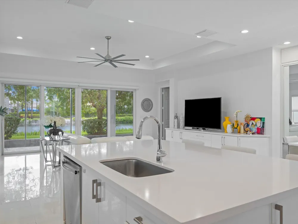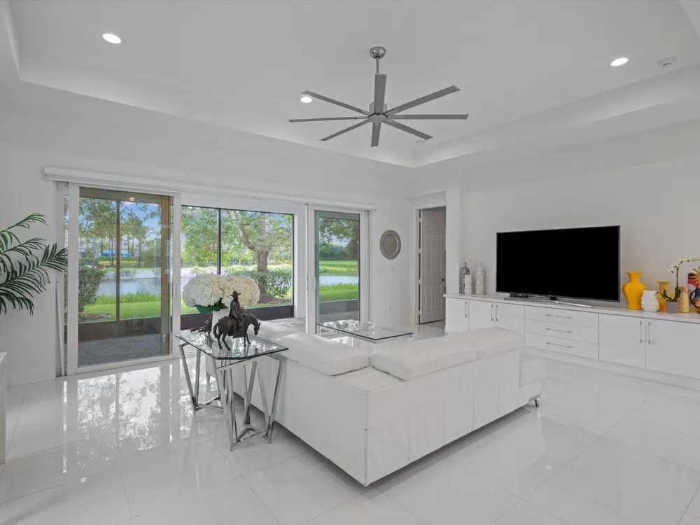 Welcome to Your Luxurious Retreat in a Premier 55+ Community 2 bed 2.5 bath PLUS den - perfect for a private office or cozy reading nook. Designed with an open-concept layout, this home offers seamless flow and modern finishes throughout, featuring tile flooring in every room - no carpet to maintain. Sophisticated Split Bedroom Design -Ideal for privacy and comfort. Spacious Primary Suite Generous his and her closet space and a luxurious en-suite bath. Expansive Laundry Room - Equipped with a laundry sink and abundant storage Impact Windows Throughout - Offering security and peace of mind Screened Lanai - Overlooking a serene lake with no back neighbors, perfect for morning coffee or evening relaxatio