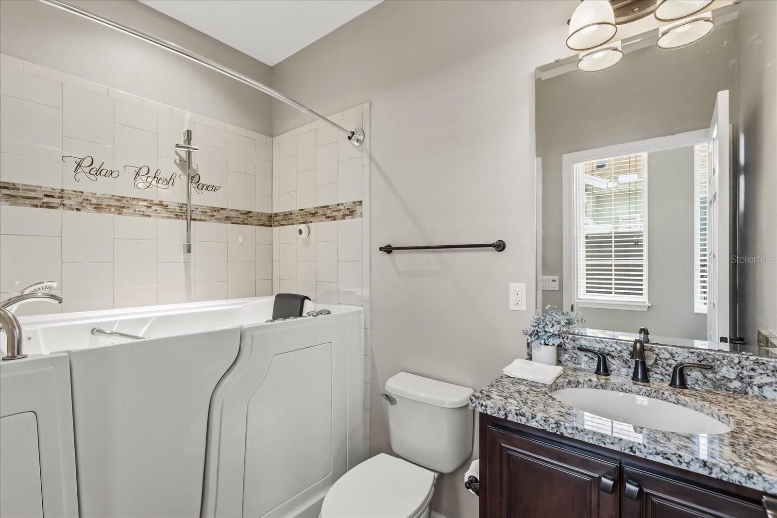 Welcome to an exceptional 2 bedroom, 2 bathroom residence within the prestigious, guard-gated community of Trilogy, where refined living meets resort-style elegance. Perfectly positioned on a premium homesite overlooking the tranquil waters of Schoolhouse Lake, this meticulously maintained home offers a rare blend of sophistication, privacy, and modern efficiency. From the moment you arrive, you’re greeted by lush, professionally curated landscaping, tree-lined streets, and an inviting streetscape that sets the tone for the lifestyle within. Inside, a thoughtfully designed open-concept floor plan unfolds with effortless flow, ideal for both intimate living and elegant entertaining. At the heart of the home, the upgraded chef’s kitchen showcases granite countertops, solid wood cabinetry, a central island, and a full suite of appliances—perfectly blending style and functionality. The spacious primary suite serves as a private retreat, featuring a spa-inspired ensuite bath with dual vanities, a walk-in shower with built-in bench, a private water closet, and an expansive walk-in closet. A state-of-the-art walk-in tub further enhances comfort and accessibility. Step outside to your own private sanctuary—an exquisitely designed outdoor living space complete with extensive hardscaping, a screened and covered lanai, and electronic SunSetter shades equipped with wind sensors for effortless convenience. Enjoy breathtaking, unobstructed lake views with no rear neighbors, all within a fully fenced setting ideal for both privacy and pets. This residence is as efficient as it is beautiful, featuring a fully paid-off Tesla solar system, natural gas, and dual-pane Low-E windows for optimal energy performance. A two-car tandem garage offers additional flexibility for storage, hobbies, or workspace. Living in Trilogy means embracing a lifestyle unlike any other. Residents enjoy maintenance-free living with included high-speed internet, cable, security monitoring, and full lawn care. At the center of the community is the magnificent 57,000-square-foot Magnolia House—a vibrant social hub offering a private restaurant and bar with live entertainment, resort-style indoor and outdoor pools, a state-of-the-art fitness center, and an array of amenities including tennis, pickleball, bocce, billiards, and even a golf simulator. Creative spaces, clubs, and a grand event center with professional staging complete the experience. Ideally located just 45 minutes from Orlando’s world-renowned attractions, including Disney and Universal, and approximately 90 minutes from Florida’s pristine beaches and Port Canaveral, this home offers both tranquility and accessibility. This is more than a home—it is a lifestyle defined by luxury, connection, and effortless living. Welcome to Trilogy. Live exceptionally.