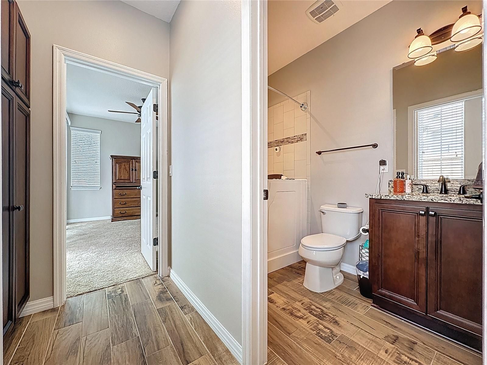 - Ceiling Fan(s), Kitchen/Family Room Combo, Open Floorplan, Main Level Primary, Split Bedrooms, Stone Counters, Thermostat, Walk-In Closet(s), Window Treatments