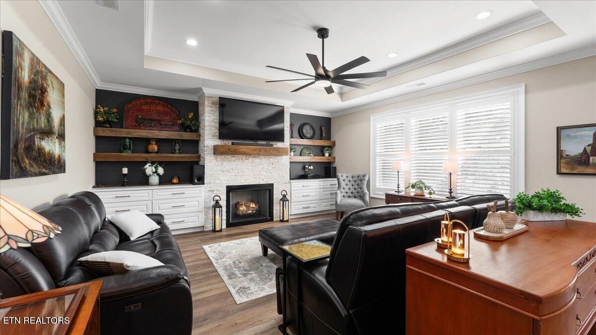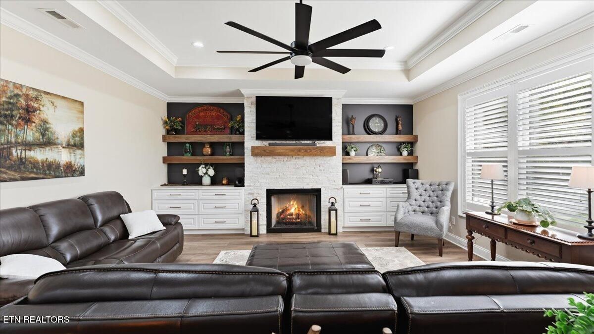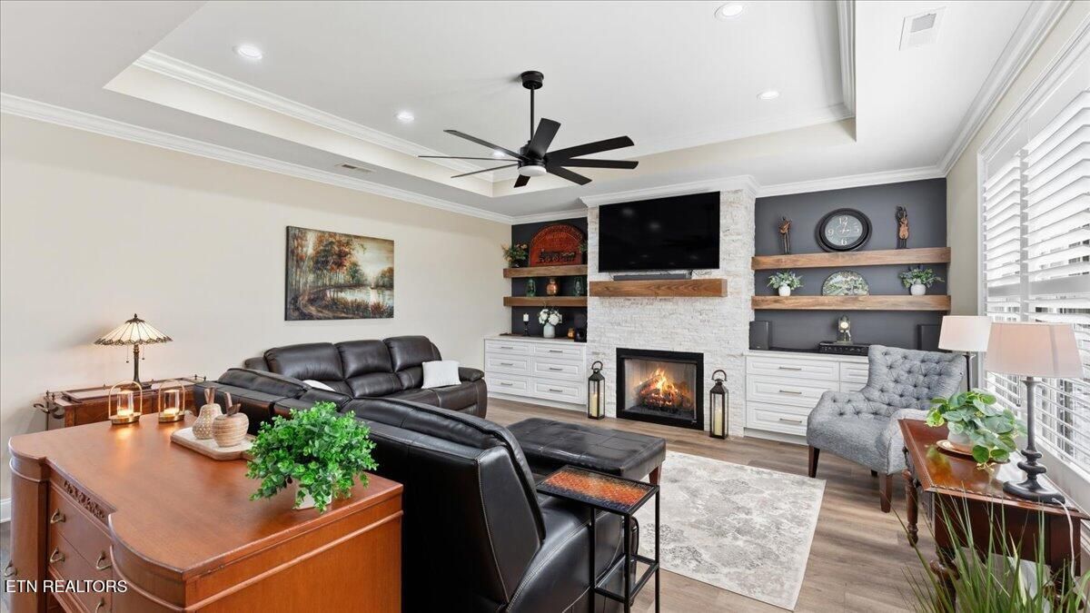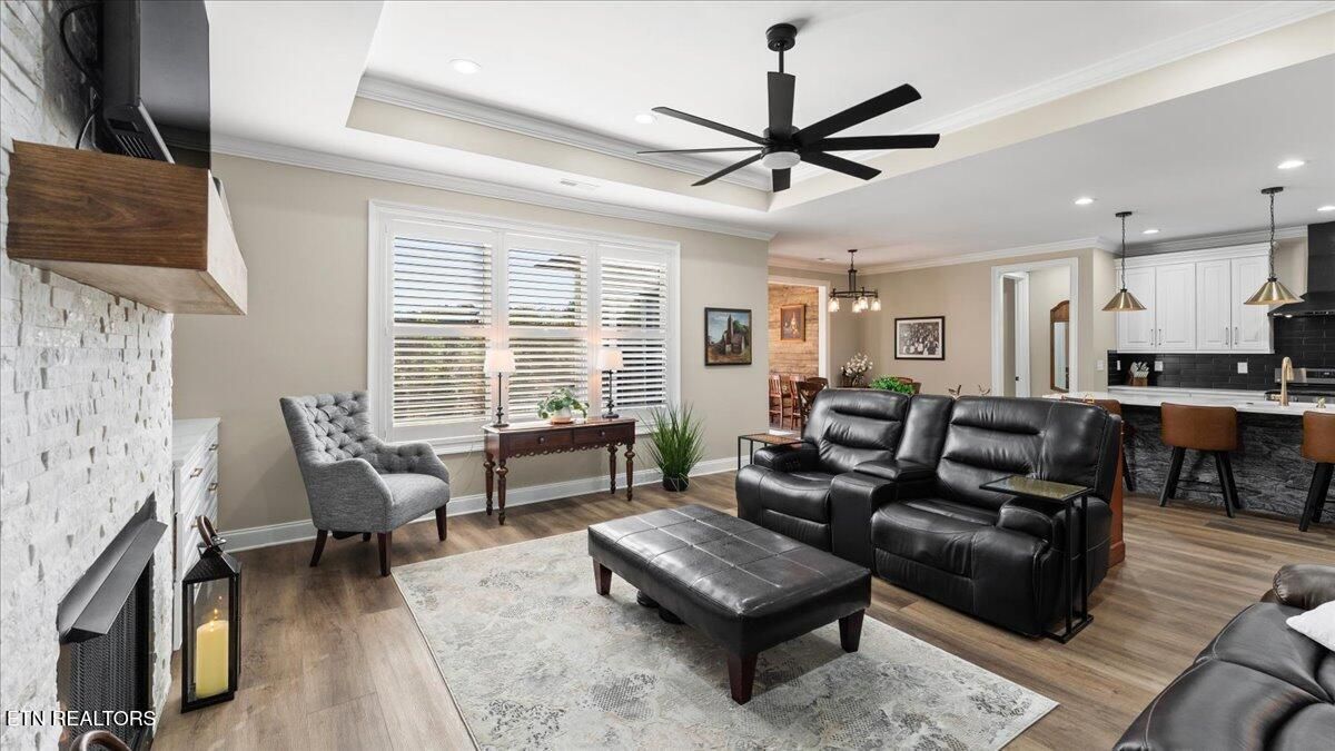 Hurry and schedule your tour of this amazing home, where you'll find yourself saying words like stunning, exceptional, gorgeous, and extraordinary the moment you walk through the door. Built in 2023 and offering more than 2400 sq.ft., this home is filled with high-quality finishes and fabulous upgrades throughout. As you enter, you'll immediately appreciate the stunning open floor plan featuring a spectacular chef's kitchen with a 10' quartz waterfall island, an abundance of custom cabinetry, high-end fingerprint-resistant stainless steel appliances, a gas range, and a refrigerator with both regular and craft ice. Just off the kitchen, the spacious family room showcases a fabulous stone fireplace that creates a warm and inviting space for guests and makes entertaining effortless. Also, adjacent to the kitchen is the gorgeous four-season room, highlighted by a wood shiplap wall and custom 11-foot exotic mahogany countertop - perfect for enjoying your morning coffee or an evening cocktail. The main level also features three spacious bedrooms, including the primary suite with a large walk-in closet and a luxurious en-suite bath offering a spa-like feel with a soaking tub, large walk-in shower, and beautiful quartz vanity with dual sinks. The split-bedroom layout provides two comfortable guest bedrooms at the front of the home, along with a stunning guest bath, giving visitors plenty of privacy during their stay. Upstairs, you'll find a fantastic bonus room that can serve as a guest suite, craft room, exercise area, family space, office, or more - along with another full bathroom for added convenience. All of this comes with an oversized two car garage and is perfectly situated on a specious level lot with lush professional landscaping and plenty of privacy. Recent upgrades include custom blinds, Norman - custom plantation shutters in the family room and primary bedroom, fresh paint, new cabinetry hardware, upgraded lighting, custom stone patio and so much more. Don't miss out and schedule your showing today!