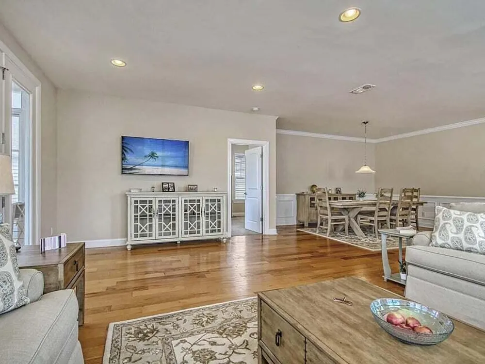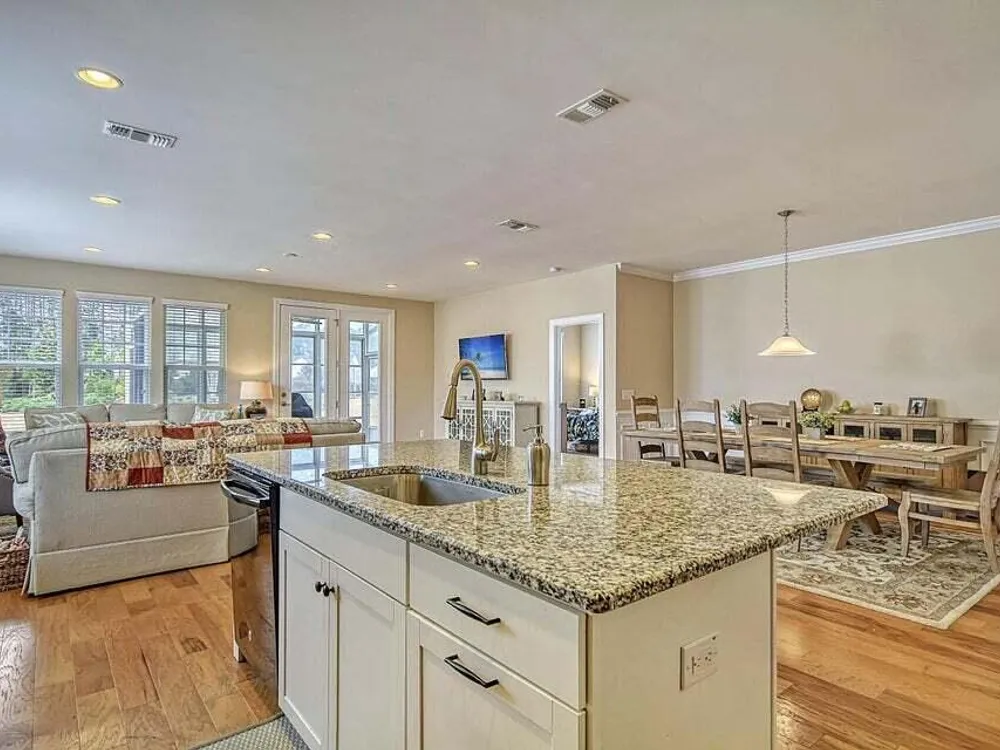 Experience the perfect blend of style, comfort, and lakefront living at Four Seasons at the Lakes of Cane Bay! This 1,553-square-foot, move-in-ready home is designed to impress with its thoughtful upgrades and inviting charm.Step inside to discover beautiful hardwood flooring that flows through the open layout, creating a warm and welcoming atmosphere. The gourmet kitchen is a chef's dream, featuring a gas cooktop, double wall oven, built-in microwave, granite island, upgraded cabinets, tile backsplash, and upgraded tile flooring.The Great Room boasts a recessed lighting package and a convenient floor outlet, making it perfect for entertaining or relaxing. Upgraded paint throughout enhances the home's sophisticated appeal.Enjoy seamless indoor-outdoor living with a concrete rear patio, perfect for morning coffee or evening gatherings. Additional features include blinds throughout, gutters, and much more to make this home truly move-in ready. Nestled in the sought-after Four Seasons Community, this property offers a lifestyle enriched by lakeside amenities and natural beauty. Schedule your showing today and see why this home is a must-see!