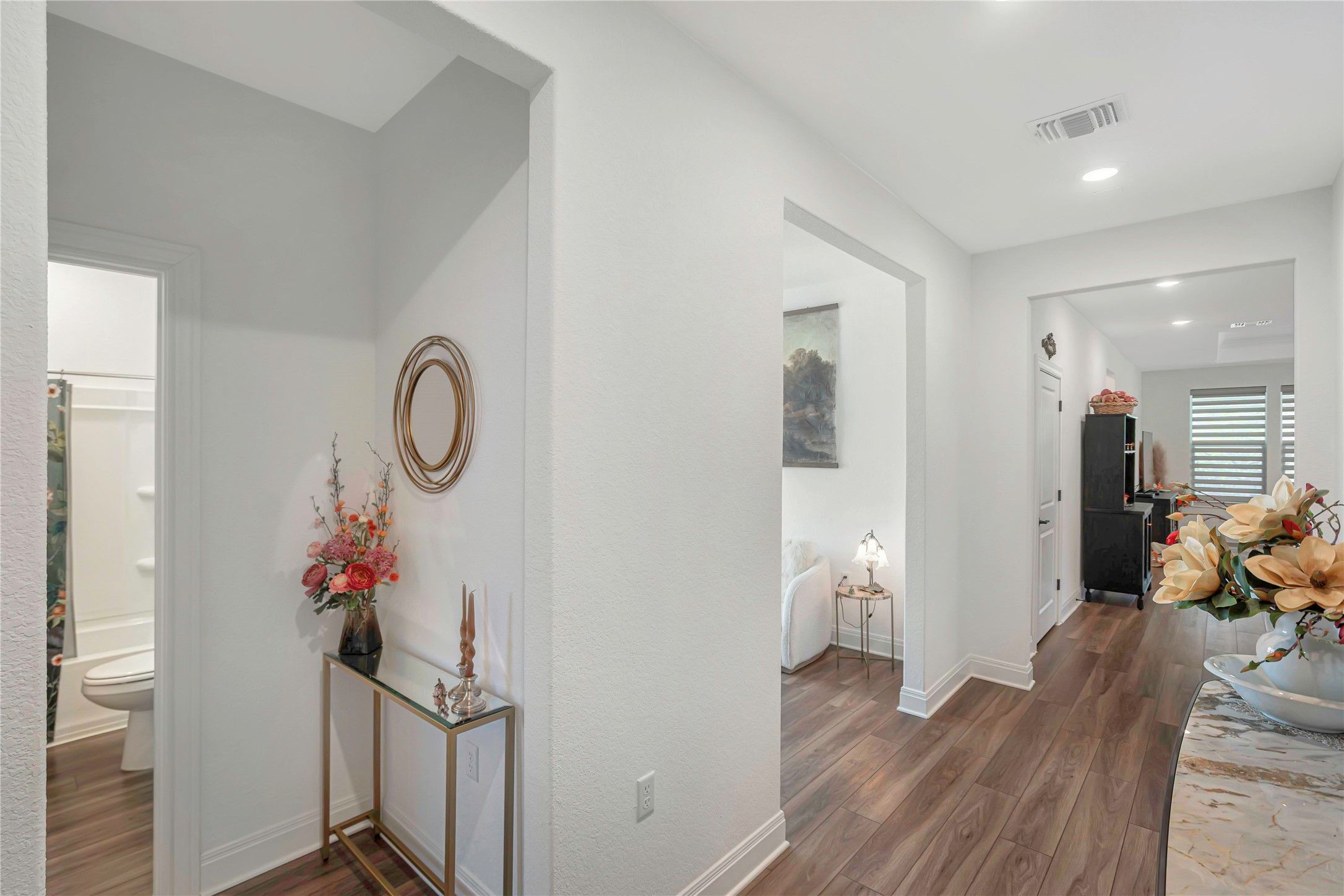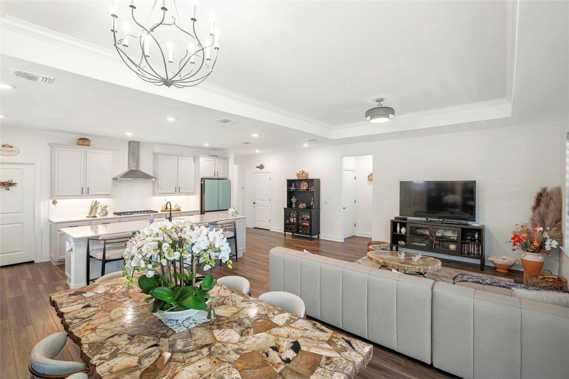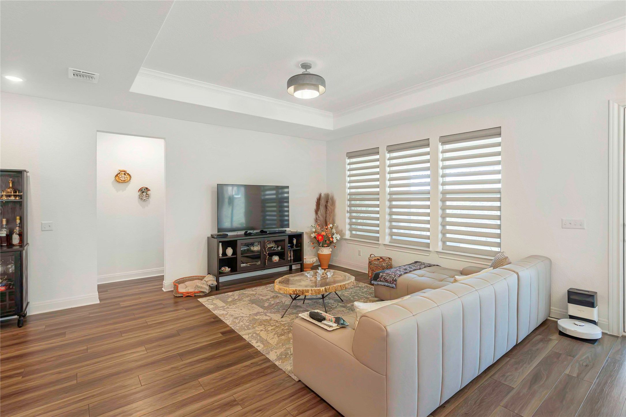 - Crown Molding, Double Vanity, High Ceilings, Kitchen Island, Main Level Primary, NoInteriorSteps, Open Floorplan, Pantry, Study, Walk-In Closet(s)