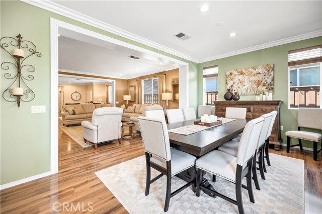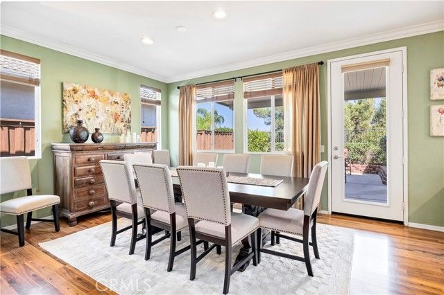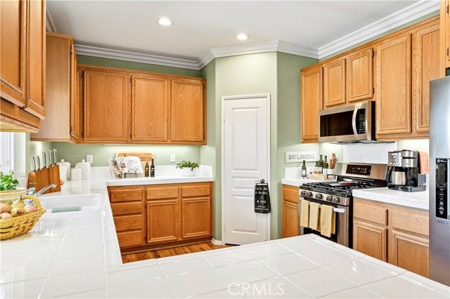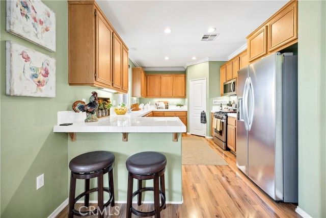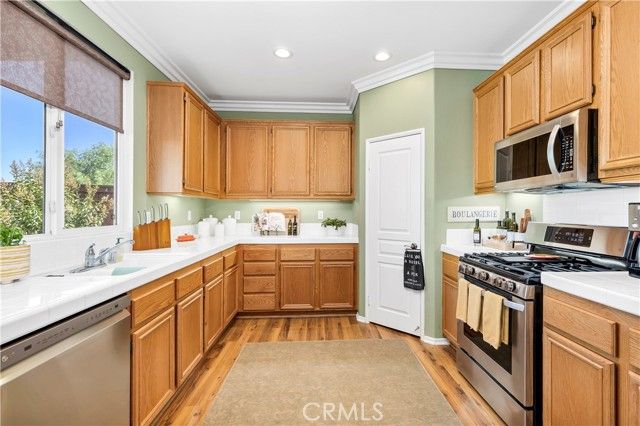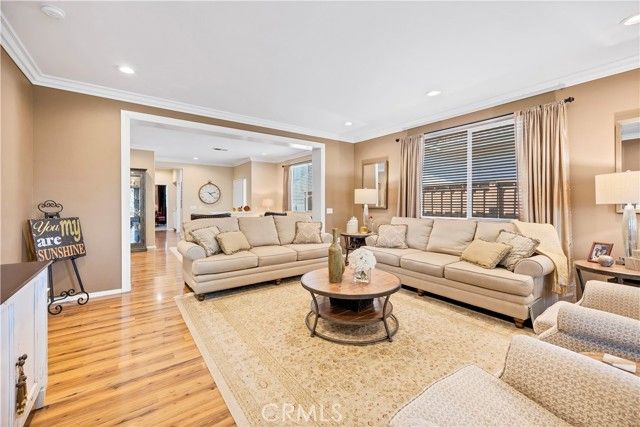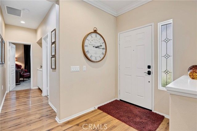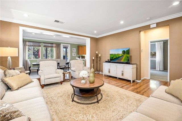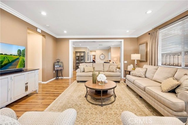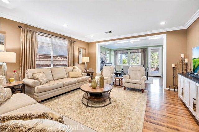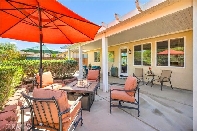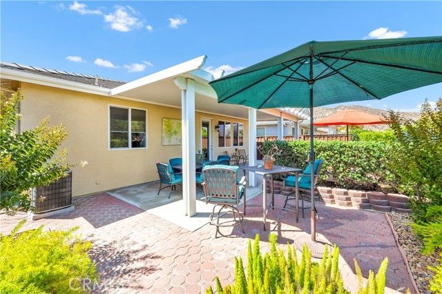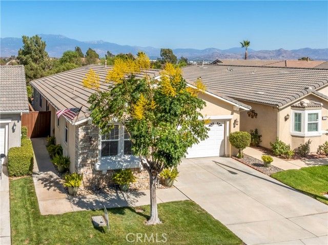 Welcome to Fabulous 55+ Hemet Four Seasons, Guard-Gated Golf Course Community! Gorgeous Laminate Flooring in this 1761sf, two bed, two full bath home. Crown Molding in Living Room, Dining Room and Kitchen. Large Private backyard with Aluma- Wood covered patio....... this Fabulous entertaining area includes Patio Furniture that stays with the home! The Beautiful Views are Free! All Stainless Steel Appliances, including Refrigerator. Large walk-in pantry in kitchen. Custom Interior Paint. Updated canned lights. Whole house fan. Newish A/C blower fan. Ceiling fans in bedrooms. Walk in closet in Master. Updated bathroom light fixtures. Ring Doorbell and Camera included. Much more to see when you visit this home! Call for a private showing! 20,000 sf Lodge includes: Ballroom, Fitness Center, Exercise Room, Beauty Shop, and Movie Theatre, Billiards room, Computer Center, Library, cards and crafts rooms. Outside: Half Size Olympic Pool and Spa, Shuffleboard, pickle ball, bocce ball, walking and biking, tennis, pickle ball and more. Temecula Wine Country nearby. 75 miles to San Diego, 80 miles to Los Angeles, 40 miles to Palm Springs Area.