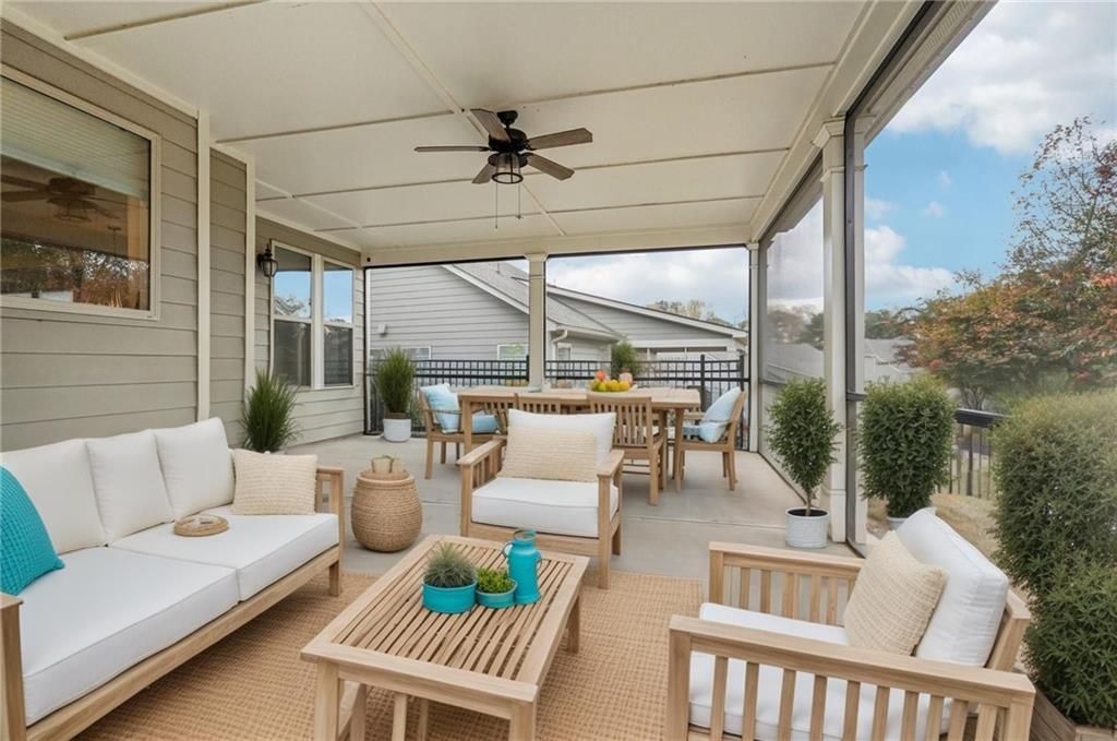 Welcome home to this beautifully updated 3-bedroom, 3-bath residence located in Cresswind at Peachtree City, a premier active adult neighborhood known for exceptional amenities and a vibrant, lifestyle-focused atmosphere. This move-in-ready home features fresh interior paint, an updated kitchen with modern appliances, a built-in china cabinet, and an inviting layout designed for comfort and functionality. The main-level primary suite includes a stepless walk-in shower, while an additional bedroom and full bath offer flexible main-floor living options. Upstairs, a spacious en-suite guest retreat includes a thoughtfully integrated Murphy bed, providing versatility for guests, hobbies, or office use. Enjoy year-round relaxation on the screened-in porch, overlooking quiet surroundings. The epoxied garage floors add a clean, polished finish to the home's practical upgrades. Lifestyle & Location: Living in Cresswind means access to award-winning amenities, including a clubhouse, fitness center, indoor and outdoor pools, pickleball, tennis, trails, and a full calendar of community activities. Beyond Cresswind, residents enjoy the unparalleled lifestyle of Peachtree City-famous for its 110+ miles of golf-cart paths, four golf courses, beautifully maintained parks, and convenient access to the local private airfield (PDK at Falcon Field - KFFC). Whether cruising the community on a golf cart, enjoying lakeside views, or participating in social and recreational activities, life here feels like being part of a year-round, five-star resort. 126 Mulberry Ct delivers the perfect blend of comfort, convenience, and exceptional lifestyle access-all within one of Georgia's most desirable communities.