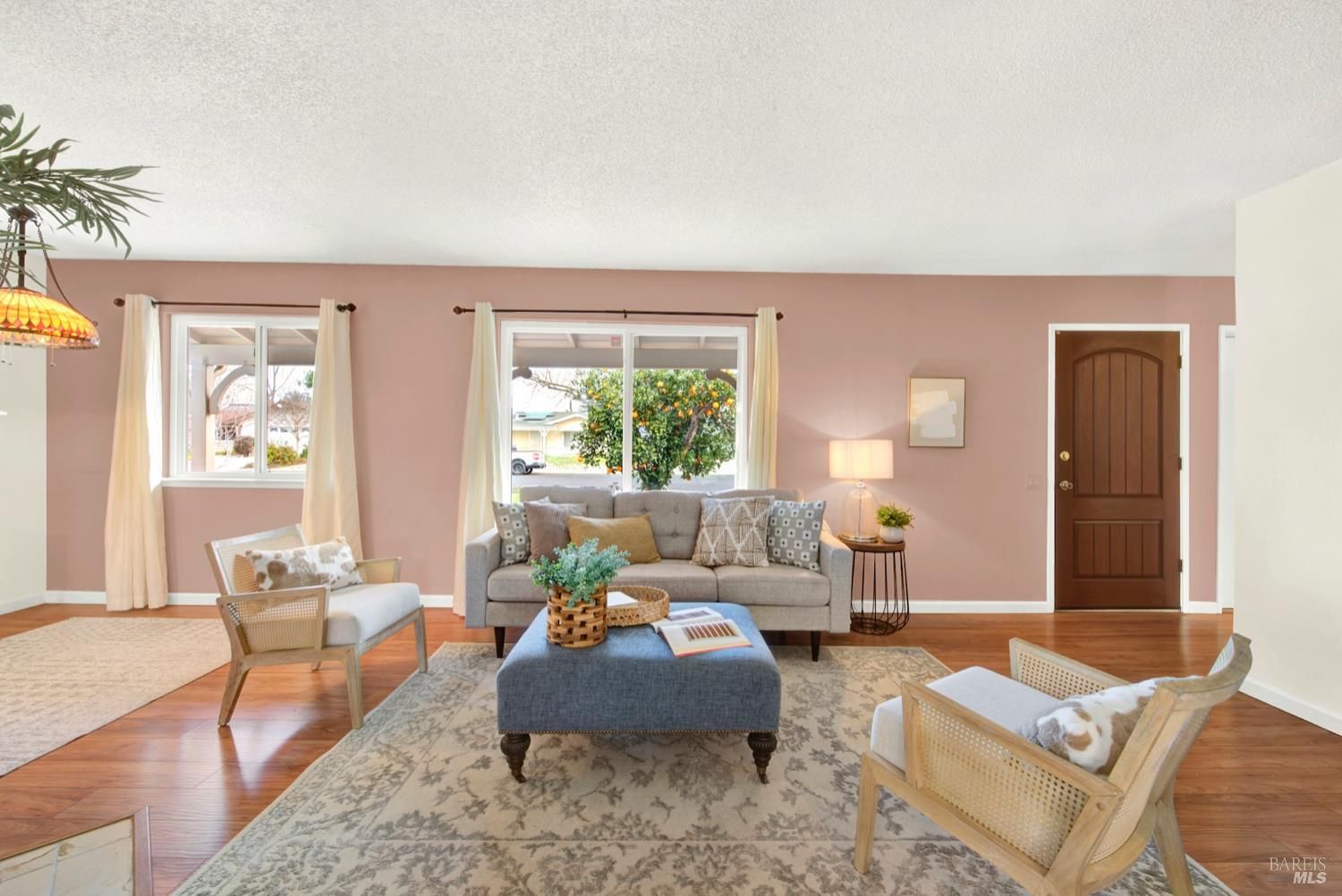 Welcome to this adorable 2-bedroom, 2-bath home in Vacaville's sought-after 55+ Leisure Town community. A cozy, sun-lit living room with a fireplace sets the tone the moment you walk in. The updated kitchen includes abundant storage, granite counters, stainless appliances, an electric range, and a bright eat-in nook, along with a separate dining room. The primary bedroom has an oversized closet and an updated bathroom with tile details and a walk-in shower. Dual-pane windows throughout. Low-maintenance landscaping in the front and back, plus a covered patio and storage shed for convenience. Residents enjoy access to two pools, a hot tub, a newly updated fitness center, clubhouse, bocce ball, lawn bowling, and a variety of community activitiesmaking Leisure Town a wonderful place to call home.
