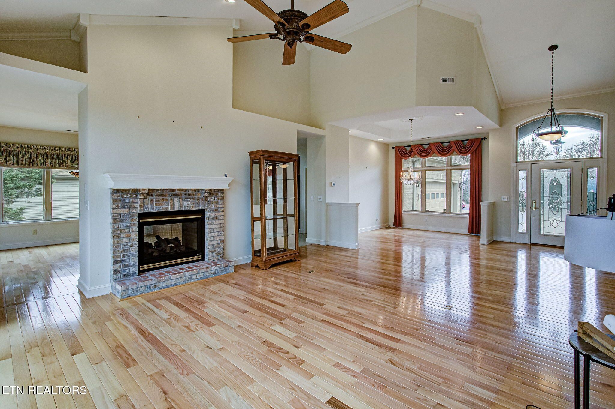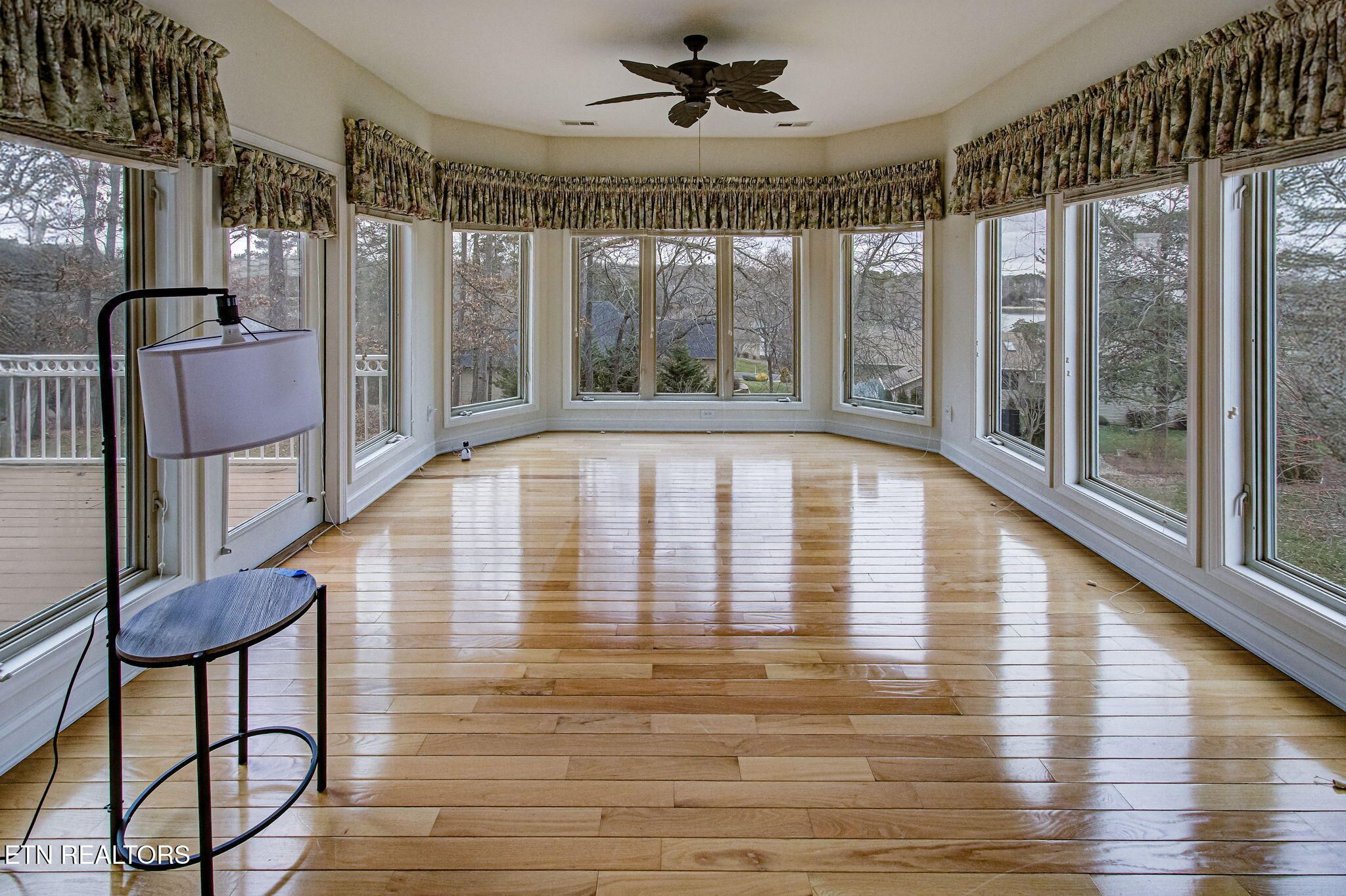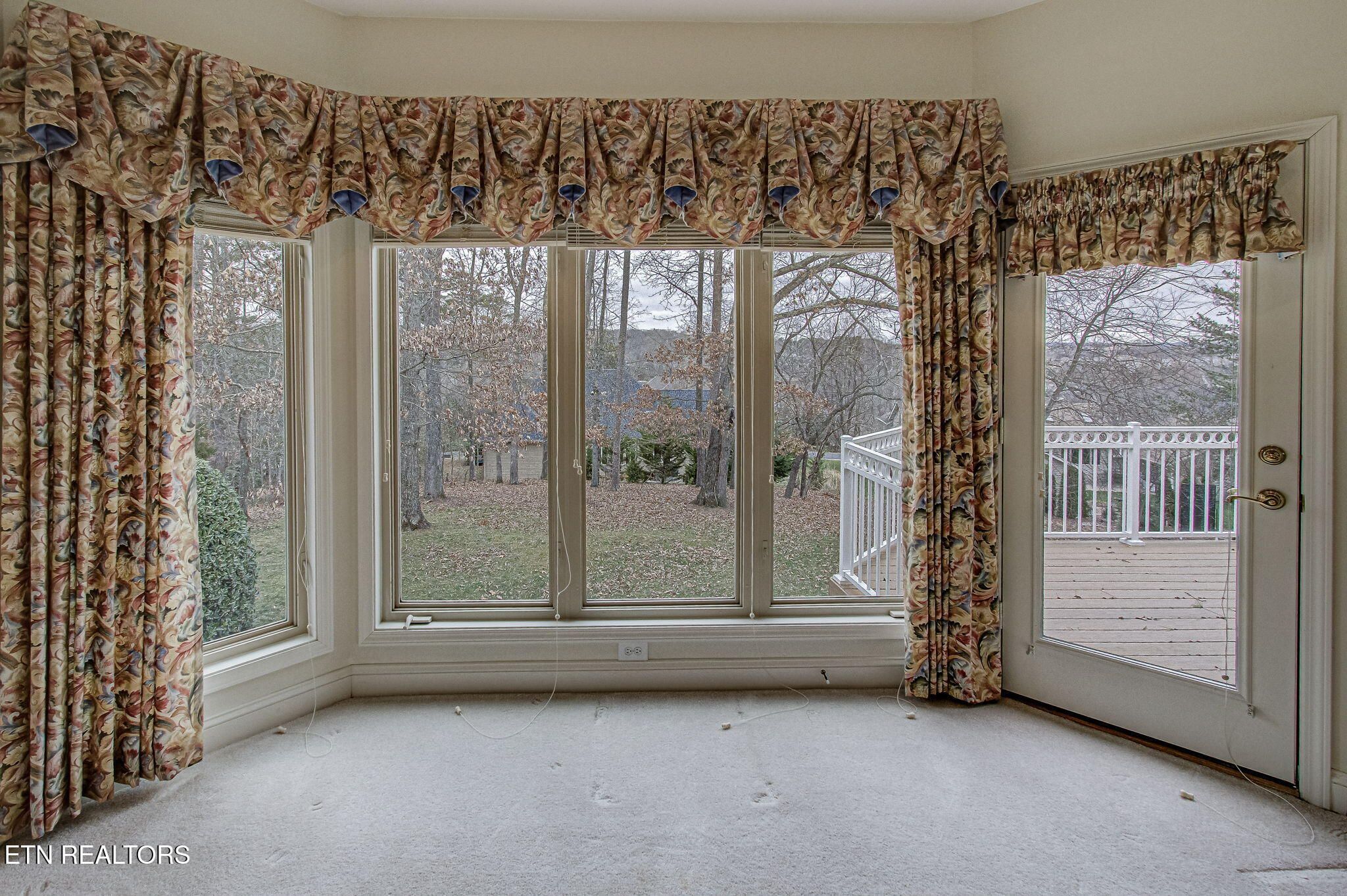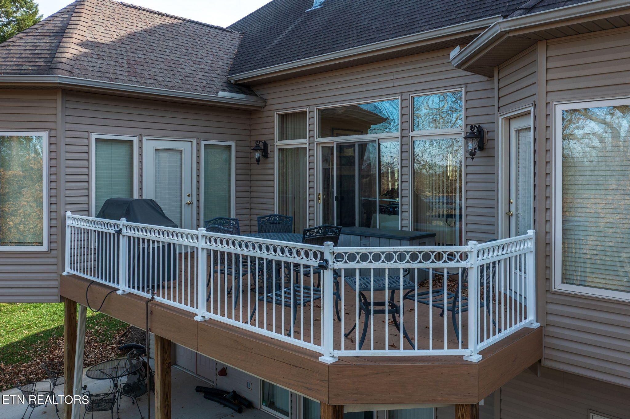 A hidden Gem in Tommotley Greens neighborhood located in the desirable north end of Tellico Village with Lake views and level lot! Close to the new Tanasi Clubhouse. This well-maintained home has a Large Island Kitchen with solid Surface Tops, Lots of Storage and counter space, stainless Steel appliances. Breakfast room with dual sided fireplace. Very Large Sunroom with 3 walls of windows views of the lake in the winter. Large living room has sliding door to the deck, dual sided fireplace has gaslogs. Office on the main as well as powder room. Nice Laundry room with extra storage adjacent to the kitchen. Primary bedroom is large and has access to the deck, large walk in closet and jetted tub two separate vanities and walk-in shower. Lower level has a large family room with a wet bar, two guest bedrooms and lots of storage, in two areas. One has outside access thru double doors. Lower patio has drybelow system.