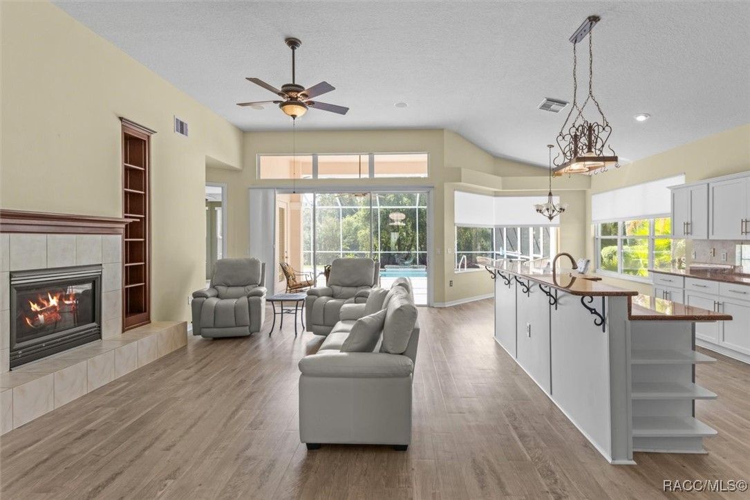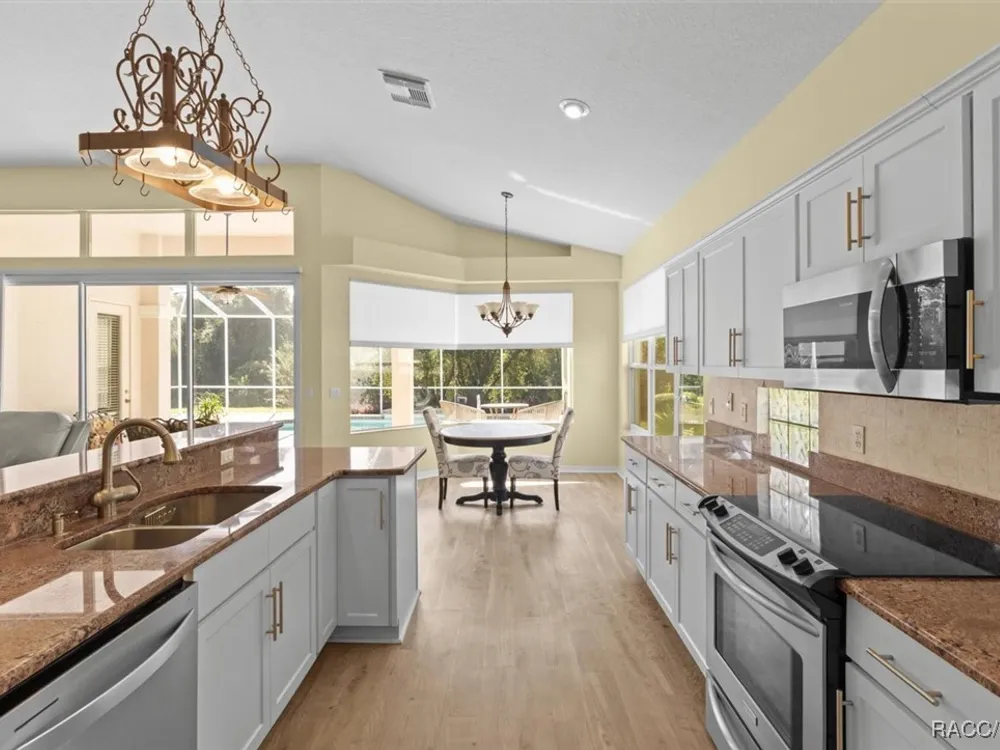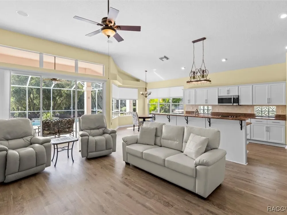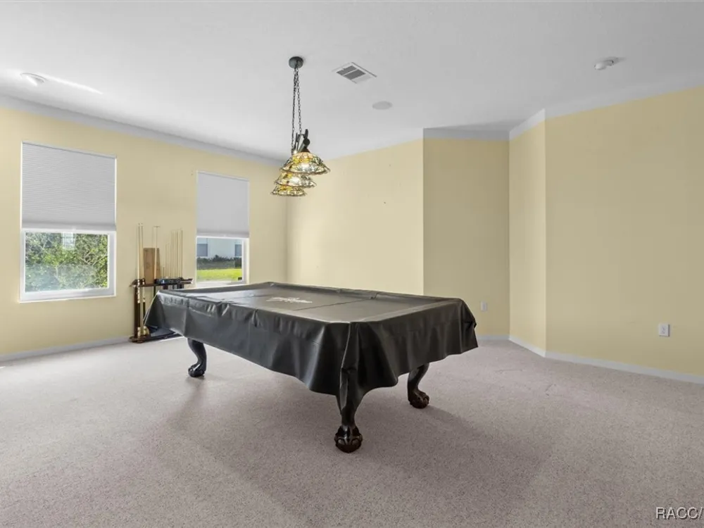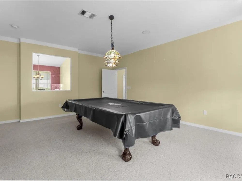 This lovely home has all the expected Citrus Hills Builder features PLUS a unique featured room. Yes, it is large with over 2500+/- sq ft. It has 3 bedrooms including master suite, 2.5 baths, den, living room, formal dining room, kitchen with granite counters, stainless steel appliances, in-ground pool with greenbelt view, tile roof and 2 car garage. Additionally, it has a UNIQUE room that is currently used as Billiards/Pool room with pool table/equipment. You will be the toast of the neighborhood hosting parties on your lanai in your own in-ground pool and billiard parties in your own pool room with table and equipment. If you prefer to use this room as another unique perspective, the table/equipment will be removed. This Terra Vista of Citrus Hills home boast a lifestyle that includes, million dollar gym with many free classes, activity center with entertainment, library, pickle ball courts, tennis courts, Tiki bar, 2 country clubs, community pools and friendly neighborhoods. Come visit this home and see for yourself how truly special it is.