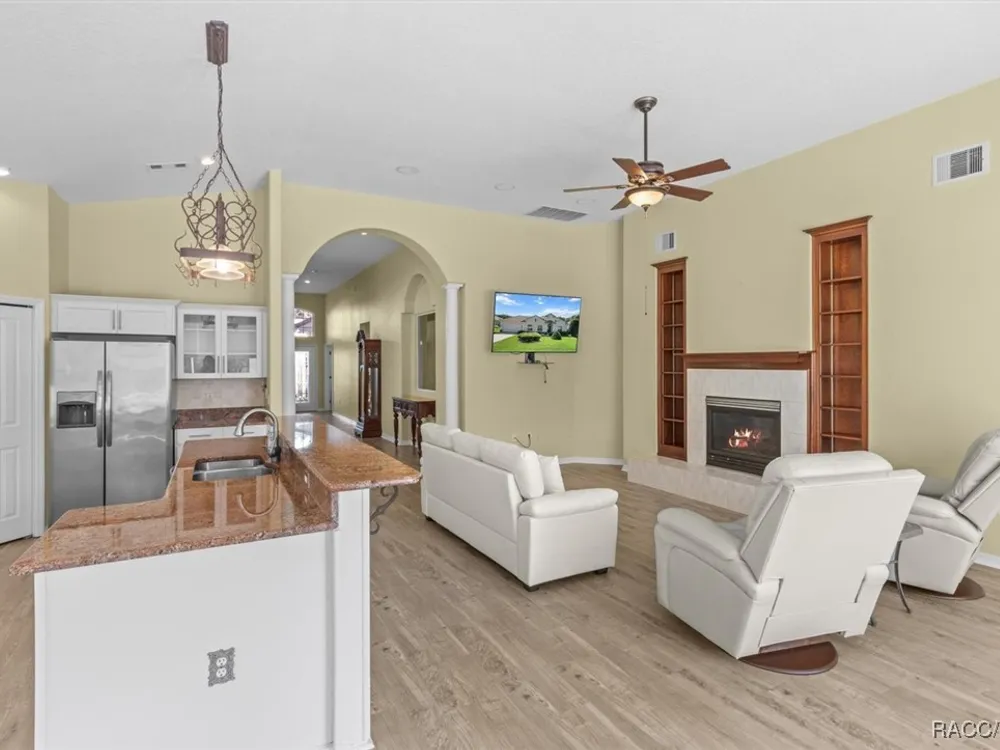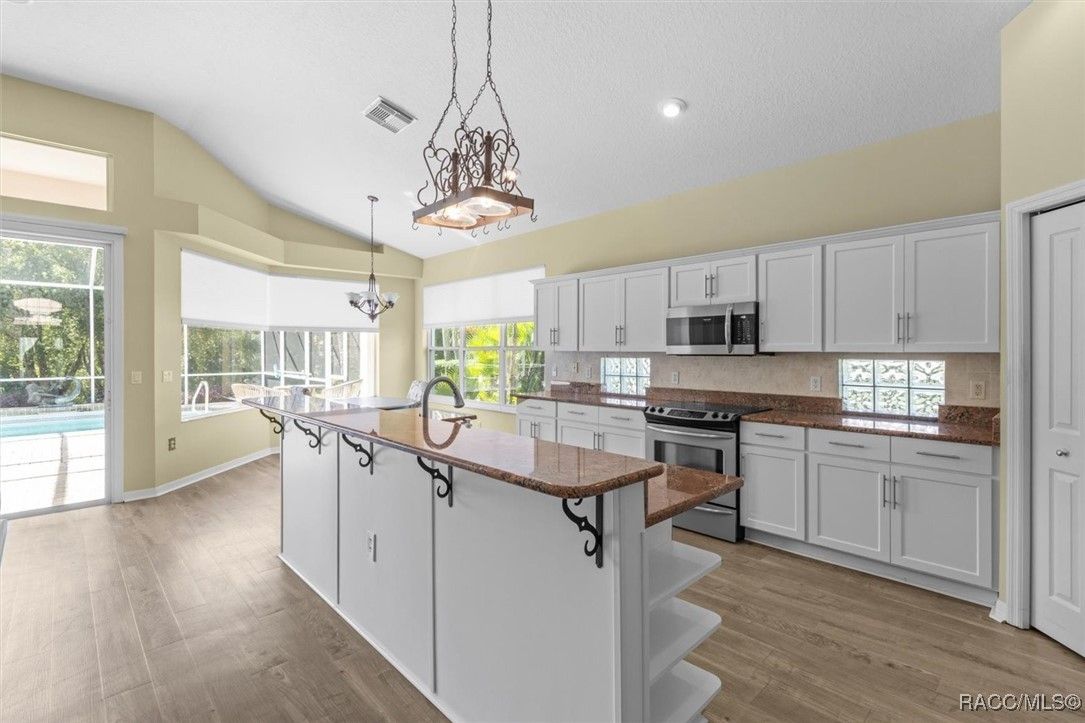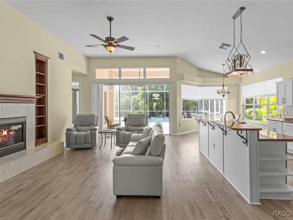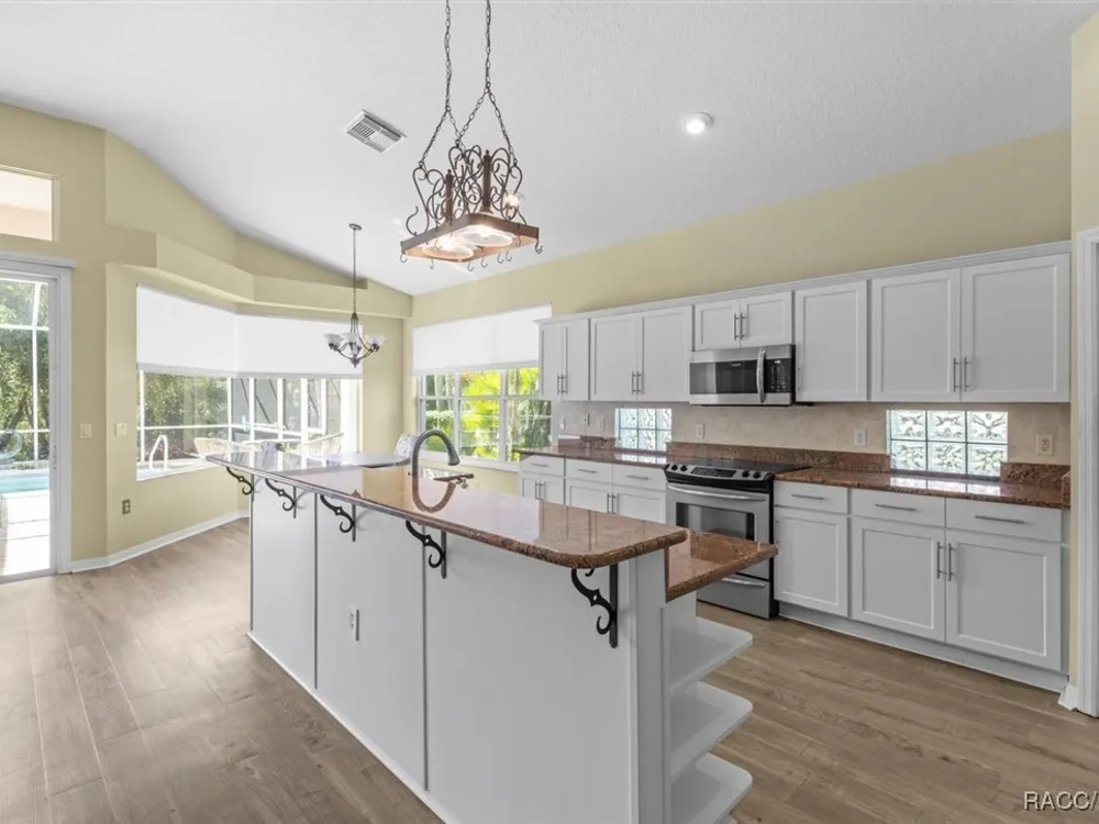 This lovely home has all the expected Citrus Hills Builder features PLUS a unique featured room. Yes, it is large with over 2500+/- sq ft. It has 3 bedrooms including master suite, 2.5 baths, den, living room, formal dining room, kitchen with granite counters, stainless steel appliances, in-ground pool with greenbelt view, tile roof and 2 car garage. Additionally, it has a UNIQUE room that is currently used as Billiards/Pool room with pool table/equipment. You will be the toast of the neighborhood hosting parties on your lanai in your own in-ground pool and billiard parties in your own pool room with table and equipment. If you prefer to use this room as another unique perspective, the table/equipment will be removed. This Terra Vista of Citrus Hills home boast a lifestyle that includes, million dollar gym with many free classes, activity center with entertainment, library, pickle ball courts, tennis courts, Tiki bar, 2 country clubs, community pools and friendly neighborhoods. Come visit this home and see for yourself how truly special it is.
