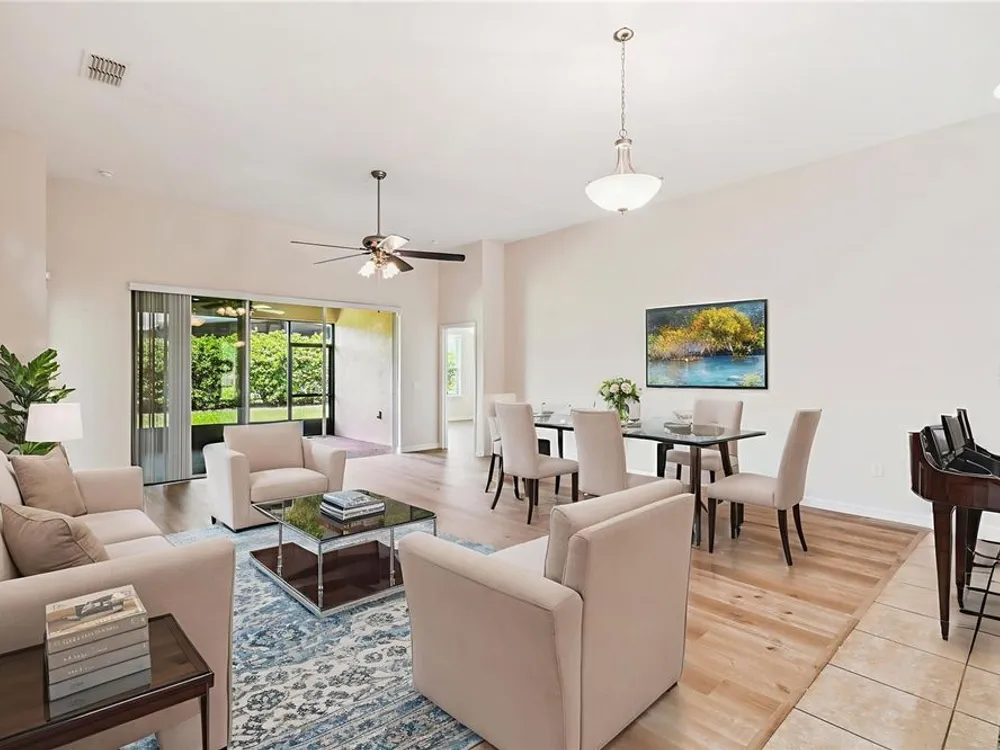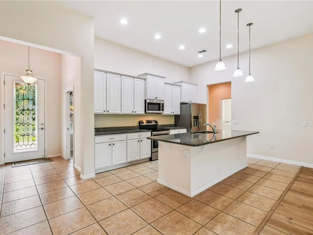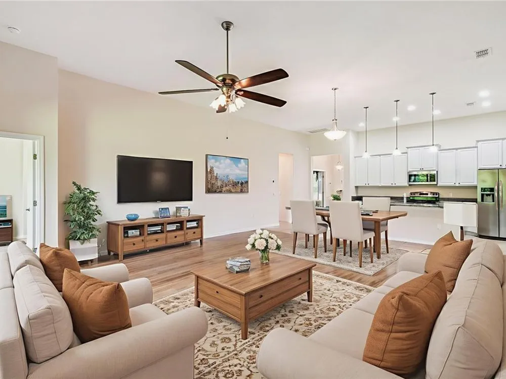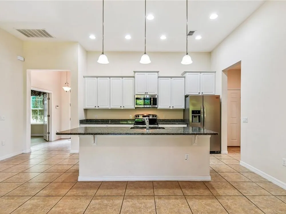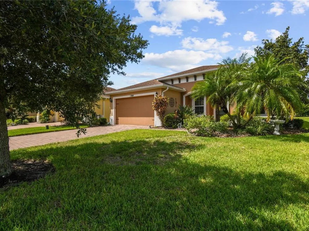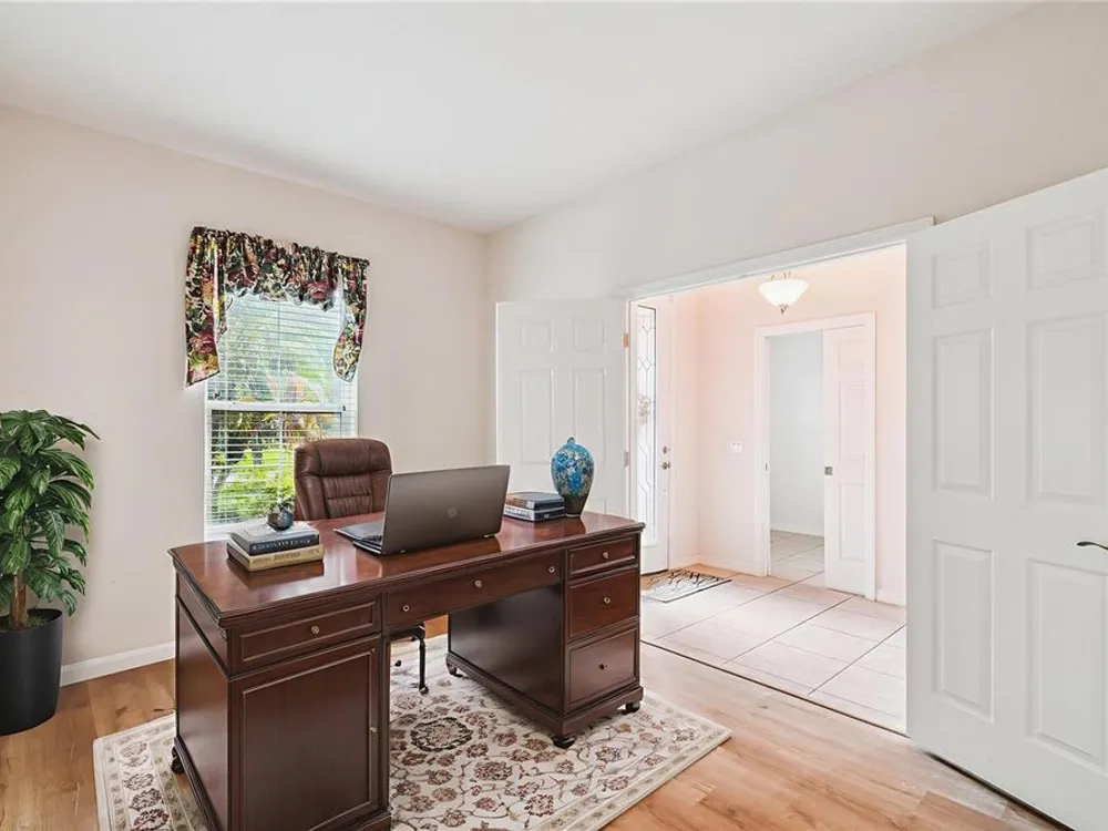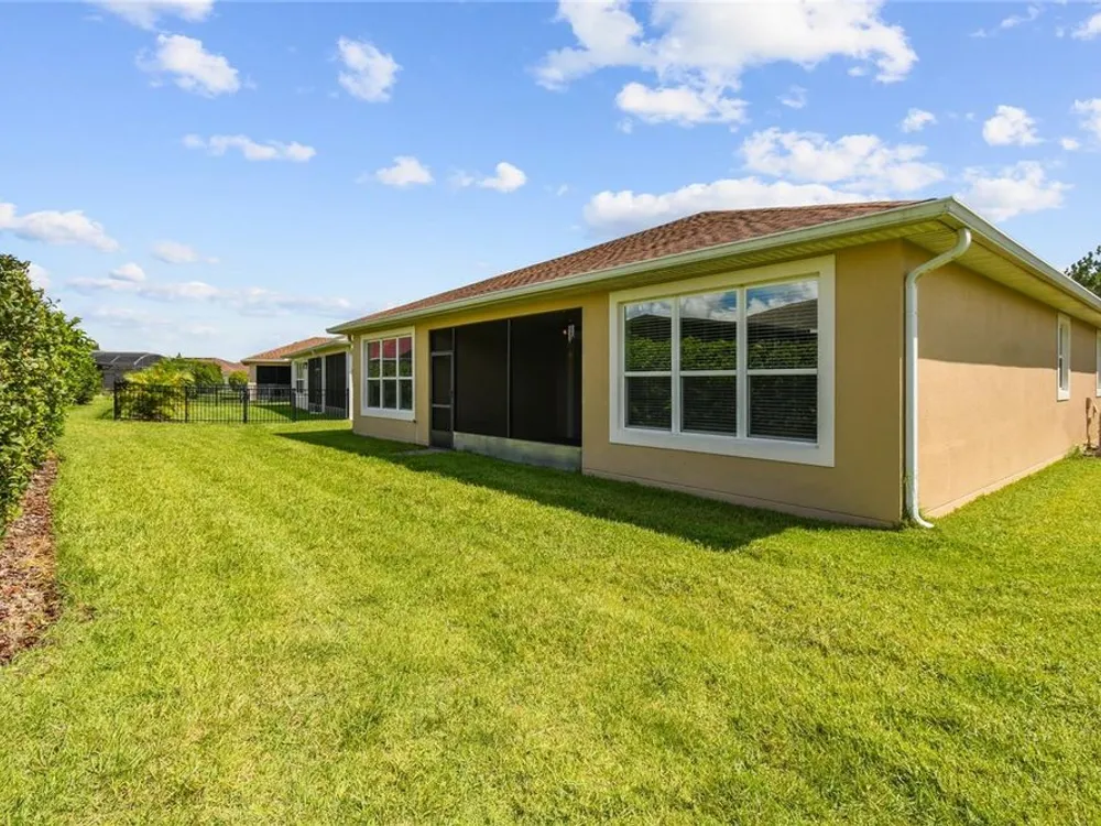 One or more photo(s) has been virtually staged. Beautiful 2014 CALTO model nestled in the sought-after Volare subdivision of Solivita! This spacious, open-concept home offers a thoughtfully designed layout featuring a spacious Great Room/Dining Room combination, TWO PRIMARY SUITES, a Den/Study that can easily serve as a third bedroom and a separate Personal Office or Flex Room—perfect for remote work or hobbies. NEW HVAC installed JULY 2024. NEW LUXURY VINLY PLANK FLOORS installed in July 2025 in the Living Room, Dining Room, all Bedrooms, and the Den, giving the home a fresh, modern feel. Stylish 8’ INTERIOR DOORS and TILE FLOORS in the Kitchen, Pantry, and Bathrooms add to the home’s elegant appeal. The Kitchen is a standout with a large center island, GRANITE COUNTERS, stainless steel appliances, 42” upper cabinets with crown molding, recessed and pendant lighting, and a spacious WALK-IN PANTRY. A beautiful LEADED GLASS FRONT DOOR brings in natural light and enhances the curb appeal. The Great Room features a FLOOR-MOUNTED OUTLET for easy furniture placement. Both PRIMARY SUITES include WALK-IN CLOSETS and private baths with linen closets. Step outside to enjoy the COVERED and SCREENED LANAI—ideal for relaxing or entertaining. The EXTERIOR of the home was PAINTED in 2021. Separate laundry room with Washer and Dryer included in the sale. This vibrant, resort-style community offers something for everyone, with endless opportunities for staying active, making friends, and enjoying life to the fullest—retirement living at its finest! Call today to schedule your private viewing! Solivita's amenities include: - a manicured SOFTBALL diamond & field - 36 holes of CHAMPIONSHIP GOLF that can be played by joining the Stonegate Golf Club or paying as you go - 2 STATE of the Art AMENITY centers with updated exercise equipment, yoga studio & meeting rooms - 3 restaurants - 14 HEATED POOLS - 17 PICKLEBALL courts - 9 TENNIS courts - 4 BOCCE BALL courts - 4 SHUFFLEBOARD courts - 3 HORSESHOE pits - a BILLIARDS room - miles of bike paths - 2 DOG PARKS (Small & Large Dogs) - Corn Hole - Tot Lot PLAYGROUND - COMMUNITY GARDEN - over 250 resident clubs. The HOA: - maintains the LANDSCAPING & IRRIGATION systems in the common areas as well as at individual homesites - maintains the roads throughout the community - PROVIDES SECURITY with gate guards and mobile patrols including the Polk County Sheriff - allows AUTOMATED GATE ACCESS for residents via license plate readers - provides residents with Fiber Optic Internet & TV service.***Poinciana Lakes Plaza is a MAJOR NEW SHOPPING CENTER that opened directly across from the Solivita Main Gate in Summer of 2024. It features Sprouts Grocery, TJ MAXX, Ross, Burlington, Rack Room Shoes, 5 Below, Ulta, Outback, First Watch, 5 Guys, Urgent Care, Dentist, TD Bank, Petco & Hair Cuttery PLUS MORE TO COME.***