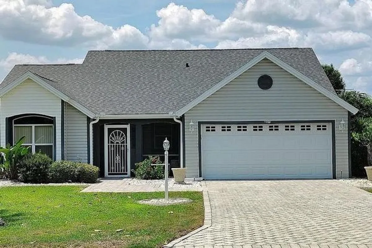 The Villages Florida Lovely Designer Home in Spanish Springs Area! LOCATION! LOCATION! LOCATION! NEW ROOF! NO BOND! FURNISHED! Welcome to your dream home on a spacious corner lot with spectacular landscaping using pavers and curbing! This beautiful floorplan is a 2 BR 2 BA gem just minutes from Spanish Springs Square (you can walk) and Lake Sumter Landing is a short golf cart ride away! IMAGINE, just minutes from two DOWNTOWN SQUARES!! This delightful home at 1260 Granada Court offers a charming retreat in a vibrant and active community. The Sable Key designer home is 1,541 square feet of interior space, features a thoughtful & open layout that maximizes comfort and functionality while providing a cozy yet spacious living environment. The Florida Room is under heat & air giving you two living spaces in the home. The home includes a two-car finished garage with built-in storage, work areas, attic stairs, epoxy floors, and paver driveway. This designer series home has new kitchen counter-tops, stylish laminate plank flooring in the living room, dining room, and family room. Enjoy the enclosed rear and front porch with paver patios, perfect for relaxing or entertaining. Plus, it's being sold furnished – move right in and start living the good life! This home is cozy and ready for fun with friends and family. The community amenities, including access to golf courses, pools, shopping, dining, entertainment and recreational facilities, this home is an ideal choice for those seeking an active retirement lifestyle. Don’t miss out and schedule your tour today to start living the dream! Seller is listing home with transferable termite warranty and optional home warranty. NO BOND! NEW ROOF!