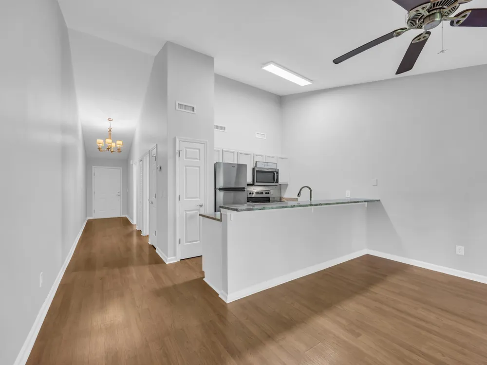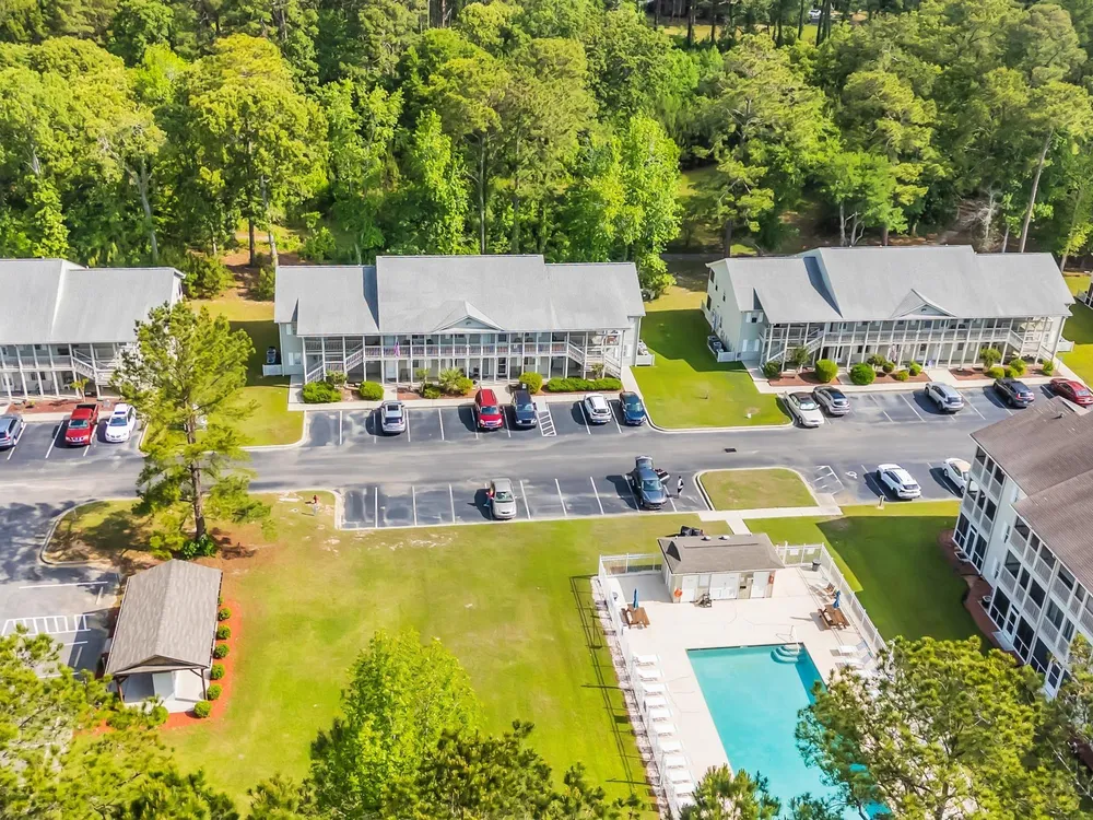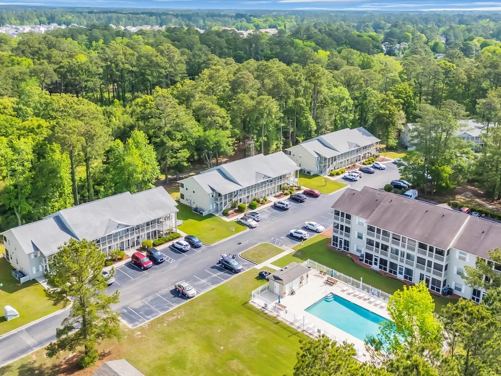 Experience affordable tranquil living in this beautifully renovated 1-bedroom, 1-bath condo located in the desirable Island Green community of Myrtle Beach. Enjoy peaceful forest views from your private balcony, creating the perfect backdrop for morning coffee or evening relaxation. This charming unit features soaring vaulted ceilings that enhance the spacious, airy feel, along with modern upgrades throughout—including sleek granite countertops, stainless steel appliances and updated fixtures. Enjoy the convenience of in-unit washer/dryer as well as the community pool. Whether you're looking for a primary residence, vacation getaway, or investment opportunity, this move-in-ready condo offers comfort, style, and convenience in a serene, natural setting just minutes from the beach, golf, dining, and shopping.