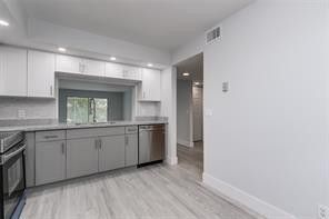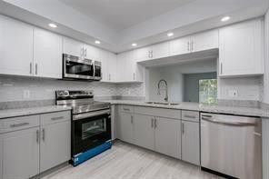 Updated 2 bedroom, 2 bath condo in Century Village in excellent, move-in ready condition. Features include a modern kitchen with custom cabinetry, stainless steel appliances, quartz countertops, recessed lighting, updated flooring throughout, and impact windows. Convenient location near the elevator for easy access. Ideal for everyday living or seasonal use in a resort-style 55+ community offering a large clubhouse, indoor and outdoor pools, fitness center, theater with live entertainment, tennis and pickleball courts, golf course, courtesy shuttle, on-site security, and a full calendar of clubs, classes, and social events. Located close to shopping, dining, and medical facilities, making everyday living easy and enjoyable.