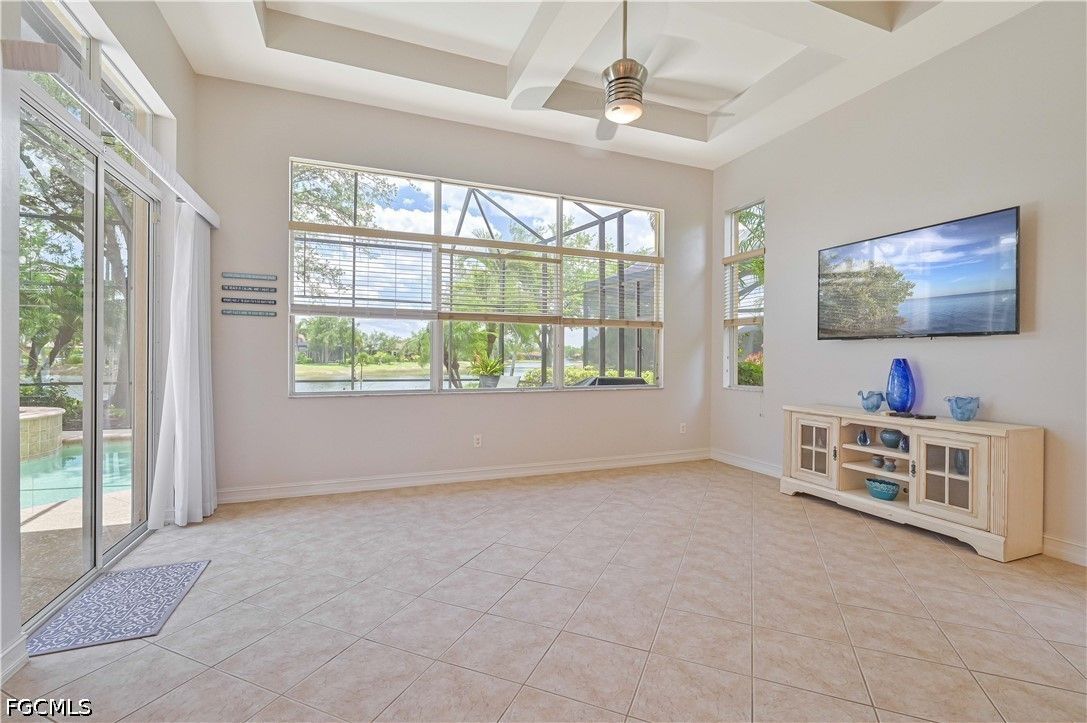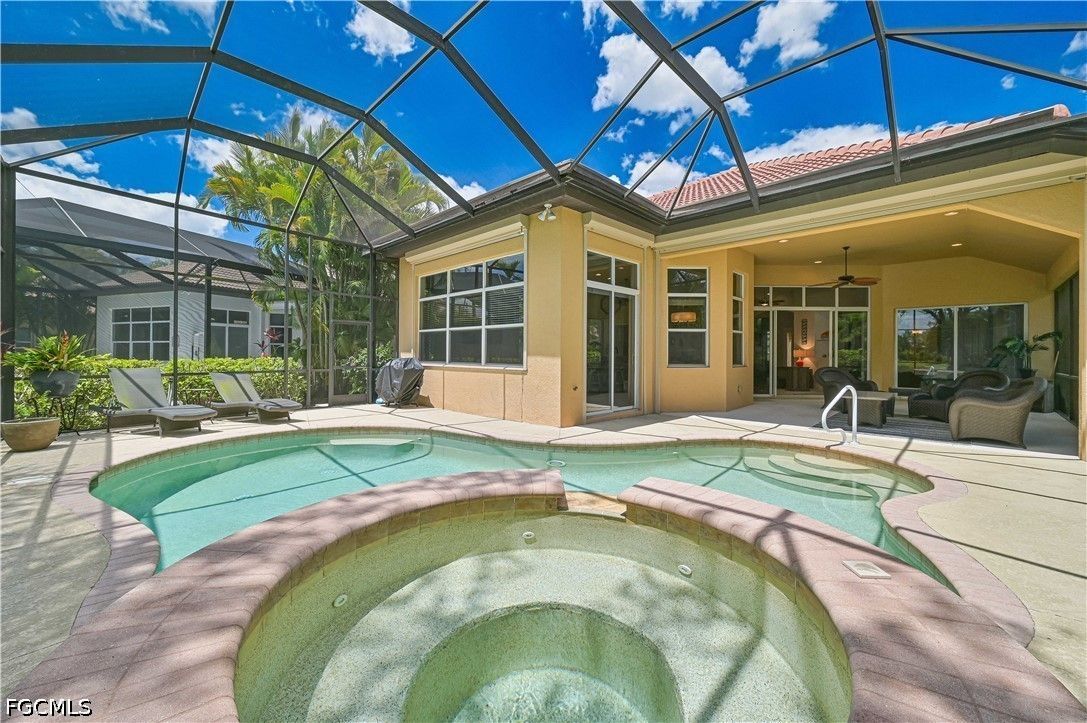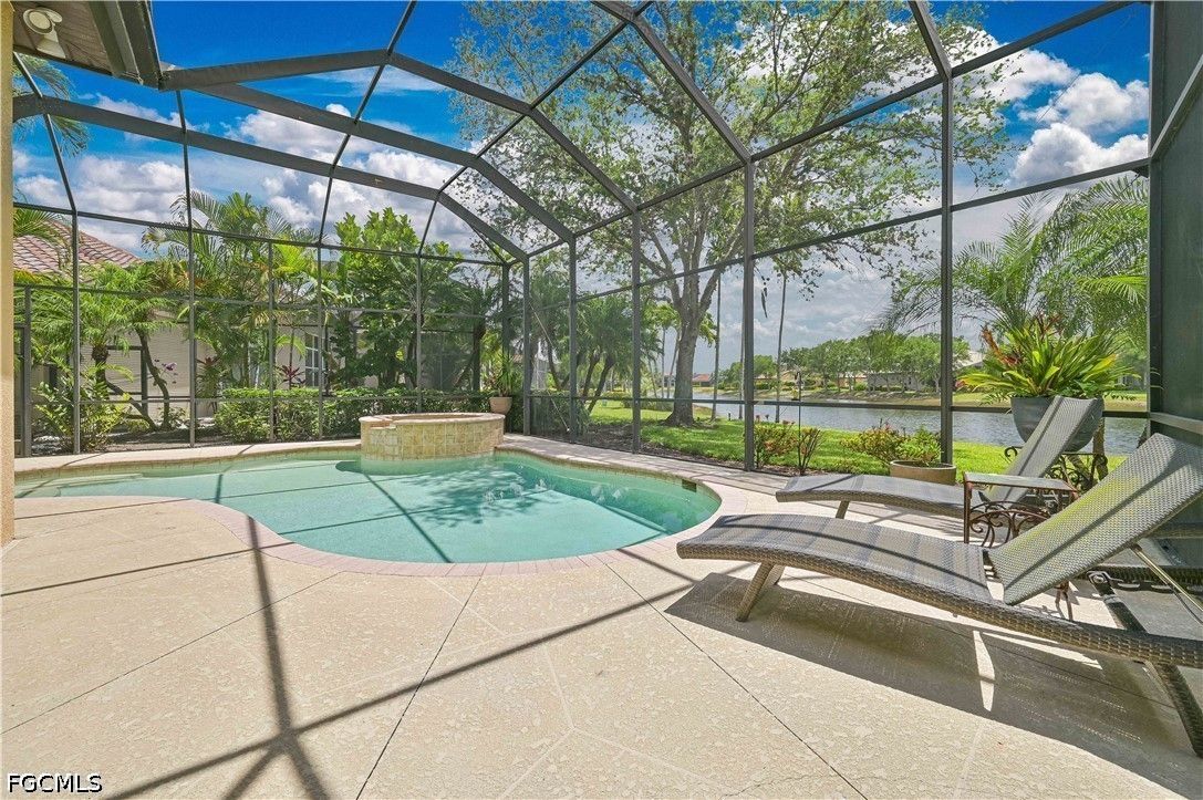Located on one of the best lake lots in Grandezza, this 3-bedroom, 2-bath pool home offers long water views in two directions and a private outdoor setup that’s hard to beat. Sold turn-key furnished, this is a true move-in ready opportunity or ideal seasonal home. The home features 2,073 square feet with a bright, open layout that flows naturally from the main living area into the kitchen and out to the lanai. It’s a functional floor plan that works just as well for everyday living as it does for entertaining. Out back is where this property really stands out. Southern exposure brings in sun all day, with a heated pool and spa overlooking wide lake views. The patio is fully protected with roll-down mesh hurricane shutters, giving you added peace of mind without losing the outdoor living space. It’s a setup you can actually use year-round. Tile roof fully replaced in 2022! Located within Grandezza Golf & Country Club, residents have access to a recently updated 53,000 sq ft clubhouse with indoor and outdoor dining, a resort-style pool and spa, fitness center, tennis, pickleball, bocce, and a full social calendar. The community is built around 23 lakes and natural preserves, with optional membership available for the 18-hole championship golf course. You’re right in the heart of Estero — minutes to Miromar Outlets, Coconut Point Mall, Florida Gulf Coast University, and Southwest Florida International Airport, with easy access to the beaches.